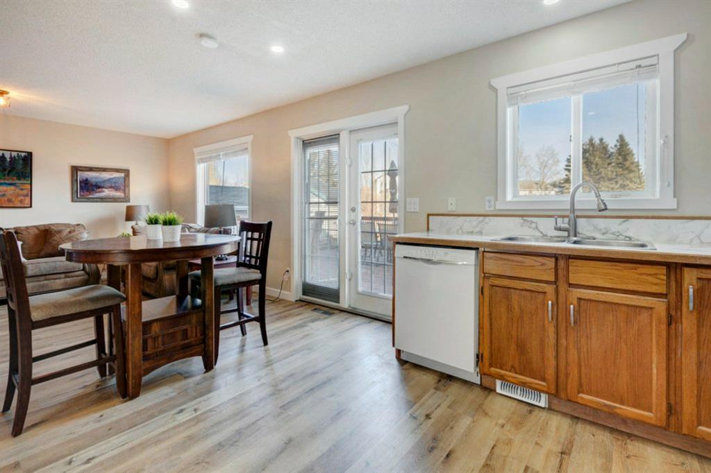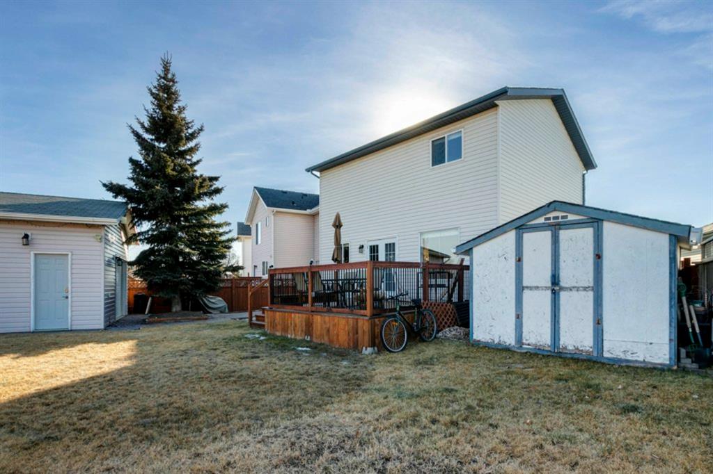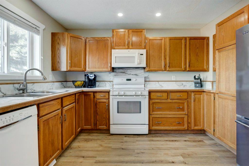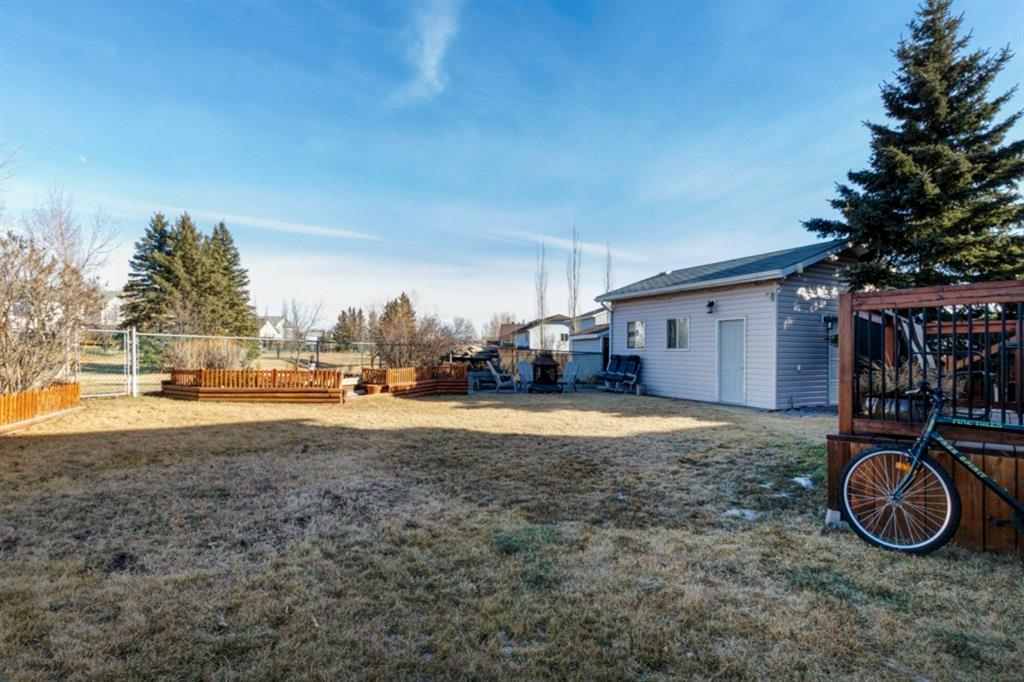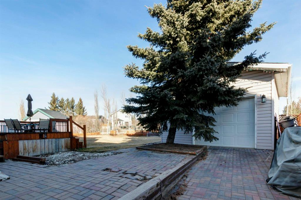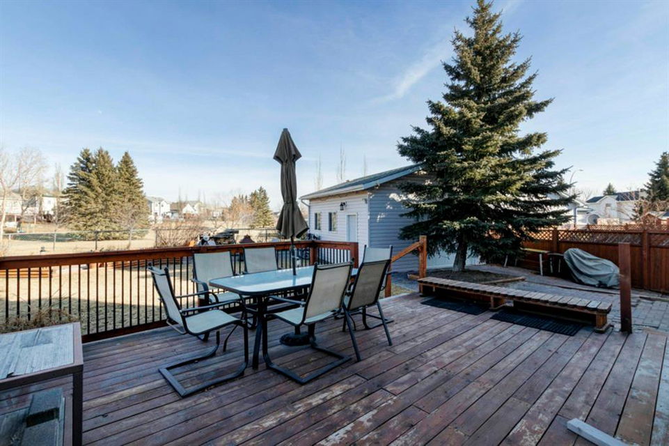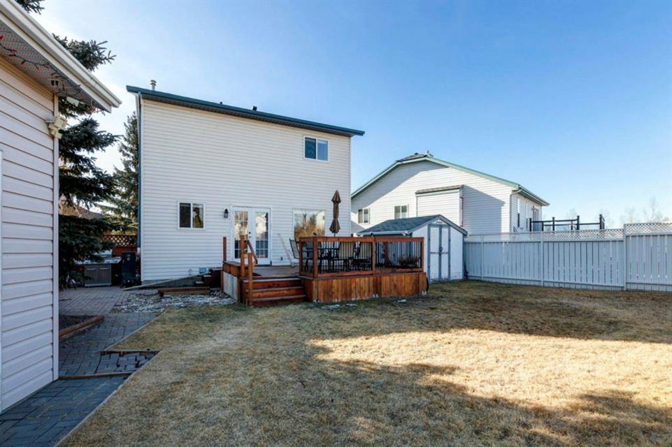Excellent 3 bedroom family home with an attached double garage and detached workshop with over head door! All this on a massive pie lot backing onto greenspace and pathways. The original owner is selling this home and has done many updates including laminate flooring throughout the main level (2020), hardwood flooring on the stairs going up (2022), hardwood & engineered hardwood on the upper level, solid custom wood doors, paint, new baseboards and trim (2022) , many new light fixtures (2022), updated shingles (2012), and a new furnace (2016). The main level features an open concept kitchen, dining area and family room all facing the large yard and greenspace. There is also a formal dining room (could be a second living room, playroom or office space), and powder room with laundry on the main level. The upper level has 3 bedrooms including the large primary bedroom with an oversized walk-in closet with a wardrobe system, a full bathroom and 2 more good-sized bedrooms. The basement offers a family room area with laminate flooring and a gas fireplace with fan, hobby area, a den with access to the under the stairs storage, and the utility/storage room. The detached workshop is 19’2″ x 17’3″ has a single overhead door to move in and out large items for all your projects, and it is roughed-in for in-floor radiant heat. The yard is amazing with a large deck, perennials including roses, tulips peonies and lilacs, a fire pit, and views out to the lovely greenspace and pathway. Located in a quiet cul-de-sac within walking distance to schools and playgrounds.