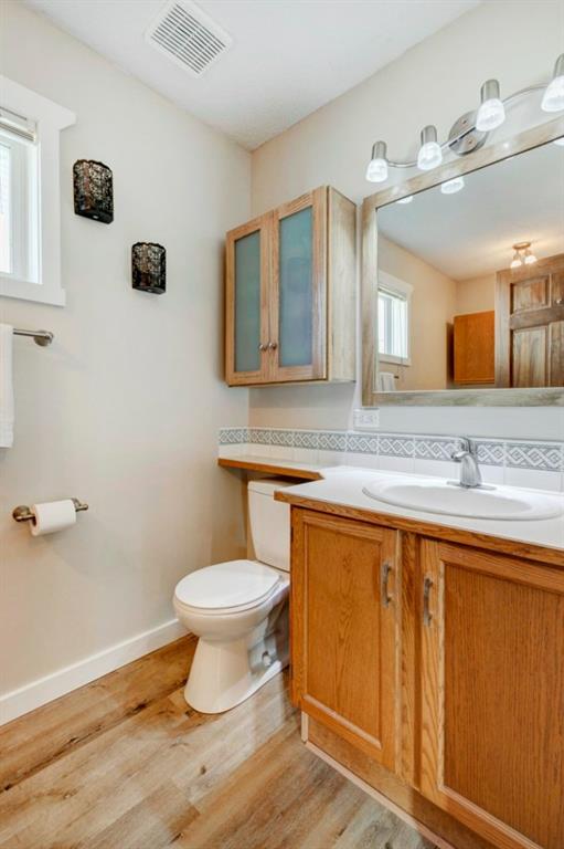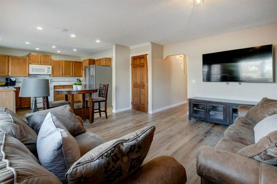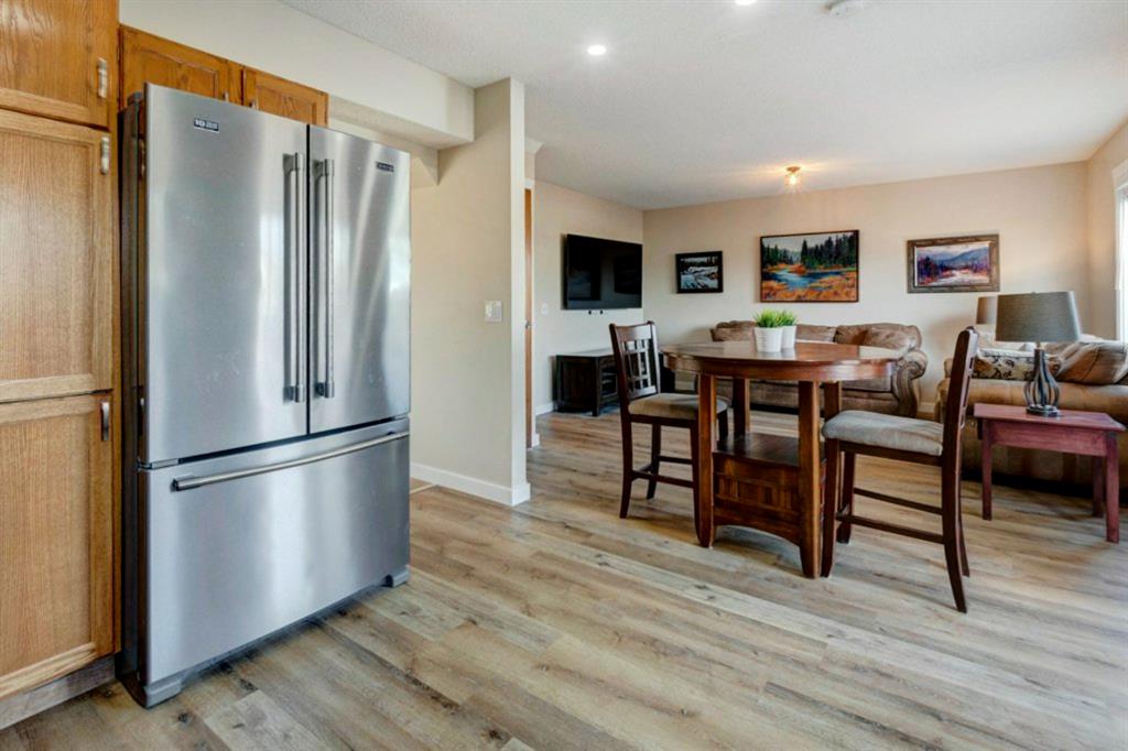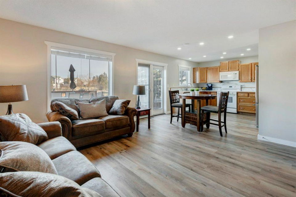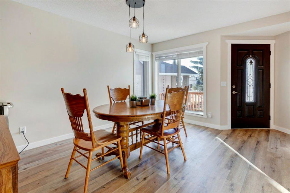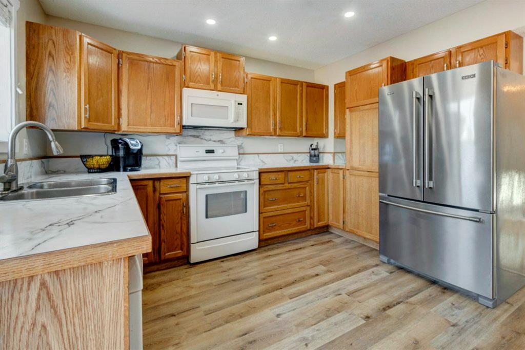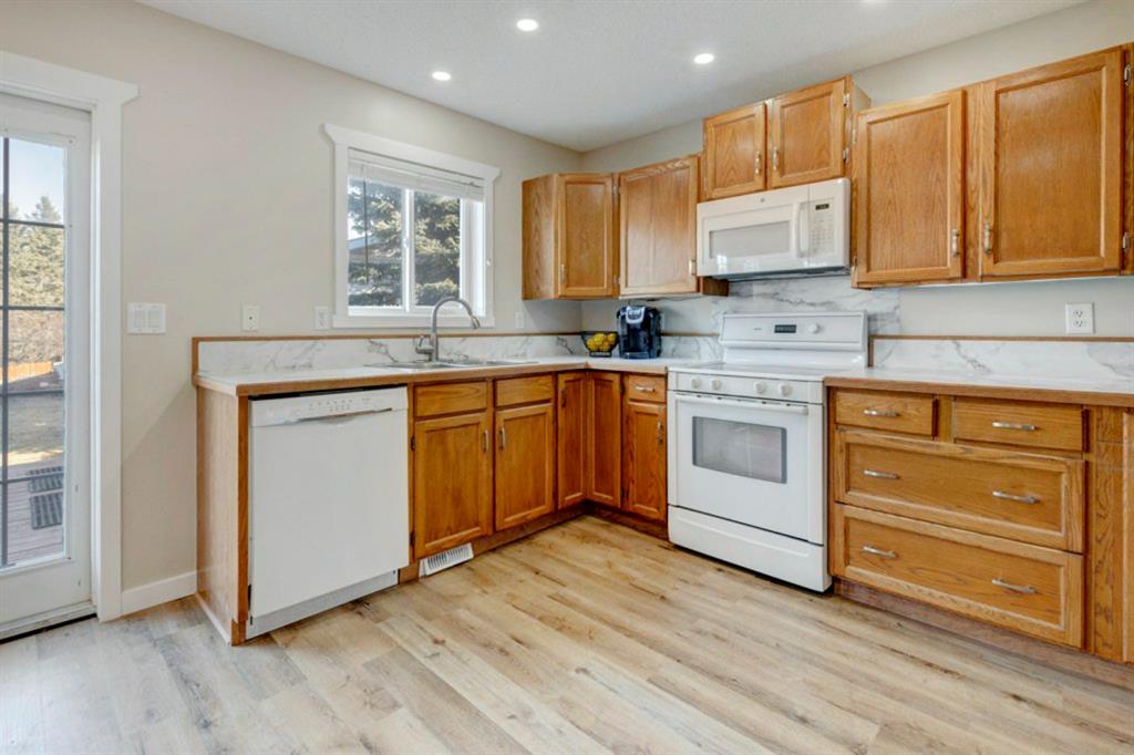Excellent 3 bedroom family home with an attached double garage and detached workshop with over head door! All this on a massive pie lot backing onto greenspace and pathways. The original owner is selling this home and has done many updates including laminate flooring throughout the main level (2020), hardwood flooring on the stairs going up (2022), hardwood & engineered hardwood on the upper level, solid custom wood doors, paint, new baseboards and trim (2022) , many new light fixtures (2022), updated shingles (2012), and a new furnace (2016). The main level features an open concept kitchen, dining area and family room all facing the large yard and greenspace. There is also a formal dining room (could be a second living room, playroom or office space), and powder room with laundry on the main level. The upper level has 3 bedrooms including the large primary bedroom with an oversized walk-in closet with a wardrobe system, a full bathroom and 2 more good-sized bedrooms. The basement offers a family room area with laminate flooring and a gas fireplace with fan, hobby area, a den with access to the under the stairs storage, and the utility/storage room. The detached workshop is 19’2″ x 17’3″ has a single overhead door to move in and out large items for all your projects, and it is roughed-in for in-floor radiant heat. The yard is amazing with a large deck, perennials including roses, tulips peonies and lilacs, a fire pit, and views out to the lovely greenspace and pathway. Located in a quiet cul-de-sac within walking distance to schools and playgrounds.