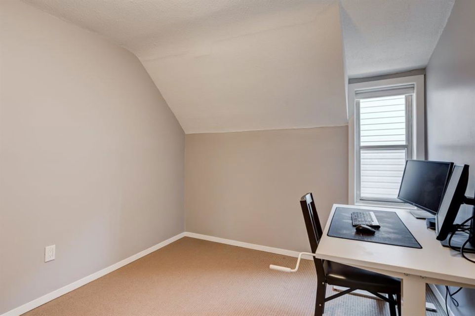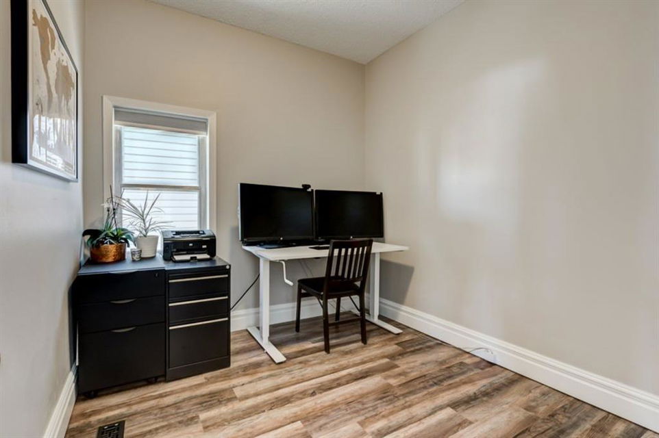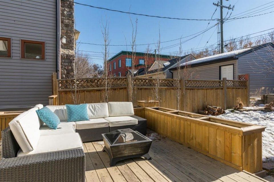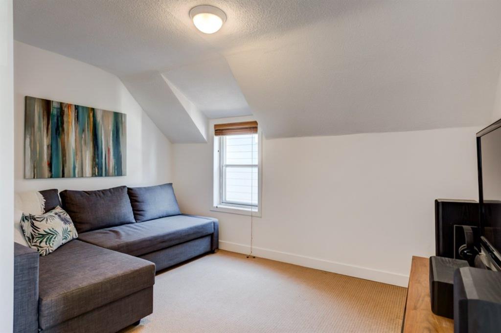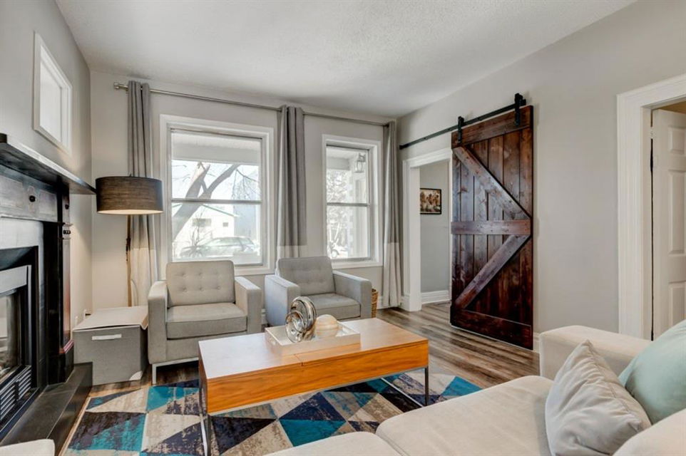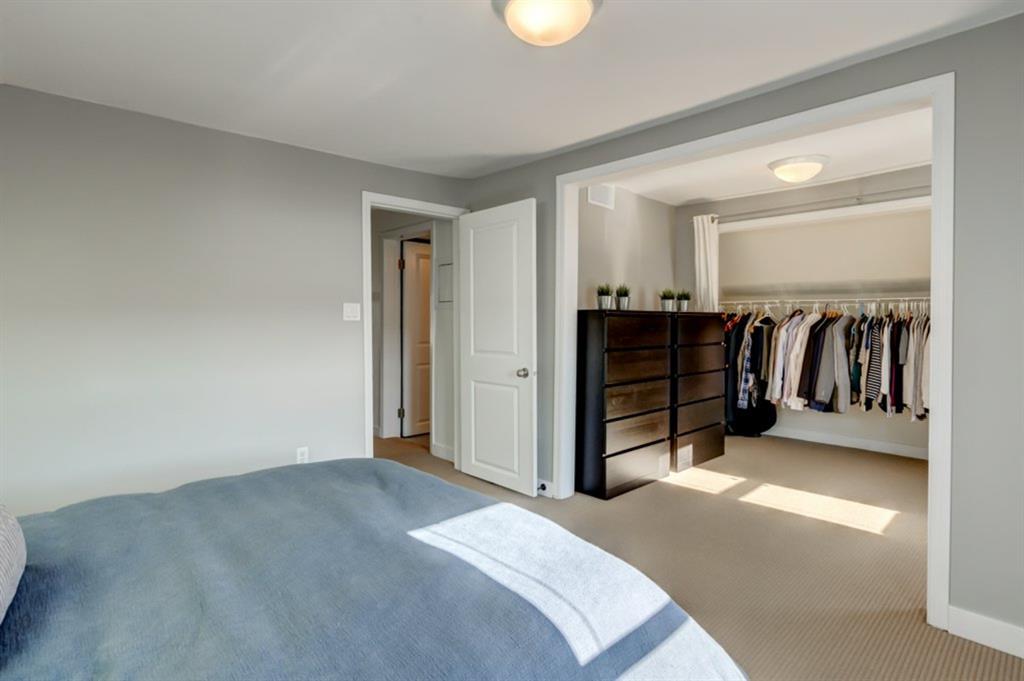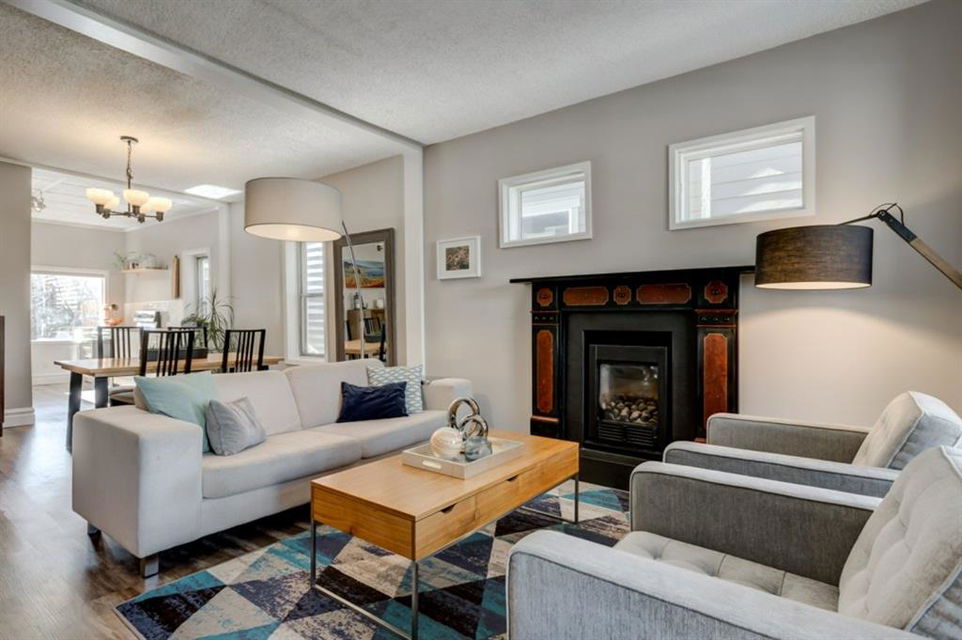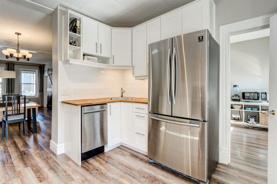Charming and very nicely updated family home located just steps from the heart of Inglewood, on a large (33 ft x 123 ft) south facing lot with an oversized single garage. Many updates since 2017 including replacement of the shingles on the house (2020), kitchen renovation (2020/2021) including new stainless steel appliances, opening up the main floor layout (2020), vinyl plank flooring (2020), baseboards and paint throughout (2020) and insulation added to the attic in 2018. The open concept main floor offers a living room with gas fireplace, dining room, renovated kitchen with stainless steel appliances, butcher block counters, white cabinetry and subway tile backsplash. 2 bedrooms on the main floor that double as home offices or storage and modern 4 piece bathroom with heated marble floor. Upper level with huge master bedroom that easily accommodates a king size bed, additional furniture and has a large closet. Completing the upper level is a 3 piece bathroom, 2 more bedrooms (do not have closets) and bonus room that is perfect for a TV area, den or could be converted into another bedroom. The bright basement has a great laundry area and plenty of storage space. Plumbing and electrical have been modernized from 2004-2009 and high efficiency basement furnace installed in 2013. Sunny, south facing yard with deck, planters, space for a garden, mature trees and a large 20′ x 16′ oversized single garage built in 2007. Fantastic location with easy access to the pathway system and just 2 blocks from 9th Avenue and all of the amenities that Inglewood offers. Charming century home with many modern updates, must be seen to be fully appreciated!