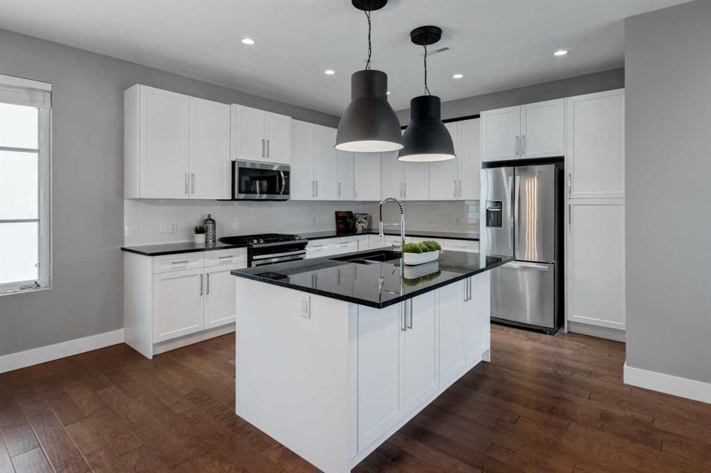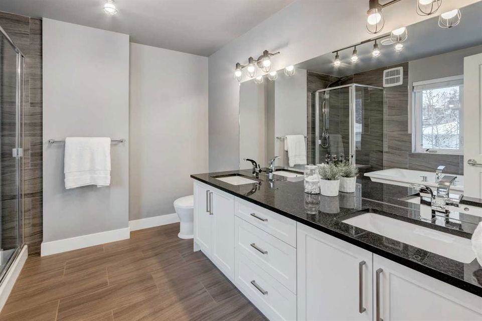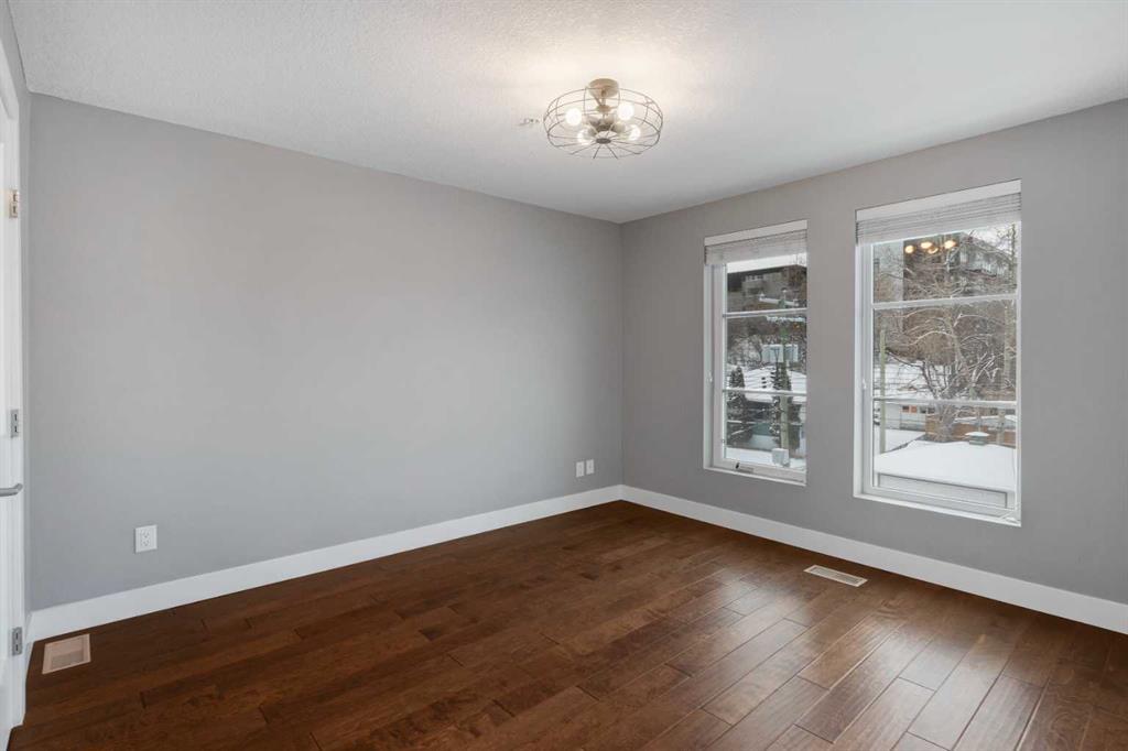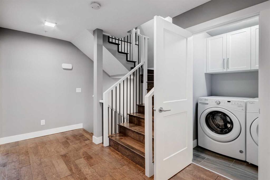 Welcome to this modern and very well maintained 1842 sq ft, 3-storey, 3 bedroom, 3.5 bathroom townhouse with a great layout, quality finishings and heated underground parking. The open concept main floor with south facing windows is bright and well laid out, a perfect space for entertaining. Spacious and modern kitchen with plenty of cabinetry, quartz countertops, stainless steel appliances, and an island with seating for 3 and industrial pendant lighting. The kitchen opens onto the spacious dining. The living room is large enough for a sectional plus additional furniture and the powder room completes the main floor. Hardwood flooring throughout the main floor, stairs, landing area on the second floor, and in the 3rd floor bedroom. The 2nd level has 2 bedrooms, including the primary bedroom with large windows, walk-in closet, and modern ensuite with 2 sinks, quartz countertops, large soaker tub and tiled shower with glass door. The 2nd bedroom also has a walk-in closet and is located next to the 2nd full bathroom. The laundry room with built-in cabinetry and the utility room complete this level. The 3rd level hosts the 3rd bedroom with hardwood flooring, a 3-piece ensuite, and access to the private south-facing sunny balcony. This level would make an amazing home office or TV room if you do not require the 3rd bedroom. The basement level is the mudroom with storage space and access to the underground heated parkade. One parking stall (with space for storage) is included with this unit. This complex is in excellent condition and has been extremely well maintained by the owner, who has owned all 5 units since the complex was built. Excellent inner city Bankview location with quick access to downtown, Crowchild Trail, 14th Street, 17th Ave, and Marda Loop. Close to many parks including the Bankview Dog Park, Buckmaster Park and 20th Street playground. Two units in the complex have already sold so don’t miss out on this excellent opportunity to call this property your new home!