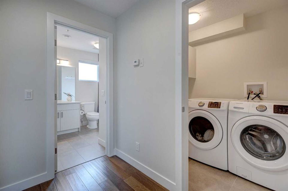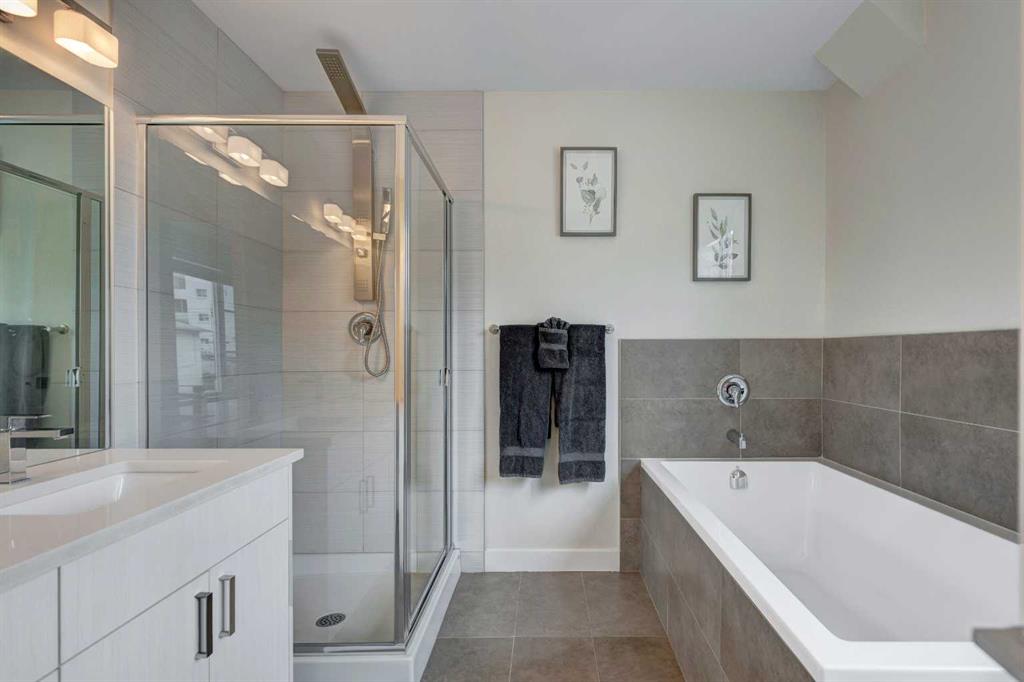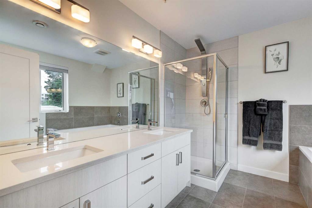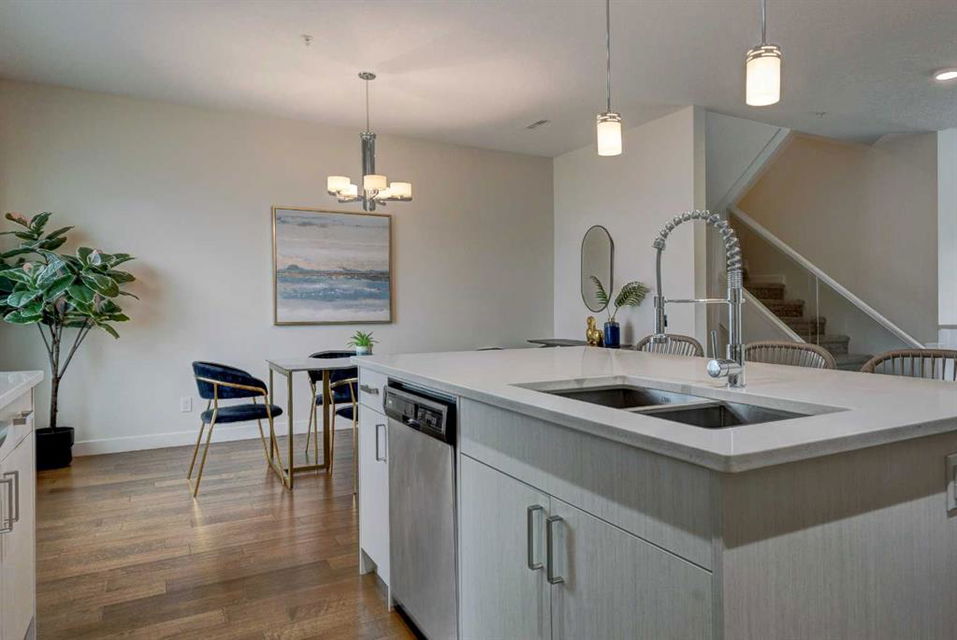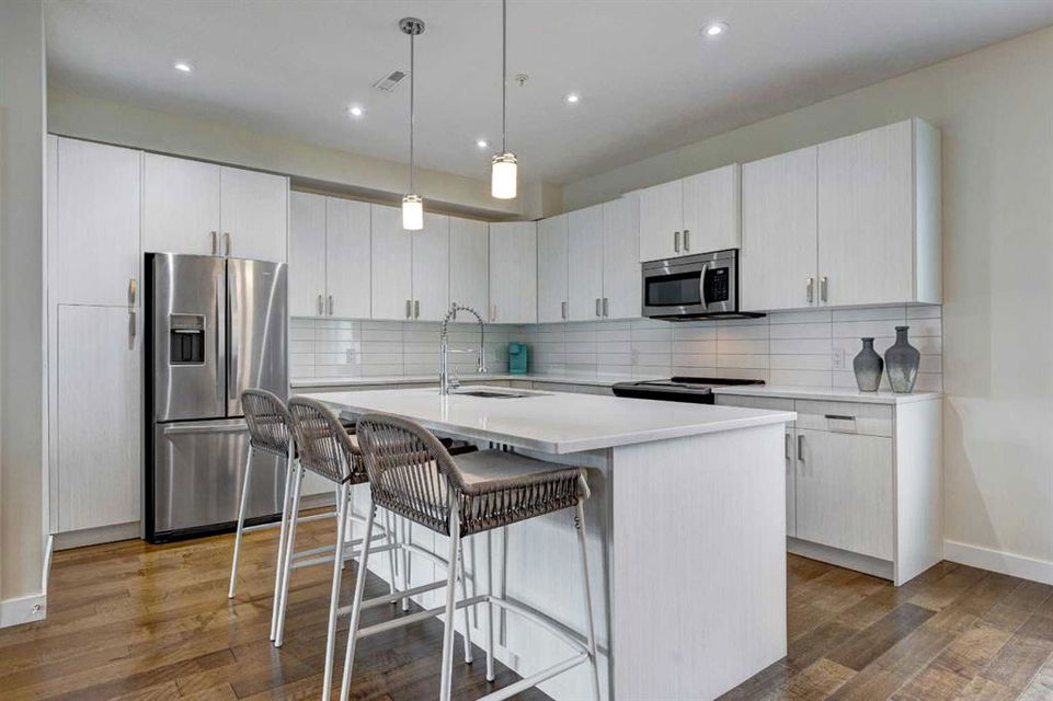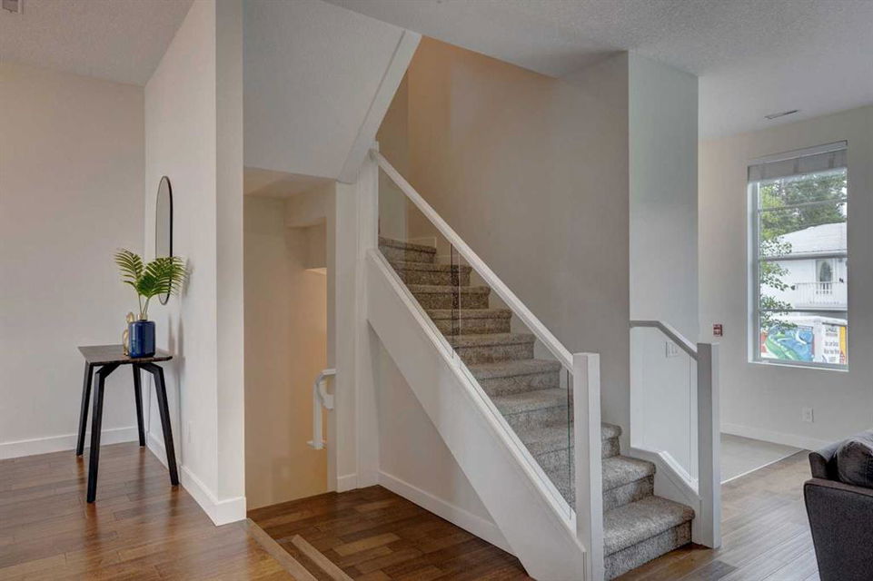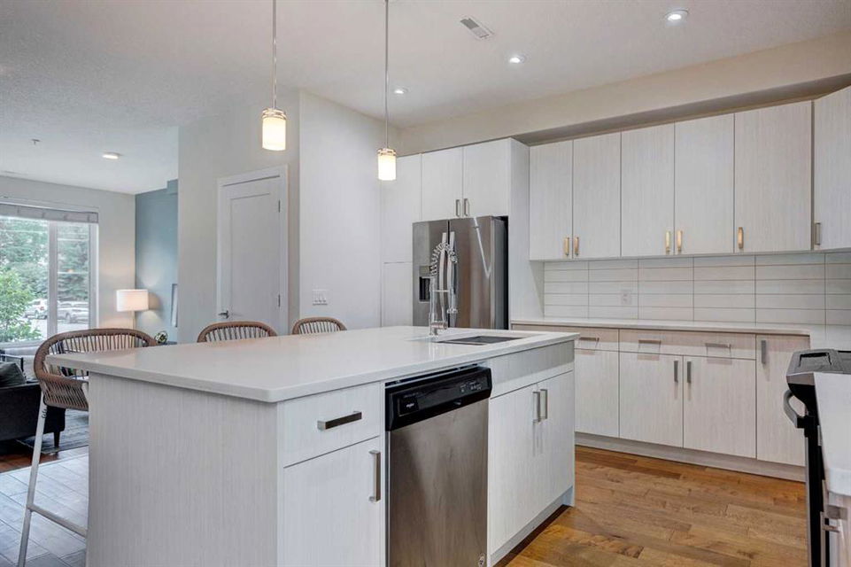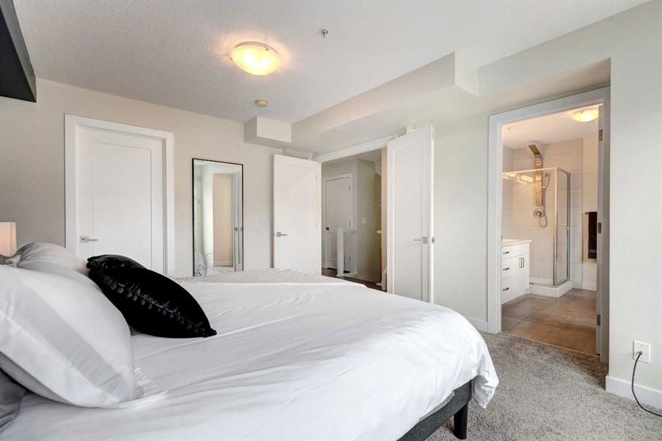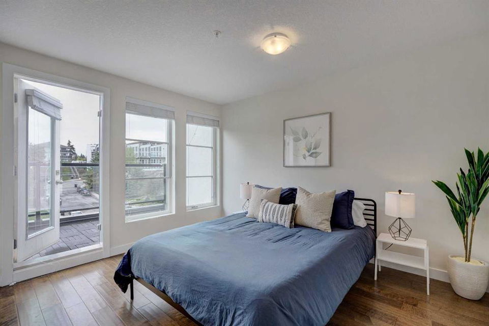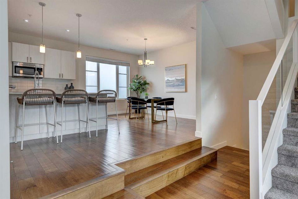 Welcome to this trendy and very well-maintained 1848 sq ft, 3-storey, 3 bedroom, 3.5 bathroom townhouse with a great layout, quality finishings and underground parking. Upon entering you are greeted with a spacious foyer with walk-in closet, and a bright living room with large south facing windows. Spacious and modern kitchen with plenty of cabinetry, quartz countertops, island seating for 3, and stainless steel appliances. The dining room with space for a table plus additional furniture is conveniently right beside the kitchen. The powder room completes the main floor. The 2nd level has 2 bedrooms, including the primary bedroom with large windows, walk-in closet, and modern ensuite with 2 sinks, quartz countertops, large soaker tub and a tiled shower with glass door. The 2nd bedroom is also spacious and is located next to the 2nd full bathroom. The laundry room with built-in cabinetry and utility room completes this level. The 3rd level hosts the 3rd large bedroom with hardwood flooring, a 3-piece ensuite, and access to the beautiful 23 ft x 8 ft south-facing sunny balcony. This level would make an amazing at home office or TV room if you do not require the 3rd bedroom. The basement level is the mudroom with storage space and access to the underground heated parkade. One parking stall (with space for storage) is included with this unit. This complex is in excellent condition and has been extremely well-maintained by the owner, who has owned all 5 units since the complex was built. Excellent inner city Bankview location with quick access to downtown, 14th Street, 17th Ave, and Marda Loop. Close to many parks including the Bankview Dog Park, Buckmaster Park and 20th Street playground. Furniture and furnishings are available for purchase. Don’t miss out on this excellent opportunity to call this property your new home!