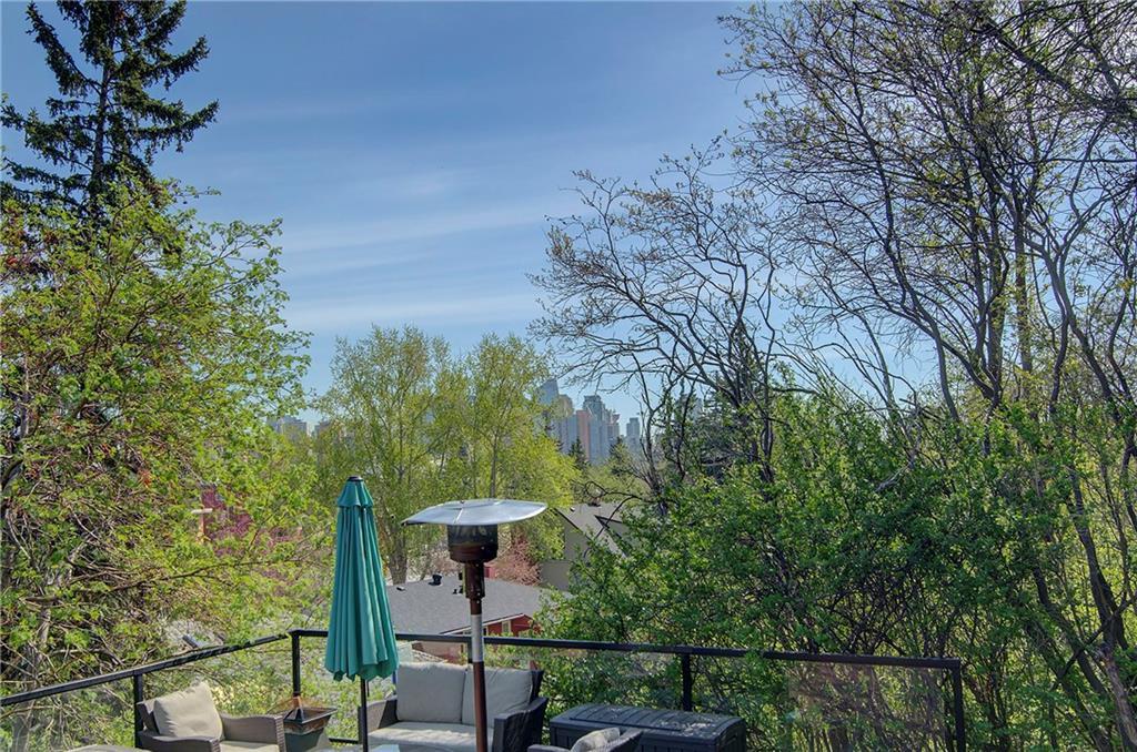 Charming, upgraded bungalow in the heart of the city! Enjoy a downtown lifestyle in this stylish home on an beautiful oversized 70 ft wide, 839m2 lot in Scarboro with a private backyard that includes a massive 2-tiered 1,000 sq ft composite deck with sitting areas, cityscape views, & a stone retaining wall anchoring a luxurious hot tub. Many upgrades including kitchen cabinets & countertops (2012), soaker tub/shower (2015) & most windows are new in the last 3 yrs. Exterior updates include a new roof (2017), brand new exterior paint (May 2018) & the deck and hot tub (2015). Main level has hardwood throughout & features a bright kitchen, living room, dining room, 2 bedrooms, a full bathroom & laundry. Perfect starter home with a basement bachelor suite (illegal) to supplement the mortgage. Single attached garage with storage space. Great location: 8 min via skytrain to the core, great walkability, excellent access to Crowchild, Bow Trail, 14th Street & 17th Ave & close to the river path & Douglas Fir trail.