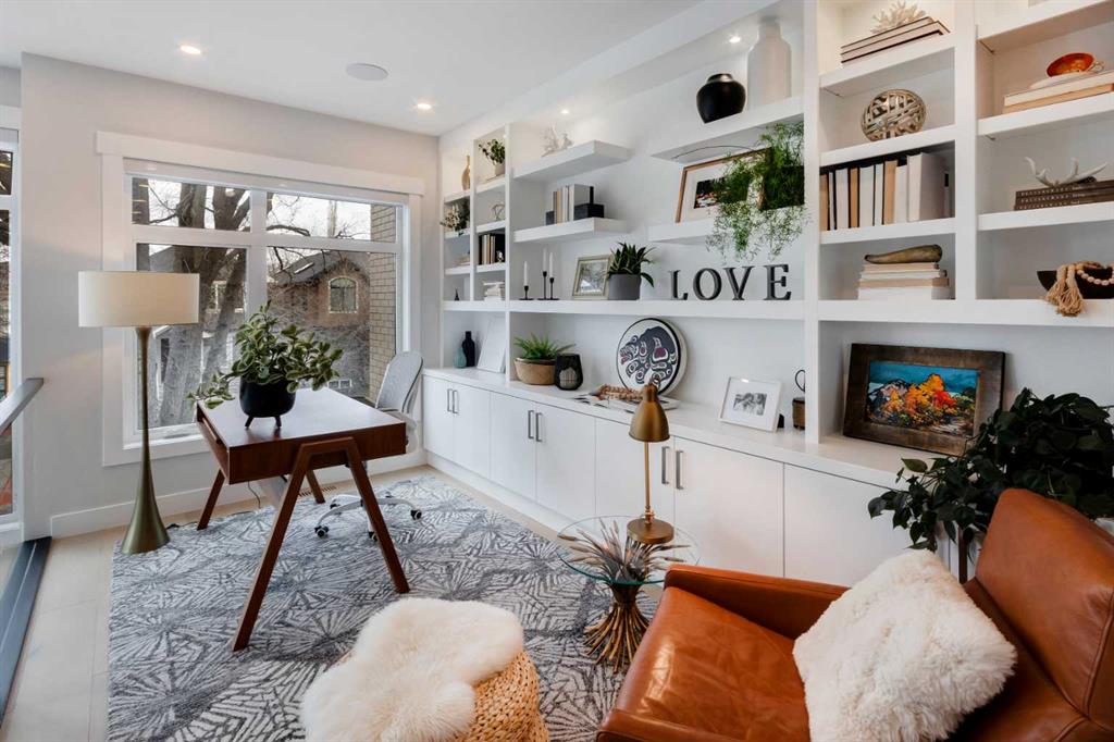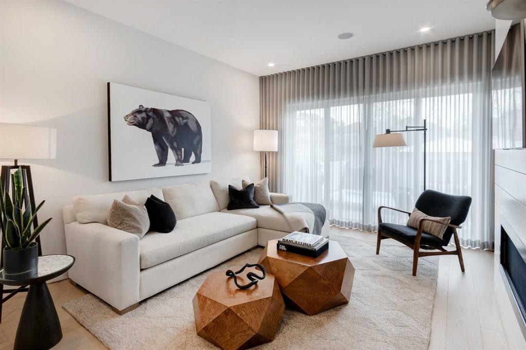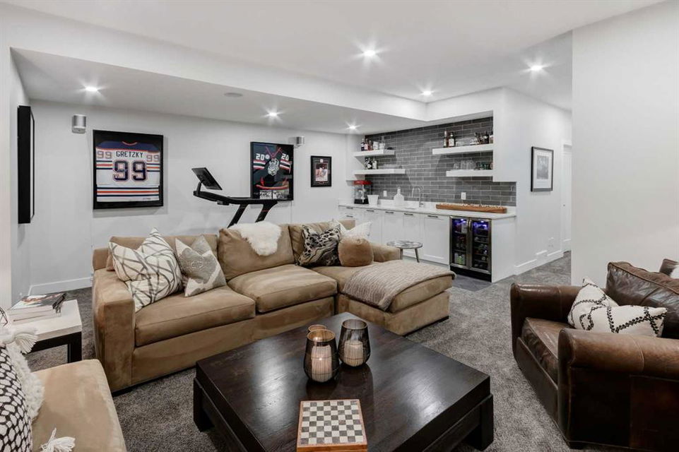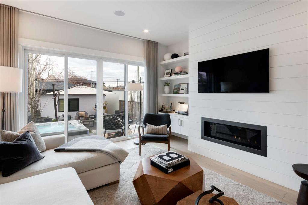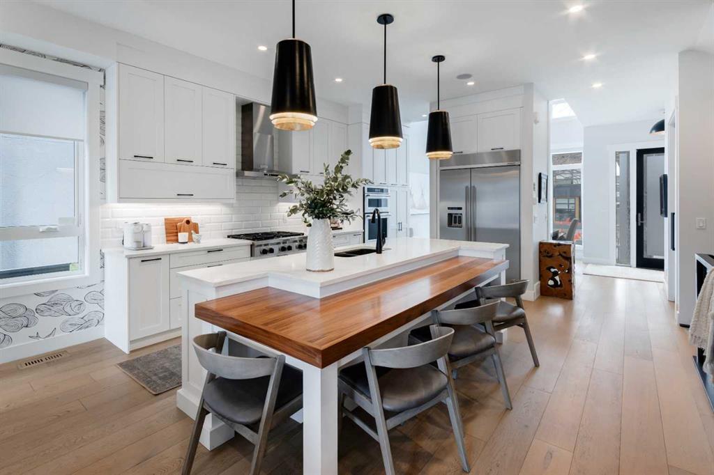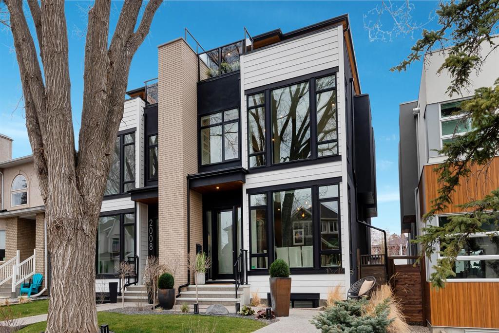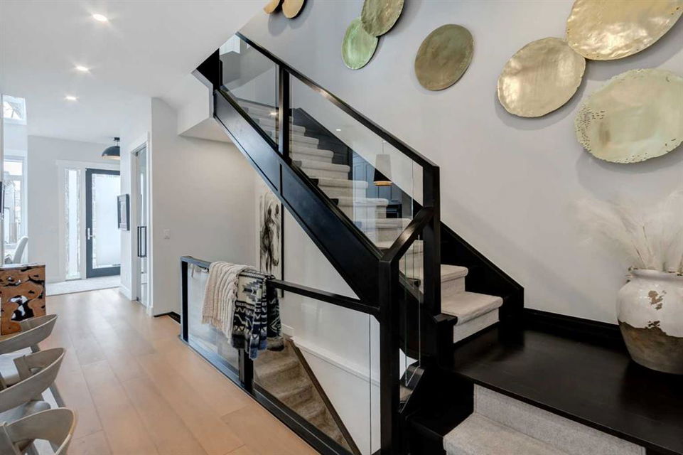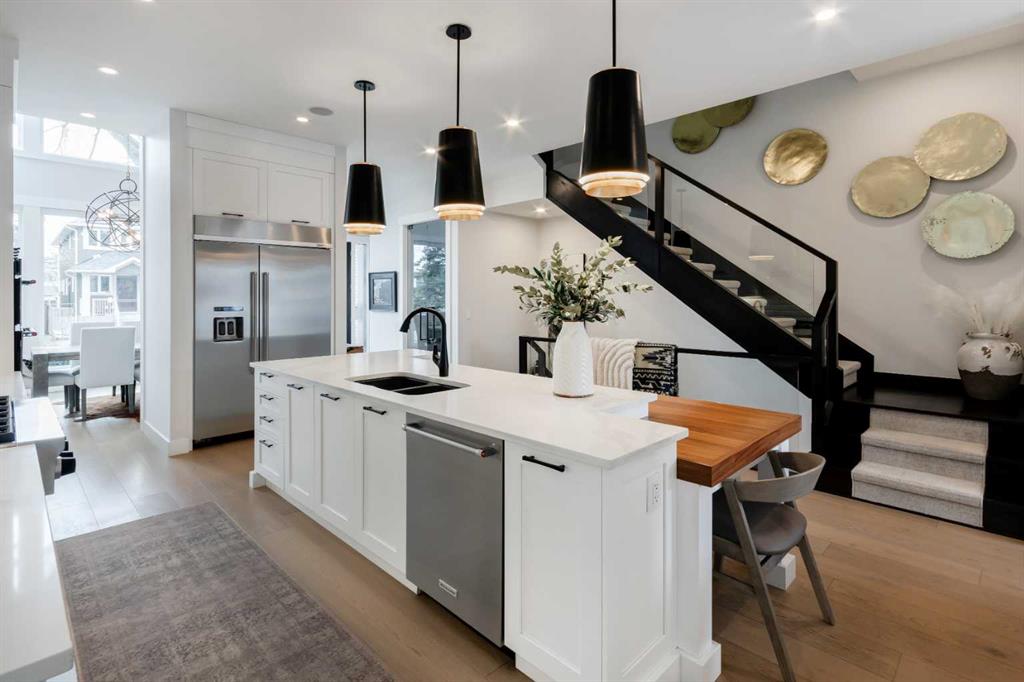 Welcome to this stunning, extremely well-cared for, and fully upgraded 4 bedroom, 4.5 bathroom, 3-storey family home with 2429 sq ft above grade and a total of 3329 sq ft of living space. Every detail of this home was meticulously chosen including designer lighting, built-in cabinetry, custom drapery and blinds, and full professional landscaping front and back. The main floor features a spacious kitchen with plenty of cabinetry, stainless steel appliances including a 6 burner gas range and 48″ industrial refrigerator, and a custom eating bar area within the island. Bright, 2-storey dining room with a stone accent wall and huge modern windows. The living room with a gas fireplace, shiplap wall, and custom built-ins, faces the private yard. A gorgeous wine room (which was planned as an elevator shaft servicing the 1st, 2nd and 3rd level if desired in the future) with glass door, spacious foyer, powder room and back mudroom complete the main level. On the 2nd level you will find the bright south facing open loft/den space with built-ins, the laundry room, and 2 bedrooms both with full ensuites and walk-in closets. On the 3rd level is the spacious primary bedroom, with an amazing custom designed closet, beautiful ensuite with heated tile floor, and an outdoor private retreat with peekaboo view of downtown. Also on the 3rd level is a bar area and 2nd balcony. The basement level features a sizeable family room with bar, 4th bedroom with a large walk-in closet, full bathroom, storage space and utility room. The home comes complete with central A/C, built-in ceiling speakers, and stained wood stairs on both upper staircases with wool carpet runners. The spectacular private yard features low maintenance landscaping with irrigation and patio space for entertaining. The double garage is heated, has epoxy floors and numerous built-in wall cabinetry and shelving throughout. Located on a quiet street close to many parks including River Park, and just a quick walk to the many amenities of Marda Loop. View this exceptional home today!