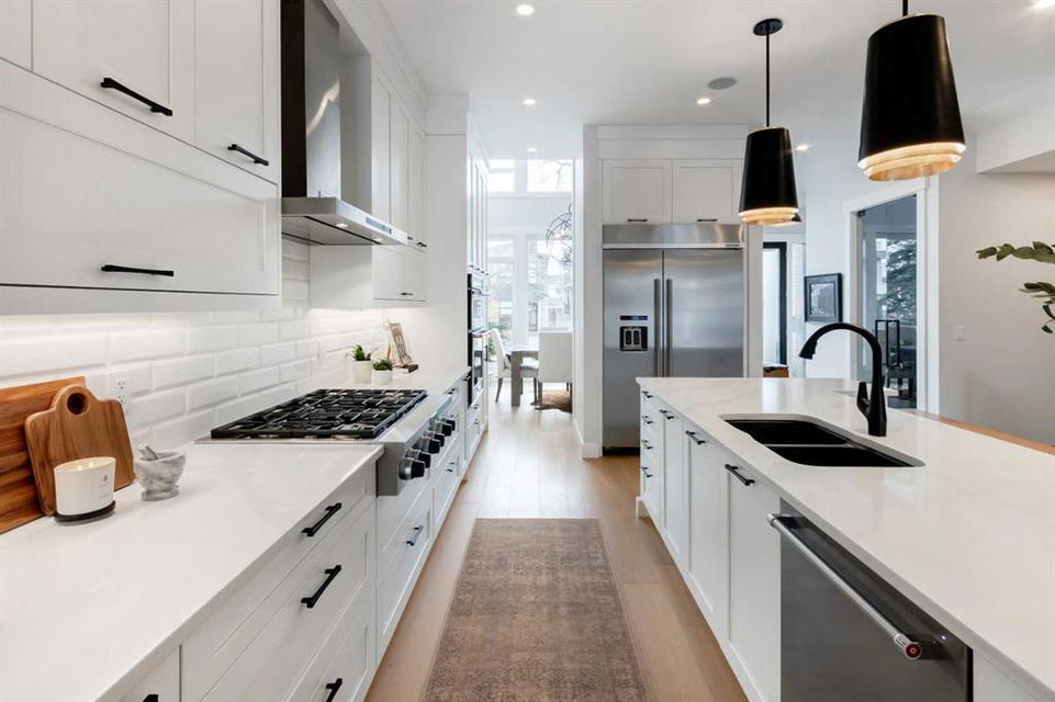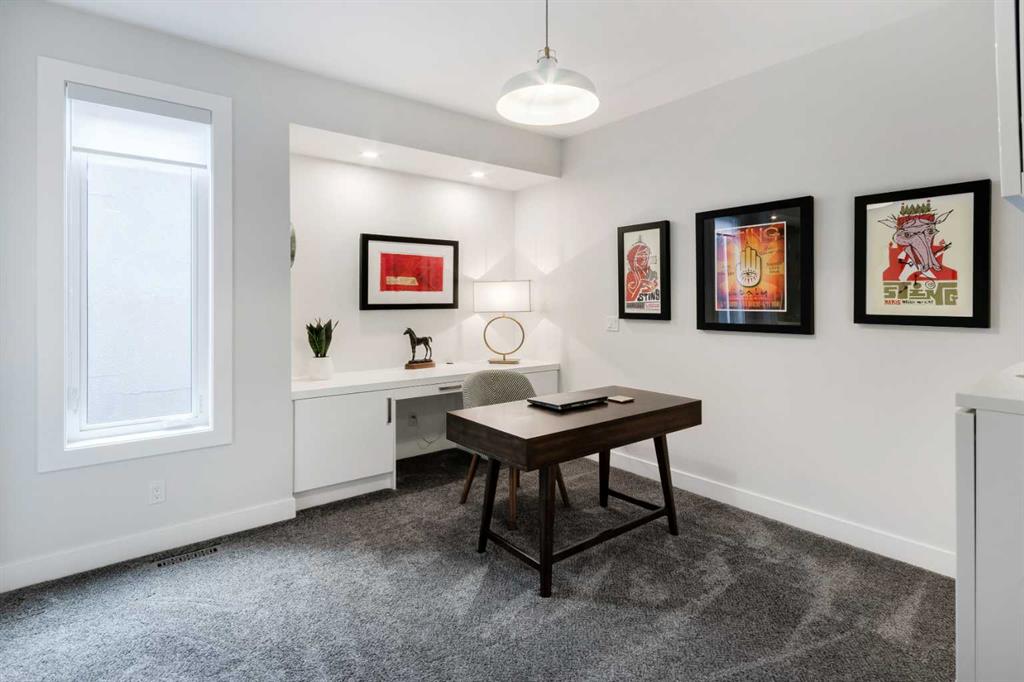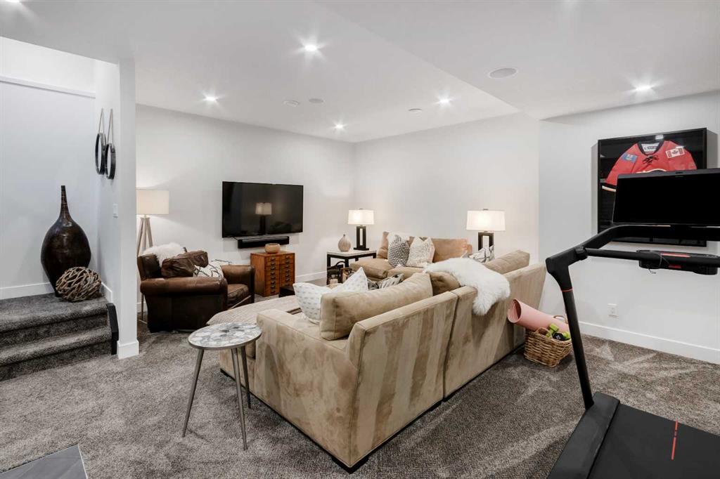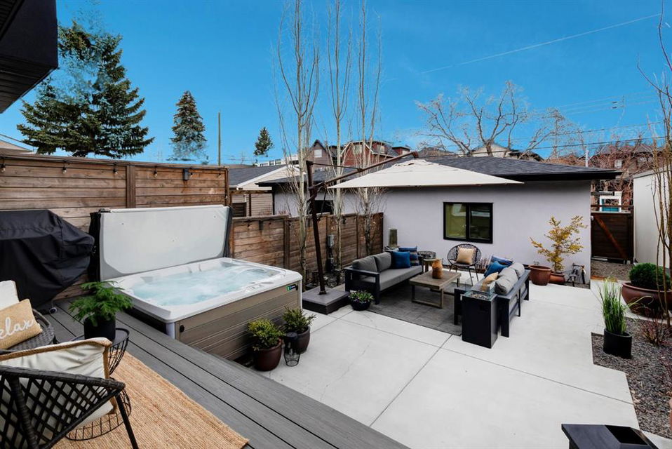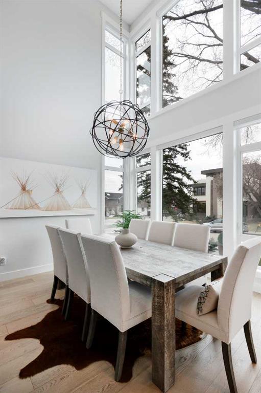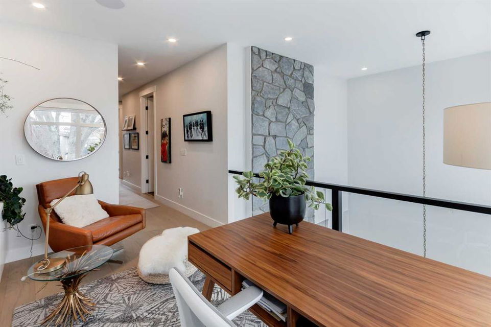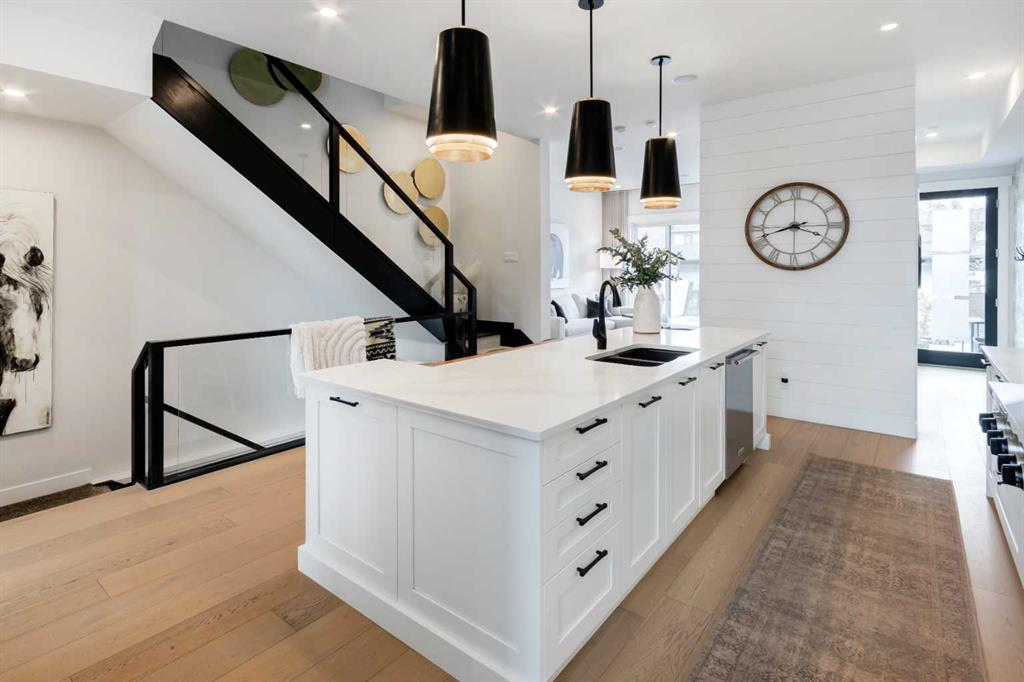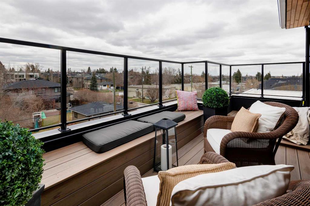 Welcome to this stunning, extremely well-cared for, and fully upgraded 4 bedroom, 4.5 bathroom, 3-storey family home with 2429 sq ft above grade and a total of 3329 sq ft of living space. Every detail of this home was meticulously chosen including designer lighting, built-in cabinetry, custom drapery and blinds, and full professional landscaping front and back. The main floor features a spacious kitchen with plenty of cabinetry, stainless steel appliances including a 6 burner gas range and 48″ industrial refrigerator, and a custom eating bar area within the island. Bright, 2-storey dining room with a stone accent wall and huge modern windows. The living room with a gas fireplace, shiplap wall, and custom built-ins, faces the private yard. A gorgeous wine room (which was planned as an elevator shaft servicing the 1st, 2nd and 3rd level if desired in the future) with glass door, spacious foyer, powder room and back mudroom complete the main level. On the 2nd level you will find the bright south facing open loft/den space with built-ins, the laundry room, and 2 bedrooms both with full ensuites and walk-in closets. On the 3rd level is the spacious primary bedroom, with an amazing custom designed closet, beautiful ensuite with heated tile floor, and an outdoor private retreat with peekaboo view of downtown. Also on the 3rd level is a bar area and 2nd balcony. The basement level features a sizeable family room with bar, 4th bedroom with a large walk-in closet, full bathroom, storage space and utility room. The home comes complete with central A/C, built-in ceiling speakers, and stained wood stairs on both upper staircases with wool carpet runners. The spectacular private yard features low maintenance landscaping with irrigation and patio space for entertaining. The double garage is heated, has epoxy floors and numerous built-in wall cabinetry and shelving throughout. Located on a quiet street close to many parks including River Park, and just a quick walk to the many amenities of Marda Loop. View this exceptional home today!