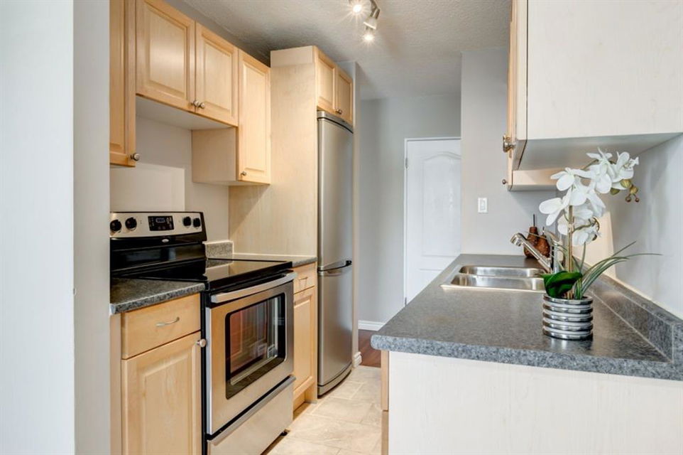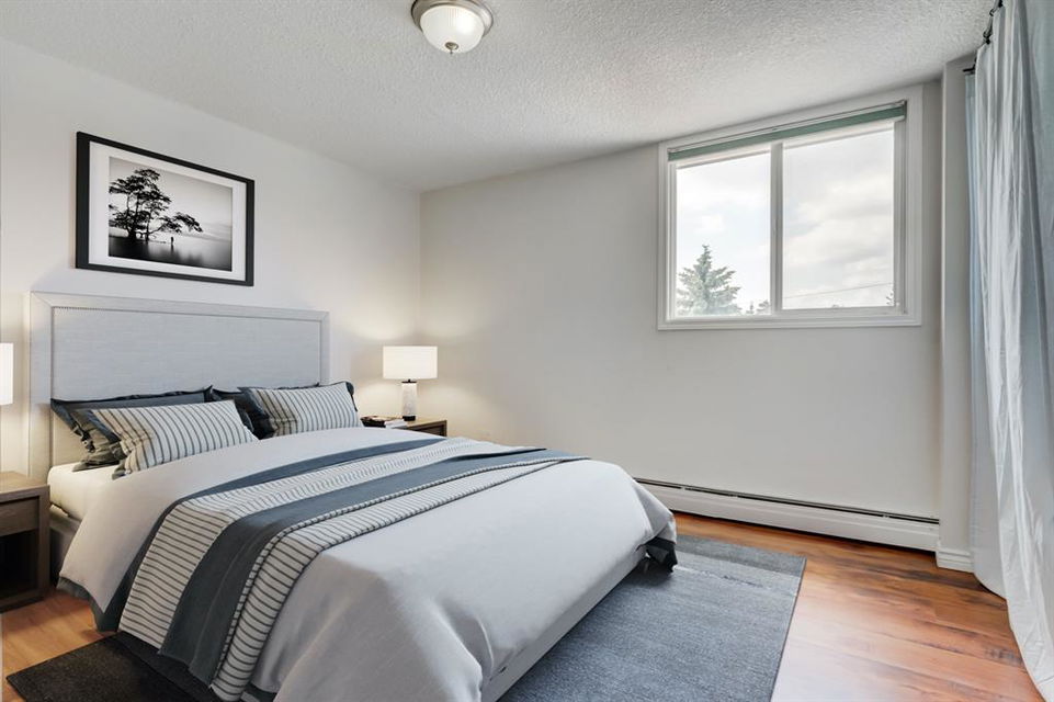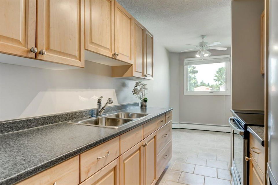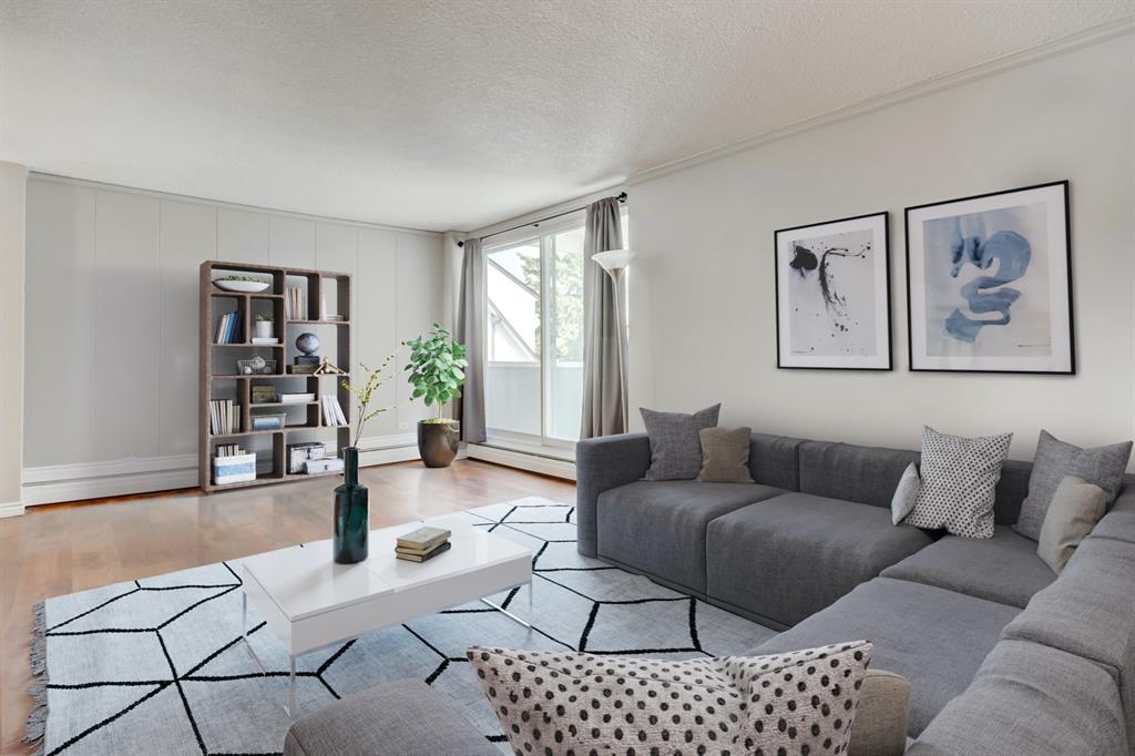 New Price! Seller is offering 3 months of paid condo fees!! The condo board has approved in-suite laundry for this unit if a buyer wishes to move forward with adding a washer/dryer. Excellent 3 bedroom condo in a concrete building with views out to Edworthy Park. Great natural light with windows on 3 sides of this condo, and only one wall shared with another unit, plus this unit has one of the lowest condo fees on the street for a 3 bedroom apartment. Large living room with laminate floors, neutral paint colors and patio doors leading you out to the balcony with Edworthy views! Updated kitchen with stainless steel appliances and dining area beside the kitchen. 3 large bedrooms including a master with half bathroom ensuite. Full bathroom with tub/shower combo. All three bedrooms and both bathrooms freshly painted. Laundry room in the building for your use, plus secure outdoor bike storage. Parking stall right outside the front door and plenty of street parking available. Excellent location right on the ridge of Edworthy Park…beautiful quiet spot. Lovely park right across the street from the building as well. Great access to LRT, downtown, nearby shopping, the Bow River and river pathway system. A quick commute to U of C, Mount Royal University, Foothills Medical Centre and the Alberta Children’s Hospital.