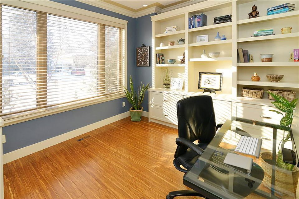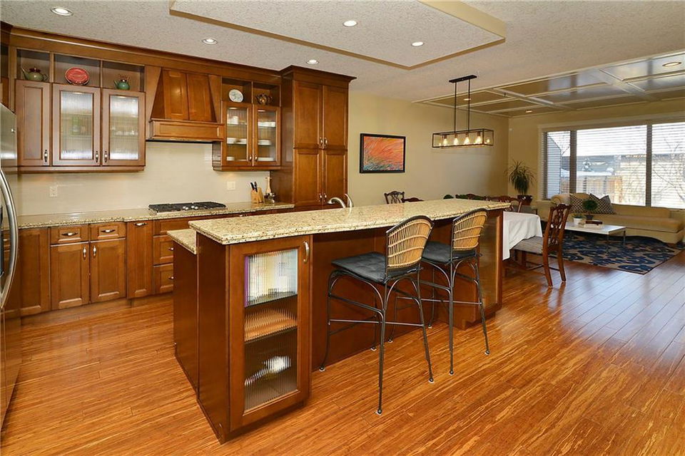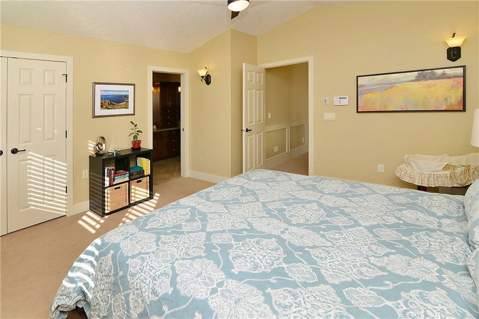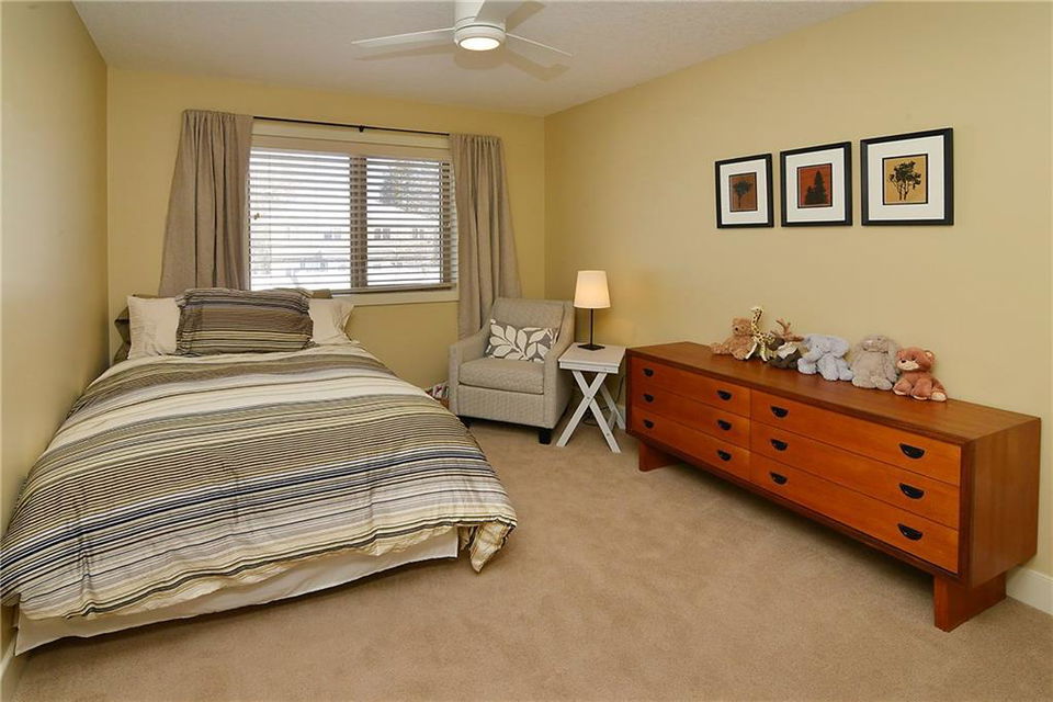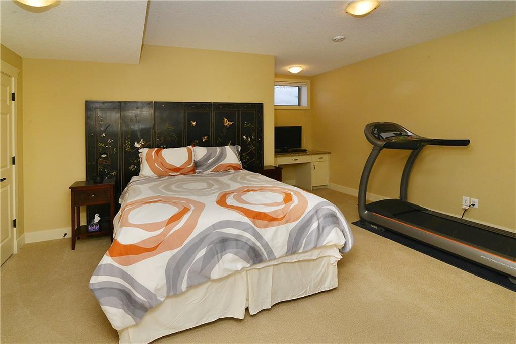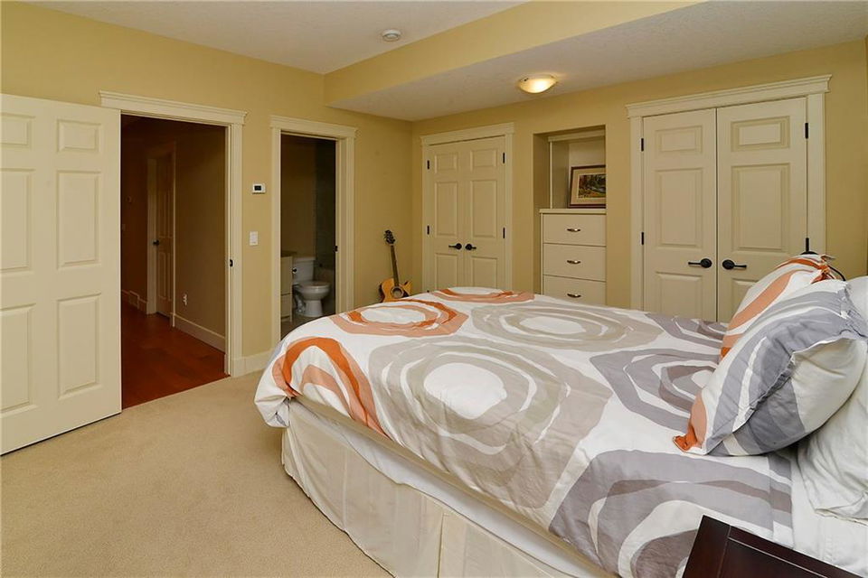 You can’t beat the value found in this extremely well-built family home on a quiet street with upgraded details throughout. The spacious, open concept main level has a gorgeous kitchen with ample high quality cabinetry, granite countertops, & stainless steel appliances. Open dining room & large family room with a gas fireplace, coffered ceiling & built-in cabinetry. Main level office with built-in cabinets & glass french doors. Hardwood floors throughout main level. The upper level has 3 bedrooms including the master bedroom with vaulted ceilings, walk-in closet & large ensuite featuring a tiled shower with tempered glass door & separate soaker tub. Two more large bedrooms, full bathroom & laundry room on upper level. The fully finished basement has a spacious bedroom with ensuite, bright family room with engineered hardwood, storage room & ample built-in closets. In-floor heat throughout basement.Charming private yard with exposed aggregate pathways, flagstones, perennials, updated deck & patio.