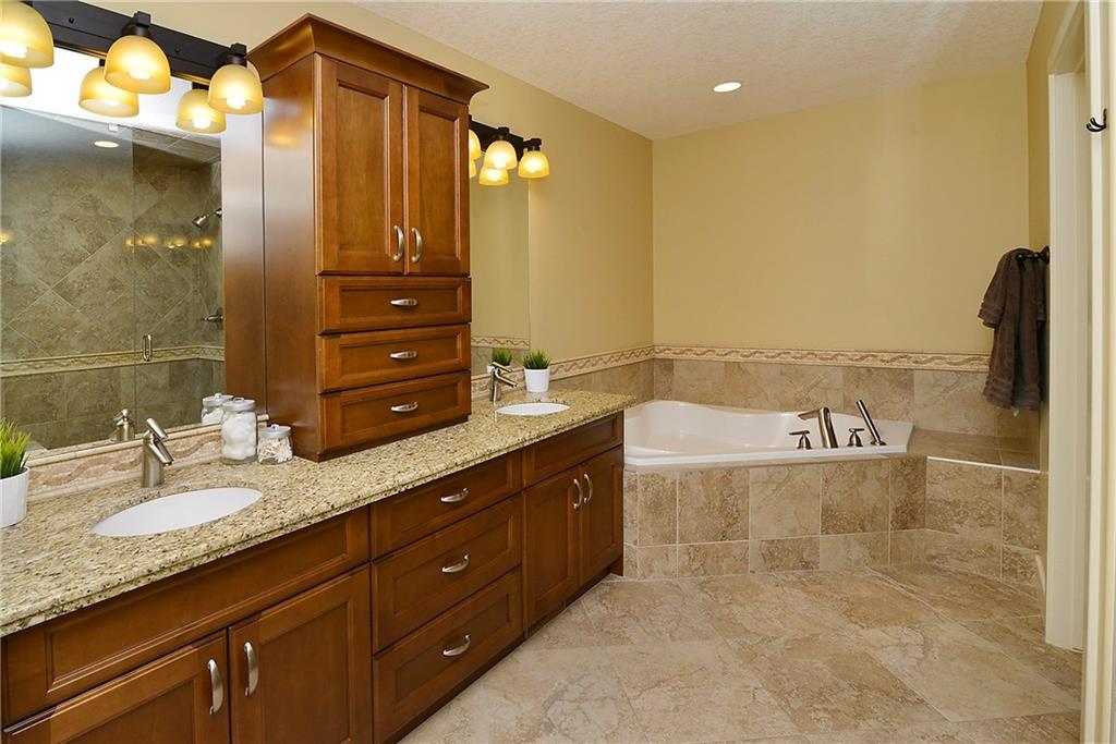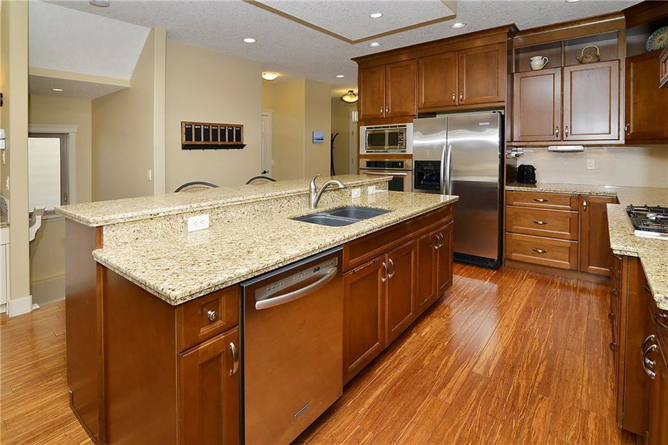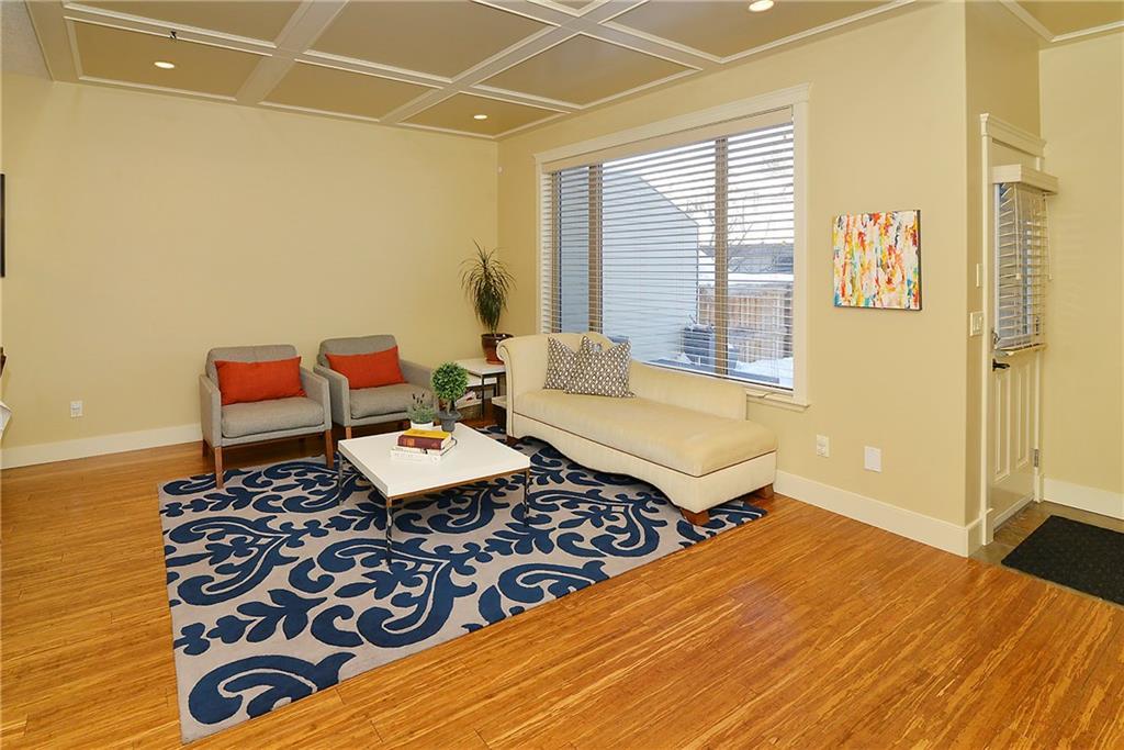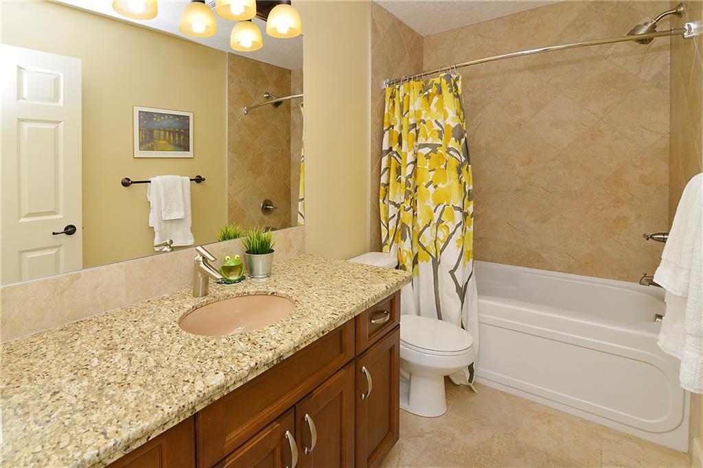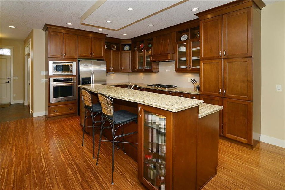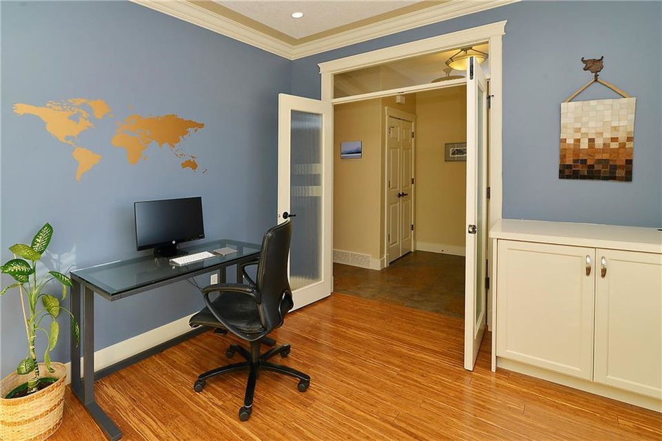 You can’t beat the value found in this extremely well-built family home on a quiet street with upgraded details throughout. The spacious, open concept main level has a gorgeous kitchen with ample high quality cabinetry, granite countertops, & stainless steel appliances. Open dining room & large family room with a gas fireplace, coffered ceiling & built-in cabinetry. Main level office with built-in cabinets & glass french doors. Hardwood floors throughout main level. The upper level has 3 bedrooms including the master bedroom with vaulted ceilings, walk-in closet & large ensuite featuring a tiled shower with tempered glass door & separate soaker tub. Two more large bedrooms, full bathroom & laundry room on upper level. The fully finished basement has a spacious bedroom with ensuite, bright family room with engineered hardwood, storage room & ample built-in closets. In-floor heat throughout basement.Charming private yard with exposed aggregate pathways, flagstones, perennials, updated deck & patio.