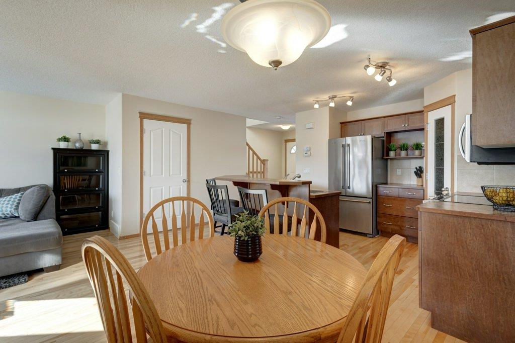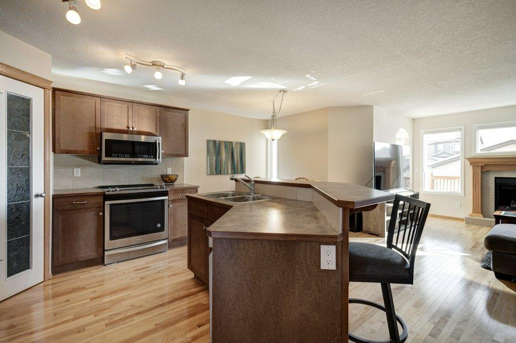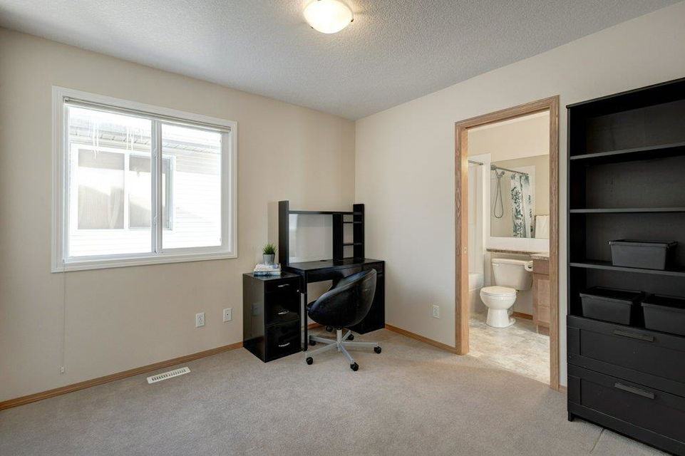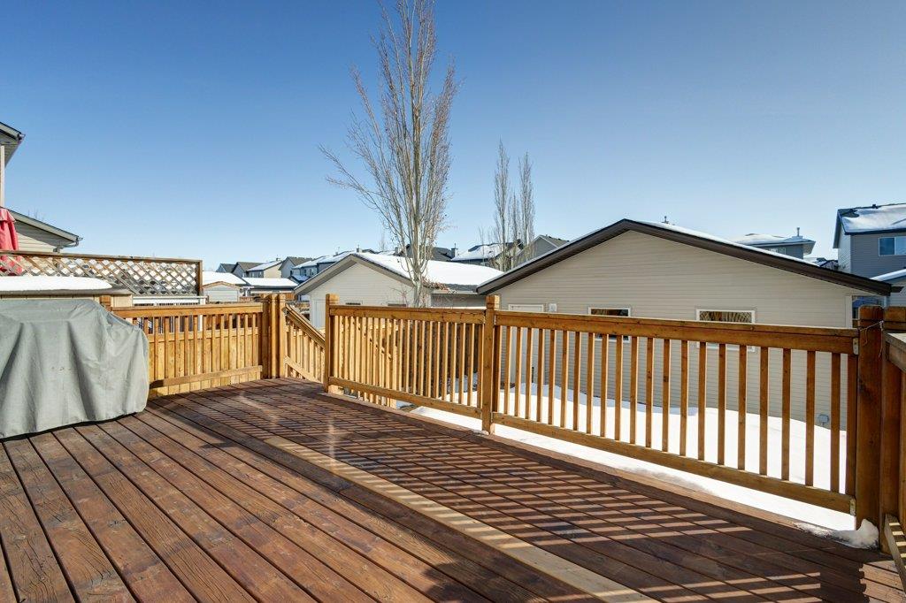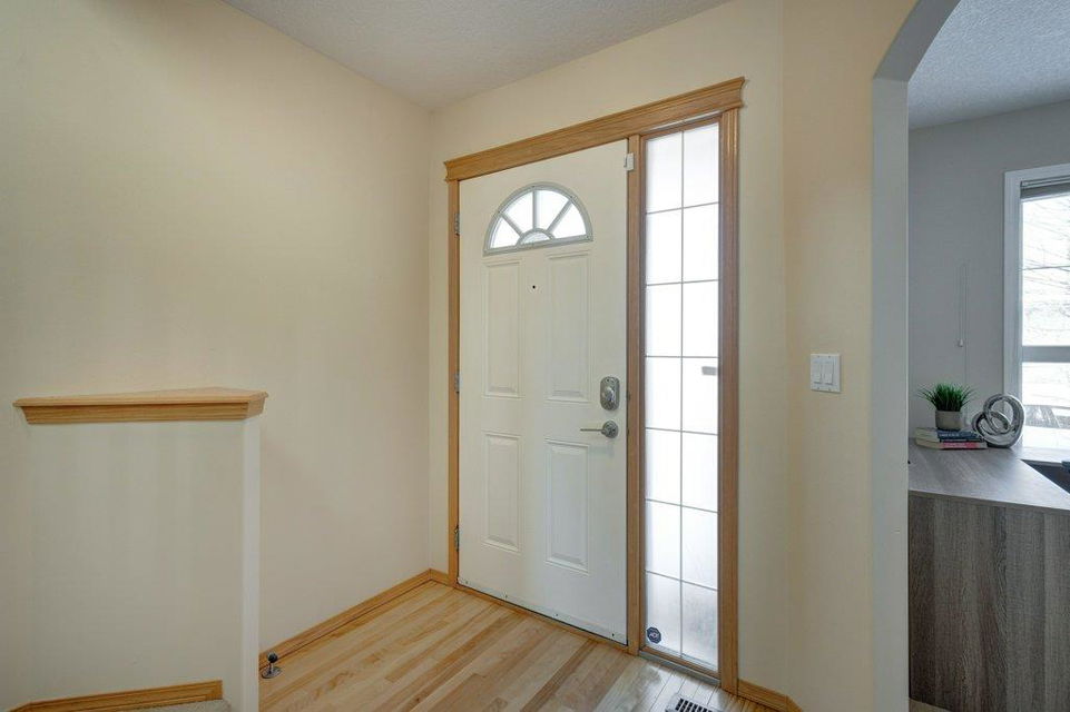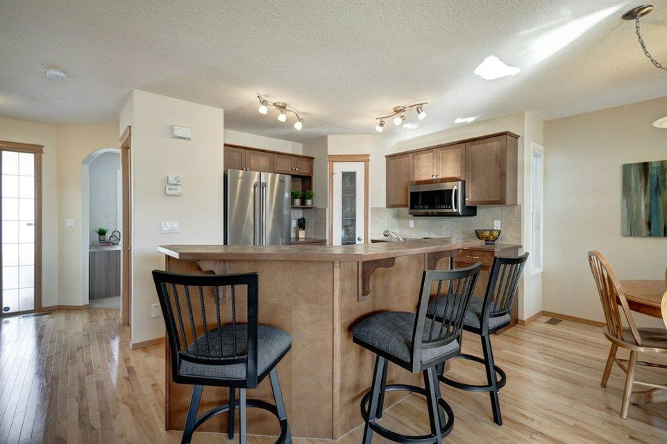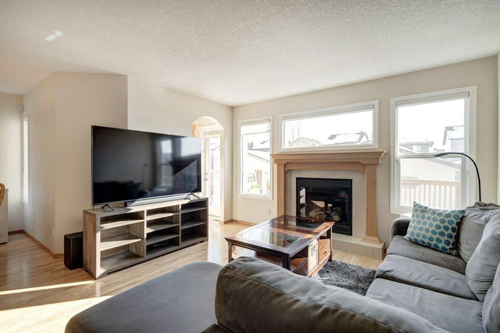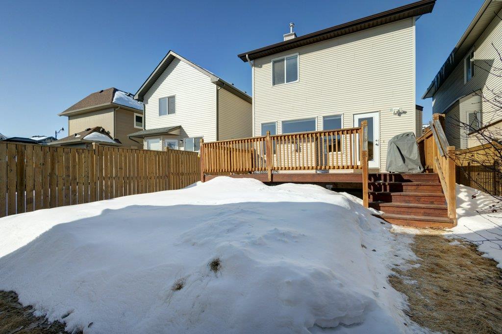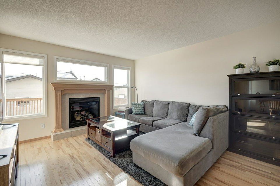 Located on a quiet street, this upgraded 4 bedroom, 3.5 bathroom home has a great layout throughout and has a great east facing yard and double garage. Many updates over the past few years including new siding and new class 4 impact resistant roof shingles (2021), new hot water tank (2020), new basement carpet (2020), new washer and dryer (2017), and central air conditioning added (2017). The bright and spacious main floor offers an open concept kitchen with corner pantry, stainless steel appliances, and breakfast bar. The kitchen opens onto the dining space and living room with gas fireplace. The main floor also features an office/den great for working from home and a powder room. On the upper level you will find the primary bedroom with walk-in closet and ensuite, 2 other sizeable bedrooms, a 4 piece bathroom and laundry area. Fully developed bright basement with the 4th bedroom, full bathroom, family room and storage. Hardwood floors on the main floor, central air conditioning, built-in vacuum system, and so many windows offering plenty of natural night. Fully fenced yard with a large wood deck with a BBQ area and plenty of room for patio furniture. The double garage easily fits 2 vehicles and is insulated/drywalled. An excellent home overall! Great access in and out of the community and just steps to parks and green spaces.