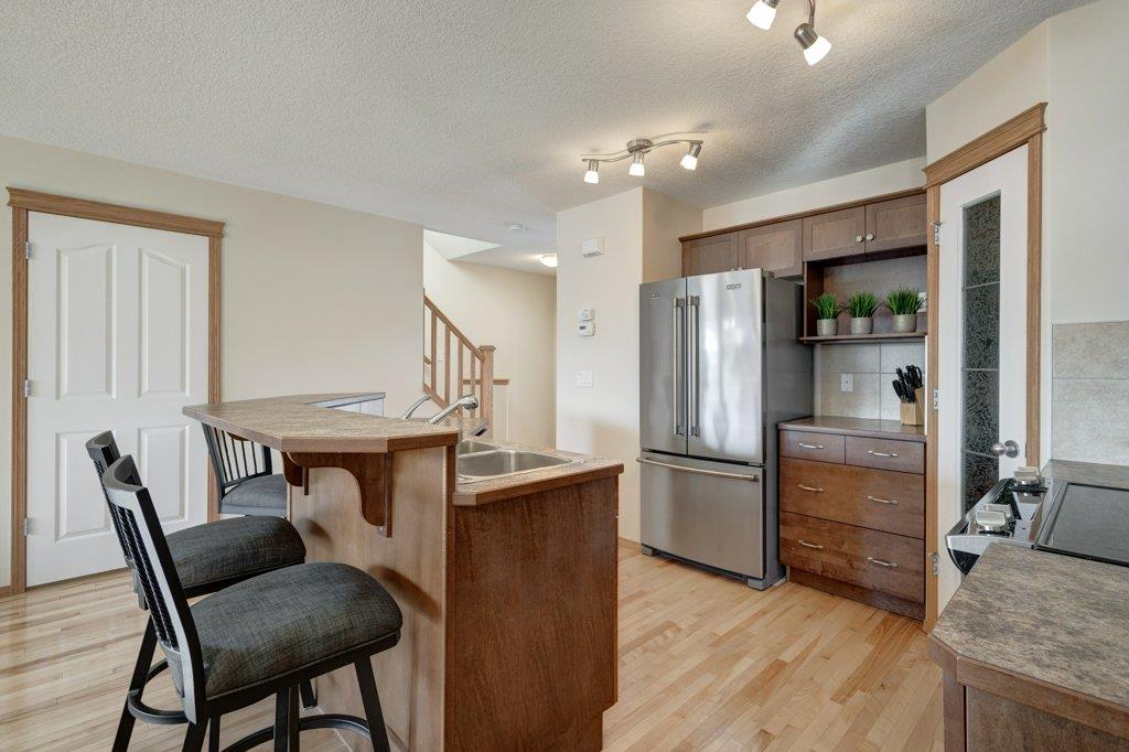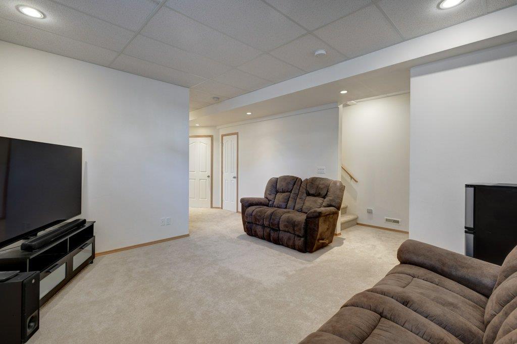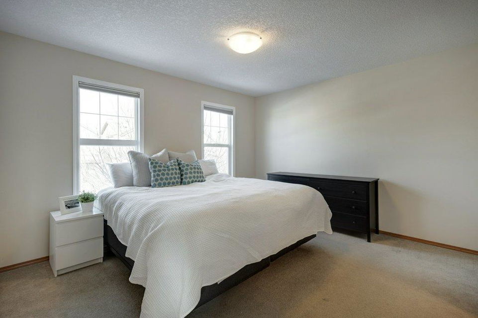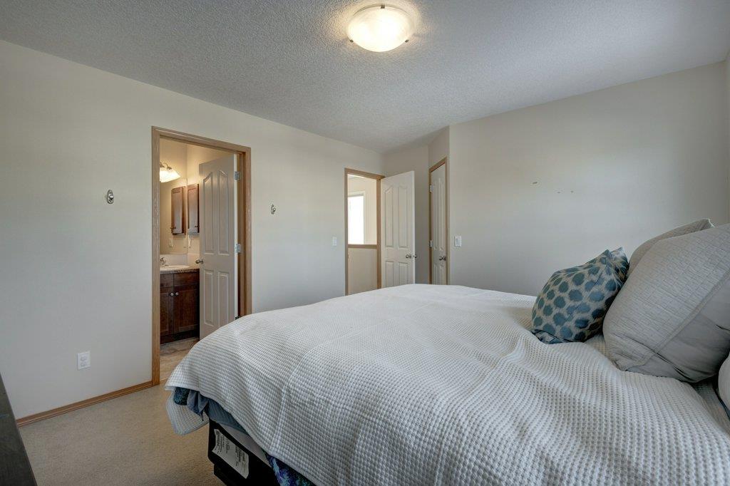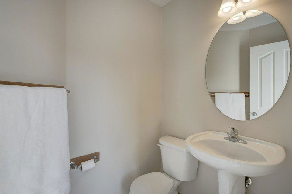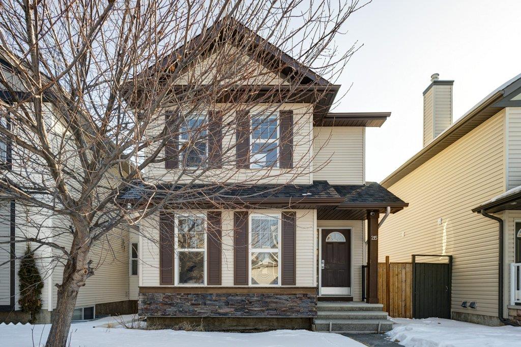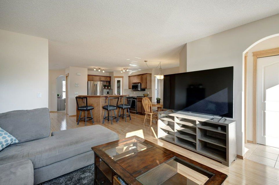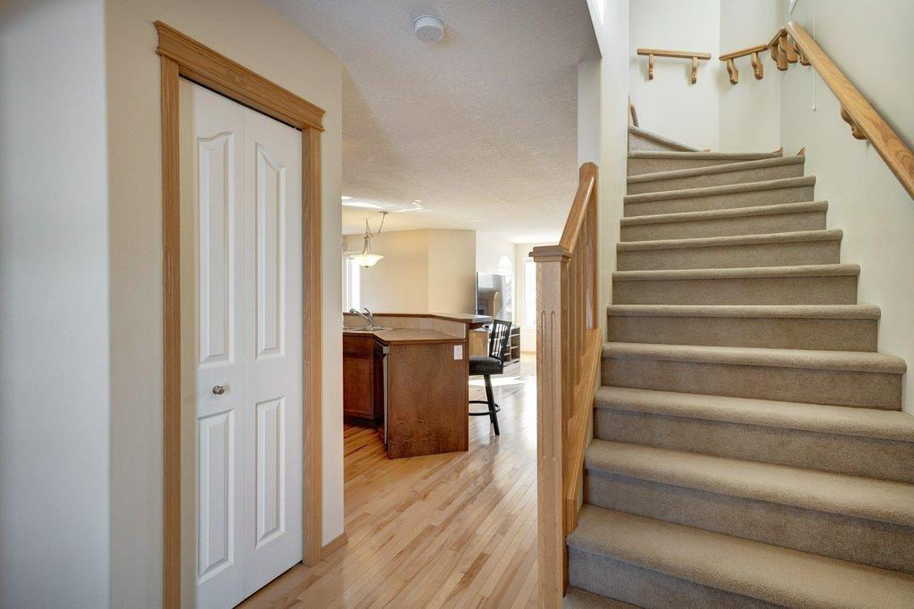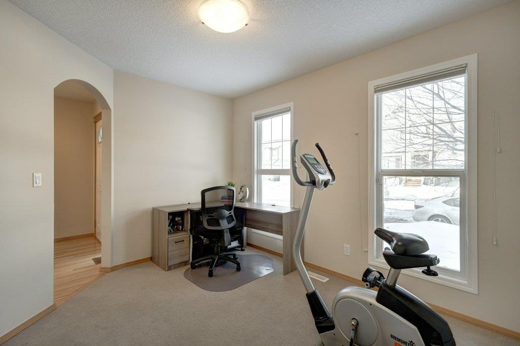 Located on a quiet street, this upgraded 4 bedroom, 3.5 bathroom home has a great layout throughout and has a great east facing yard and double garage. Many updates over the past few years including new siding and new class 4 impact resistant roof shingles (2021), new hot water tank (2020), new basement carpet (2020), new washer and dryer (2017), and central air conditioning added (2017). The bright and spacious main floor offers an open concept kitchen with corner pantry, stainless steel appliances, and breakfast bar. The kitchen opens onto the dining space and living room with gas fireplace. The main floor also features an office/den great for working from home and a powder room. On the upper level you will find the primary bedroom with walk-in closet and ensuite, 2 other sizeable bedrooms, a 4 piece bathroom and laundry area. Fully developed bright basement with the 4th bedroom, full bathroom, family room and storage. Hardwood floors on the main floor, central air conditioning, built-in vacuum system, and so many windows offering plenty of natural night. Fully fenced yard with a large wood deck with a BBQ area and plenty of room for patio furniture. The double garage easily fits 2 vehicles and is insulated/drywalled. An excellent home overall! Great access in and out of the community and just steps to parks and green spaces.
