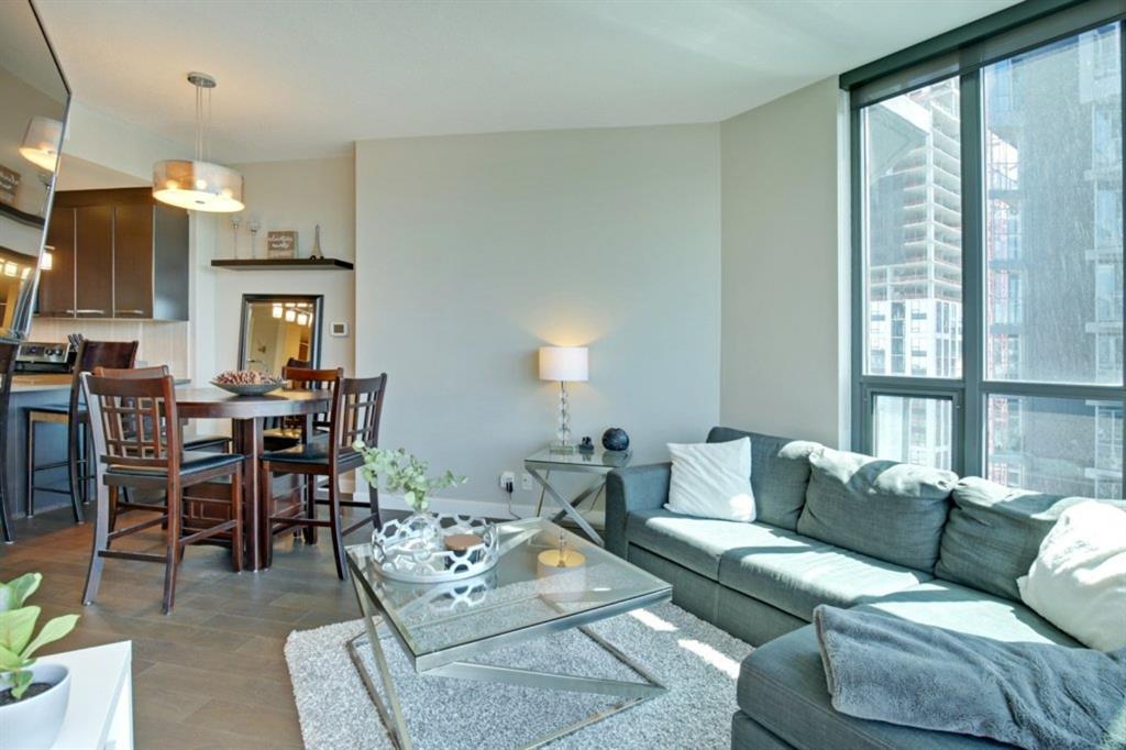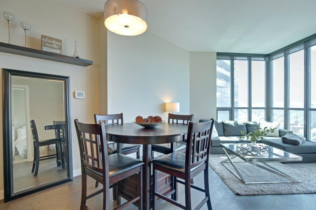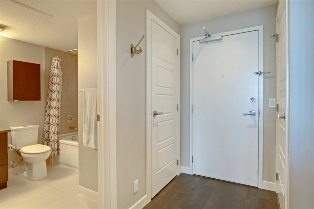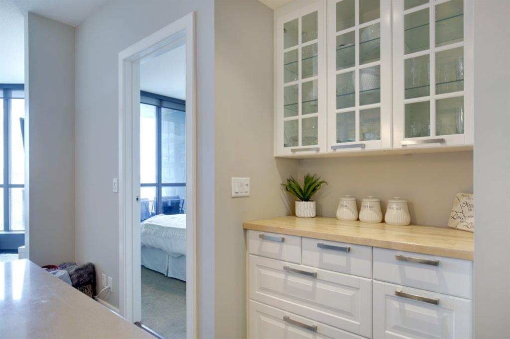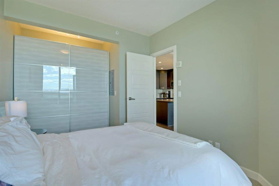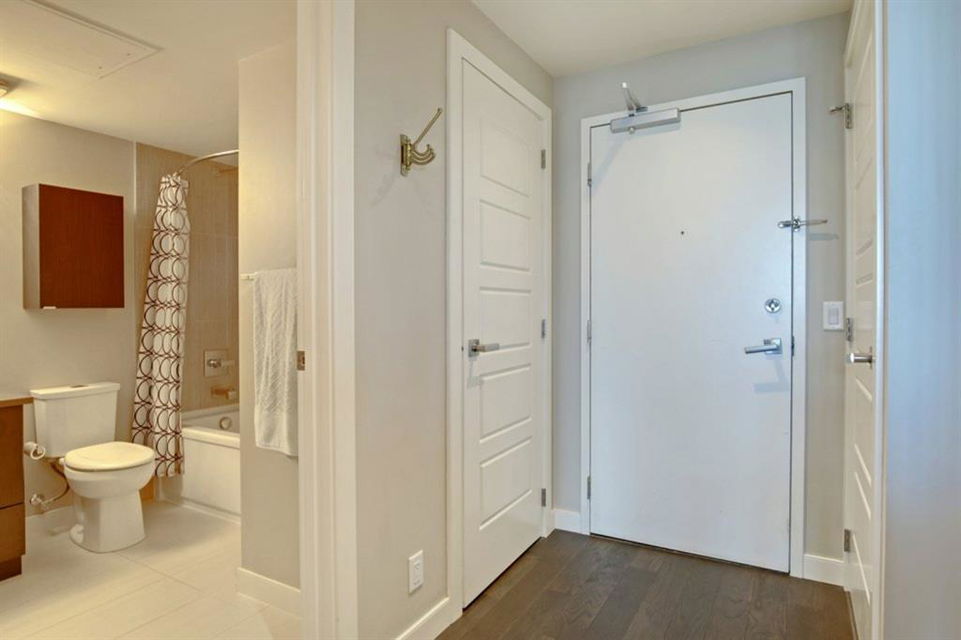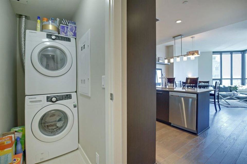 Located on the 22nd floor of Keynote 2, this SW facing condo offers beautiful views, plenty of natural light and a very functional floor plan. Open concept kitchen with quartz counters, stainless steel appliances and breakfast bar opens onto the dining area that can easily accommodate a table for 4 or 6. Just off of the kitchen an additional bank of upper & lower cabinets with butcher block counter top has been added creating lots of extra storage. Living room offers several windows with great city & mountain views and access to the balcony that can accommodate a couple of chairs and a small table. Spacious bedroom, 4 piece bathroom and laundry room complete this trendy condo. Added bonuses include NO structural pillars impeding the space, central air conditioning, added kitchen storage and high floor location with beautiful views. HUGE titled parking stall that measures 15’10″x14’5″ and is conveniently located just steps from the elevator. Titled storage locker included too. Vacant and ready for quick possession. Building amenities include fitness facility, hot tub, multi purpose/games room, plus 15 outdoor space and guest suites. Get to Sunterra Market without going outside, quick walk to downtown, Saddledome and the C-Train. Well kept condo in an extremely desirable location, being sold by the original owner. Builder size 626 sq ft.