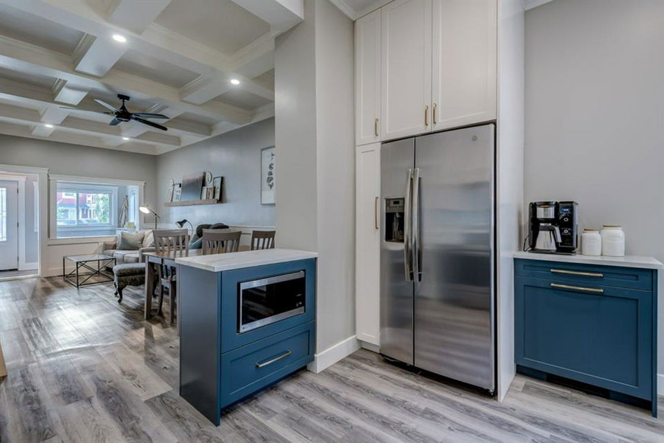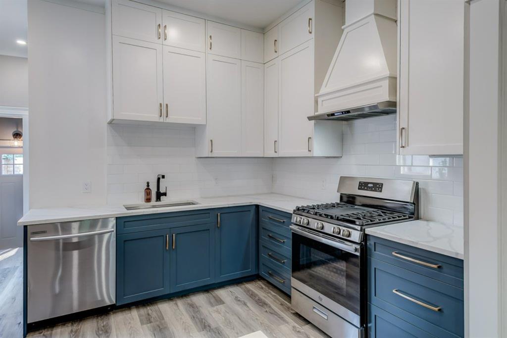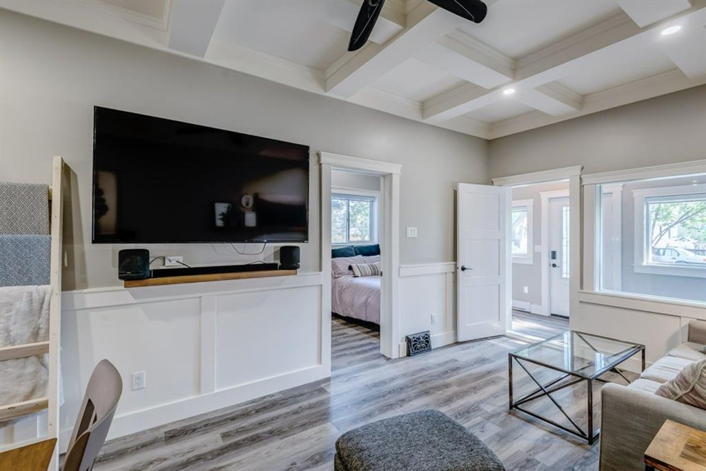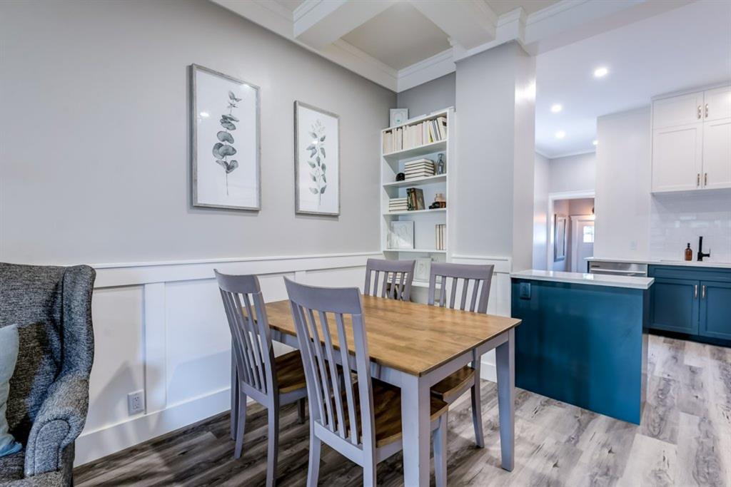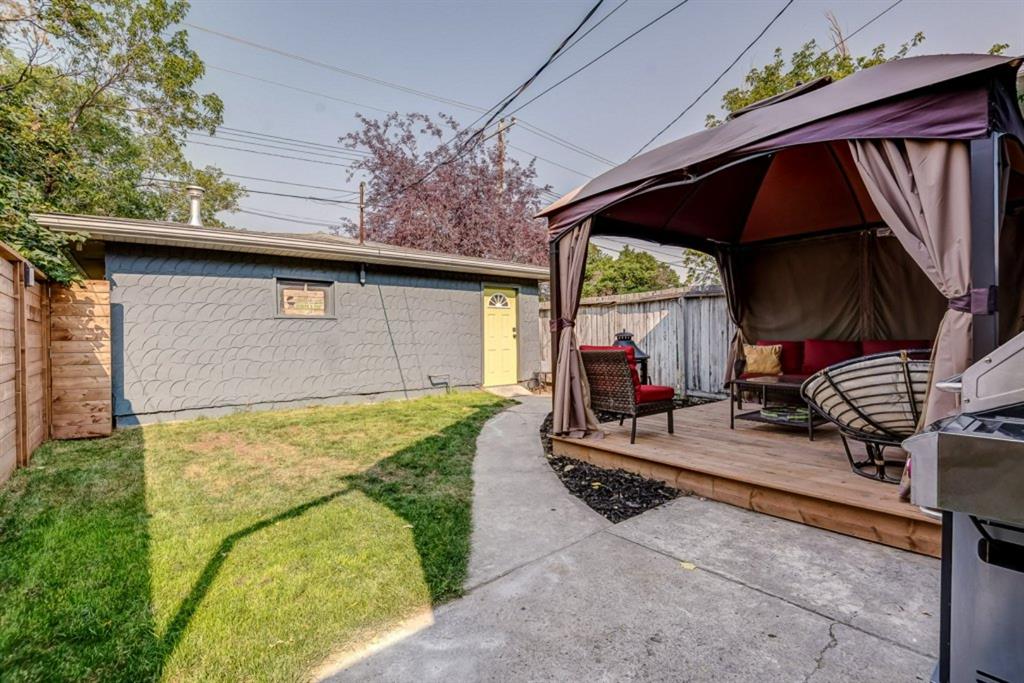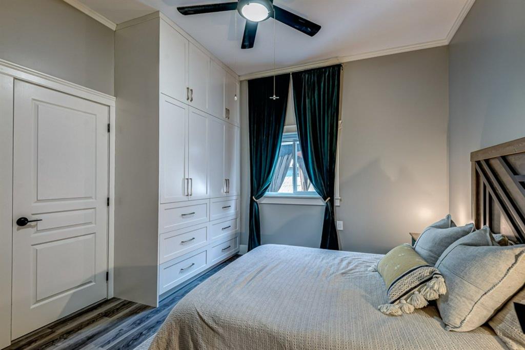 Charming and professionally renovated 2 bedroom character home located on a beautiful tree lined street in Inglewood. The open concept main floor offers a modern kitchen featuring full height custom made and lacquered cabinetry with soft close hardware, quartz countertops, stainless steel appliances, subway tile backsplash and pantry. Living room with wainscotting and coffered ceiling opens onto the dining area with a built-in shelf. The primary bedroom features a custom cabinetry closet system and the second bedroom also has a custom closet with barn door. Beautiful 4 piece bathroom with tiled stand up shower, re-finished clawfoot tub, custom vanity with quartz countertop and linen closet. The front porch has been rebuilt, insulated, electrical and radiant heat added and now offers a great flex space that can be used as a mud room, foyer or even as an at home office. The main floor offers 9’7″ ceilings, all new paint (walls and ceilings), trim and vinyl plank floors. Extensive list of renovations over the past 2 years including : new custom kitchen and bathroom, vinyl plank flooring throughout main level, paint, trim, LED pot lights, ceiling fans, all new appliances, all new windows on the main floor, new window coverings, new exterior doors with Weiser smart locks, 60 gallon hot water tank, Lennox high efficiency furnace, shingles replaced on the house, eavestroughs replaced on the house and garage, Hardie Board siding on the front of the house, stucco painted on the house and garage, new ABS sewer line from sidewalk to house, new deck, and the list goes on! Laundry, storage space and utilities are in the unfinished basement . West facing, fully fenced yard with deck, oversized double detached garage and parking pad for your trailer or extra vehicles. Located just steps from an off leash dog park, walking distance to the Inglewood Bird Sanctuary and pathways. An amazing move in ready home where all of the work has been done for you, just move in and enjoy!
