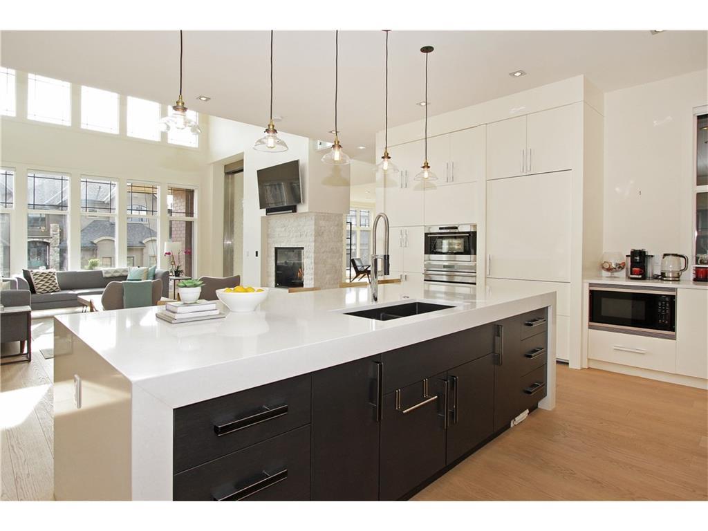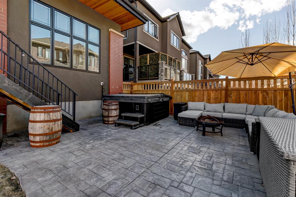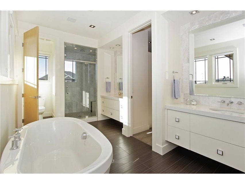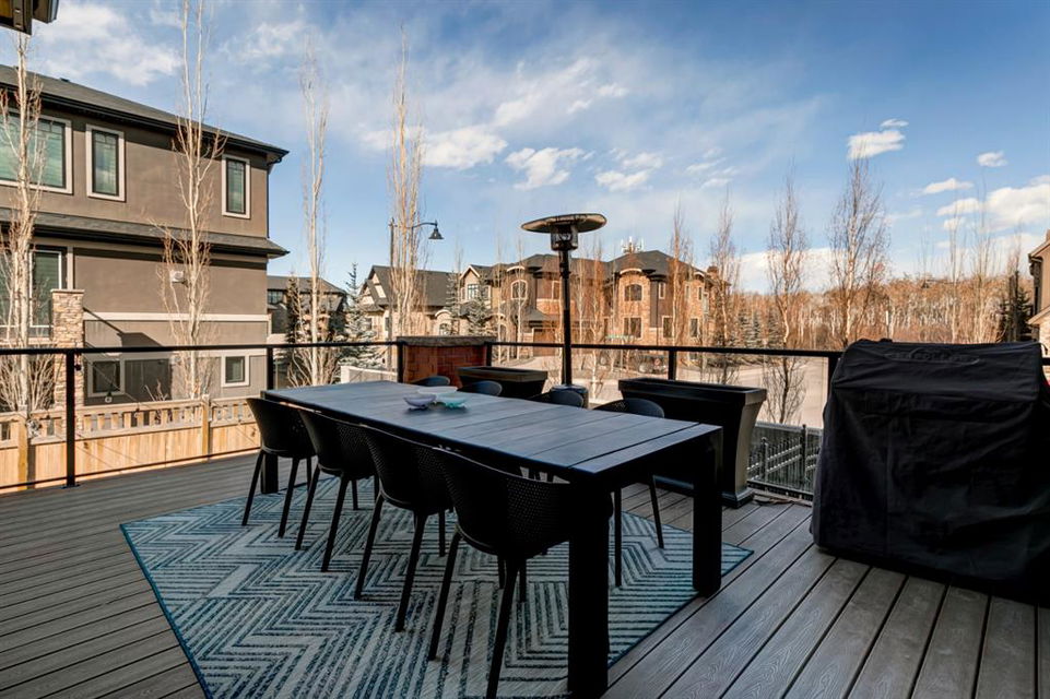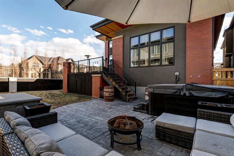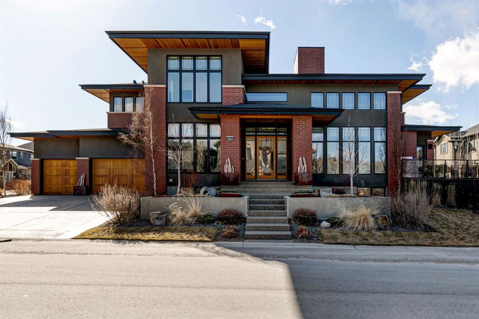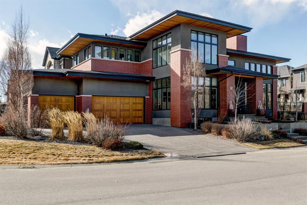 Stunning property with beautiful curb appeal, exceptional modern finishes, an amazing, functional layout with 4717 sq ft of developed living space and a triple attached garage. Located on a quiet crescent, this modern masterpiece inspired by Frank Lloyd Wright architecture was built with the entertainer in mind. The grand 2 storey entrance offers a memorable first impression with a custom waterfall wall, marble flooring, and a double sided fireplace. Open concept main floor with Haro engineered hardwood flooring, excellent finishing details throughout and great natural light. Dream gourmet kitchen with a 9.5 foot long Caeserstone waterfall island, stone & platinum backsplash, Sub Zero & Wolf appliances, and plenty of cabinetry. The kitchen opens onto the dining room with built-in cabinetry and access to the spacious deck. Bright, gorgeous living room with a 17 foot ceiling, 2-storey wall of windows, and double-sided fireplace. Expansive office with lovely windows and light, powder room, and spacious laundry room/mud room complete the main level. The upper level offers a spacious primary bedroom with walk-in closet and a spa-like ensuite with a free standing tub, dual vanities, and fully tiled shower. 2 additional bedrooms, each with their own ensuite on the upper level, plus a bonus room which is a great space for a TV room or an at home office. The fully developed basement features a massive media room, games area which includes a wet bar with 2 beverage fridges and plenty of cabinet and counter space, home gym, flex room and full bathroom. Both the gym and flex room are large enough to turn into bedrooms if desired. The triple attached garage has epoxy floors, space for a lift, and comes with EV charging! The fully fenced yard is complete with irrigation, a stamped concrete patio, hot tub, and lovely spacious deck with outdoor fireplace. The beautiful front landscaping includes concrete retaining walls and planters with perennials which adds to the beautiful curb appeal this home offers. This is a smart home with full control of lighting, heating, cooling, music, and irrigation which can all be controlled through any smart phone. The location is quiet yet offers easy access in and out of the neighbourhood. Close to schools, parks, the amenities of 85th Street & Aspen Landing, Westside Rec Centre and easy access to downtown and the mountains. This one of a kind home is ready to welcome its new owners!