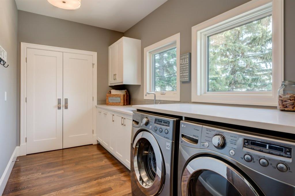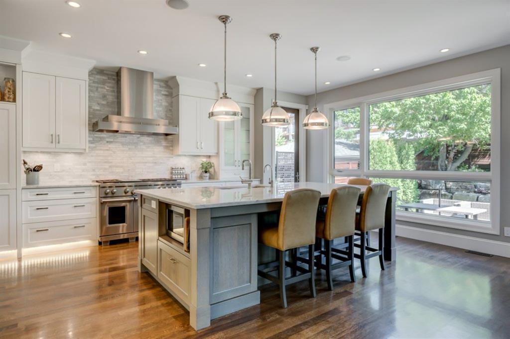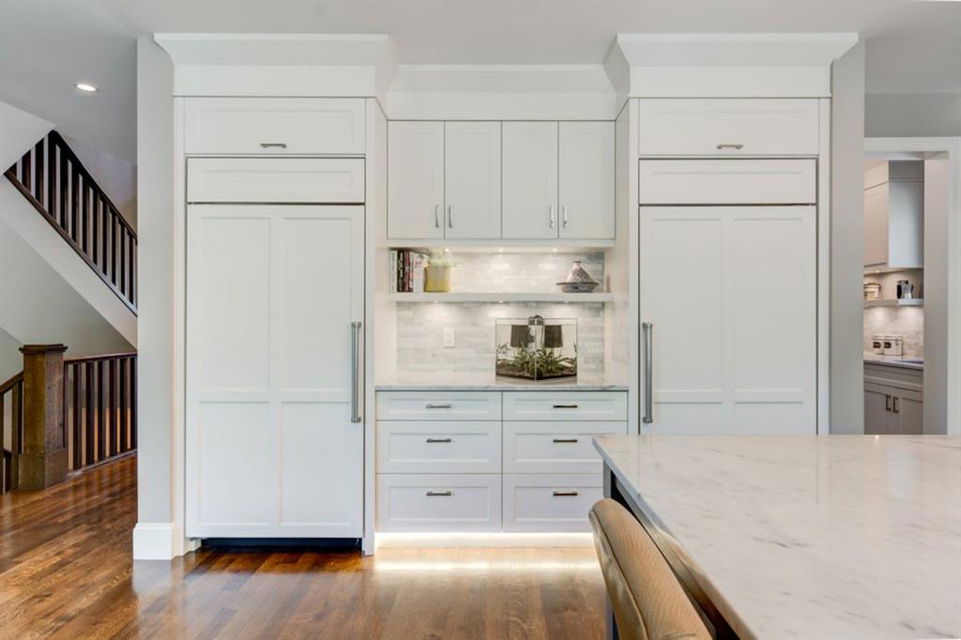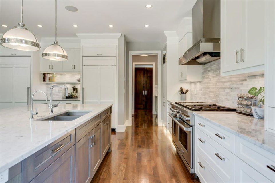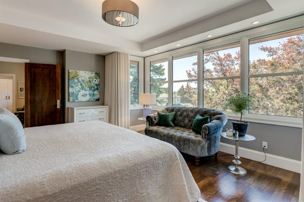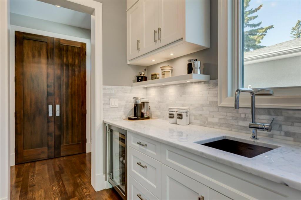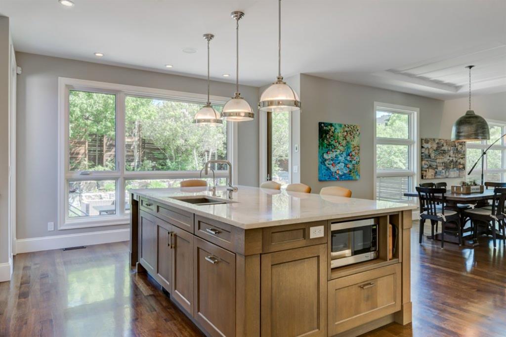 Absolutely gorgeous and timeless 5 bedroom family home on a stunning 60 ft wide property. Located on a quiet, tree-lined St. Andrew’s Heights street, this home is a rare find with a triple attached garage. Beautiful details throughout including site finished quarter sawn oak hardwood, custom wood railings, limestone flooring and marble countertops. The main level features an open concept kitchen, dining area and 2 storey living room, all facing the picturesque backyard. The kitchen is fully equipped with Denca cabinetry, a Sub Zero refrigerator and freezer, 48″ Wolf range, Carrara marble countertops and backsplash. Butler’s pantry with bar sink and beverage fridge, plus a walk in pantry. Beautiful 2 storey living room with plenty of windows, natural light, and a dramatic gas fireplace with stone facade. Large sunken dining room, sizeable office and powder room complete this main level. The upper level has 4 spacious bedrooms, all with tray ceilings, including the master with lovely three-sided windows, custom drapery, walk-in closet, and ensuite with marble details, heated floors and a steam shower. Upper level laundry and a full bathroom complete this level. The basement has a cozy media room with a bar and beverage fridge, bedroom, full bathroom, den area, and utility room with storage space. The basement mudroom (there is also a walk-in closet) leads to you the 3 car attached heated garage with epoxy flooring. The third parking spot is a tandem stall, and the garage has extra storage space as well. Professionally landscaped front and backyard with boulders, perennials, and a large composite deck. This inner city location is excellent, just a few minutes’ walk to the Foothills Hospital, close to U of C, the Children’s Hospital, and very quick access to downtown.