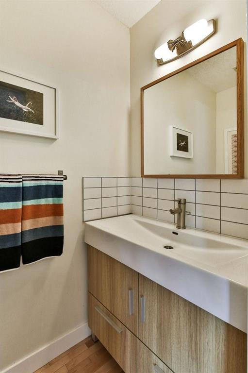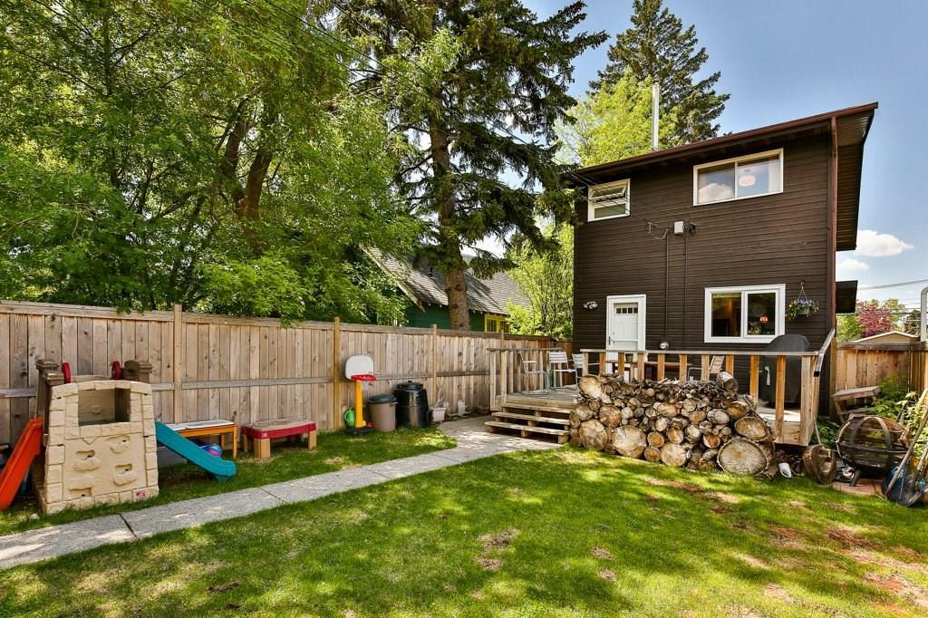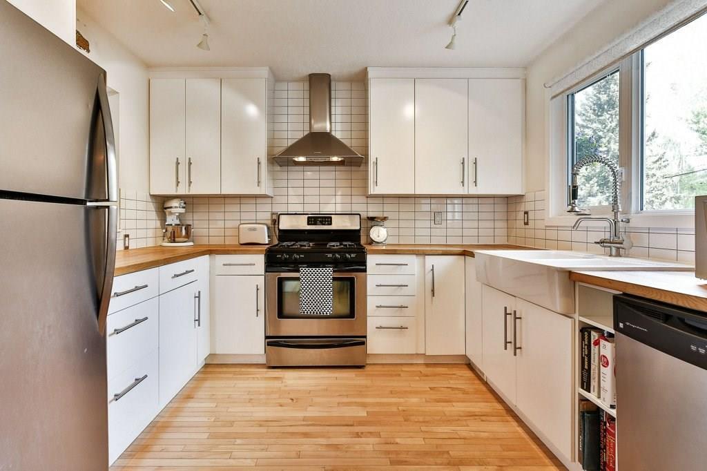 Perfect inner-city home for those ready to move on from condo living! Renovated infill conveniently located just blocks from Confederation Park & just a 10-minute drive to the core. Updated kitchen is finished with butcher-block counters, white cabinetry, subway tile backsplash, a double farm-house sink & stainless appliances with gas stove. Upstairs you’ll find a renovated bathroom (2014) with double-vanity, modern white tiles & top-of-the-line Hans Grohe rain shower & wand. The master bedroom features a balcony with newer sliding doors, plenty of storage & built-in laundry hamper storage. The basement is developed with a separate laundry area, updated furnace (2010) & water heater (2015). Since 2009, the house has had over $100K in renos – including hardwood on the main floor, numerous new windows, a new cedar fence, aggregate sidewalks, & an insulated double garage with attic loft storage (2013). Walkable neighbourhood with easy access to transit, restaurants & amenities.