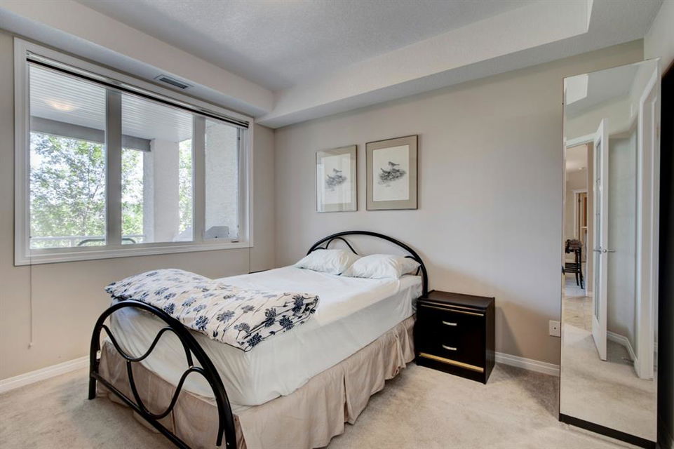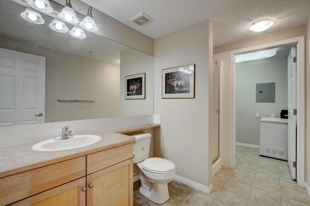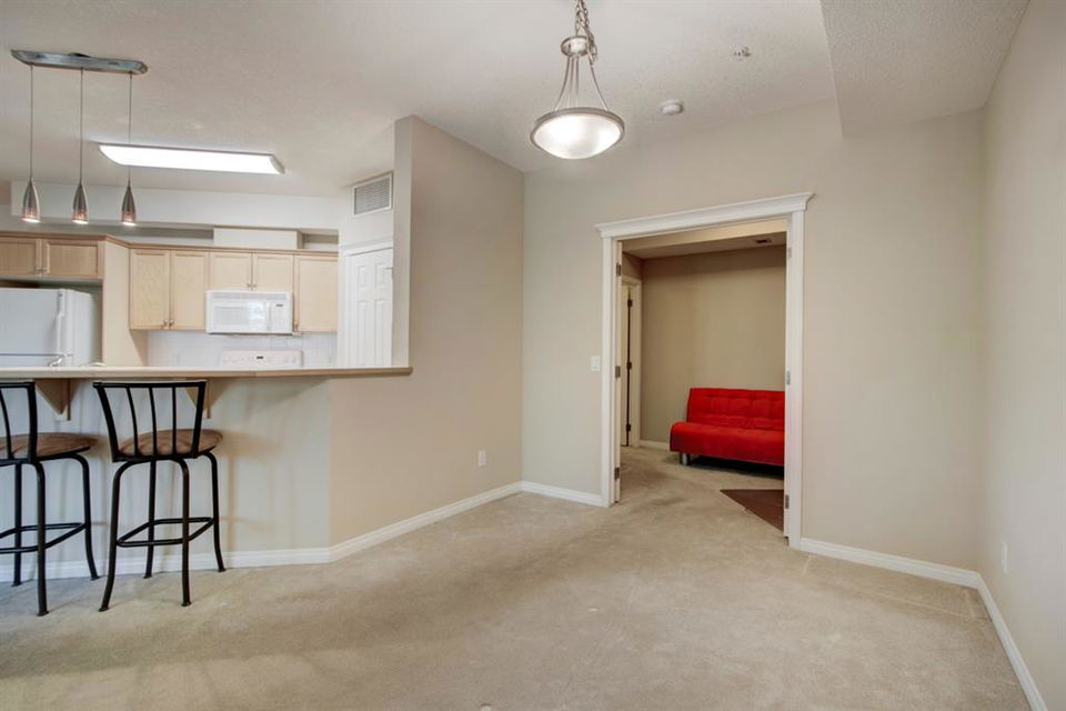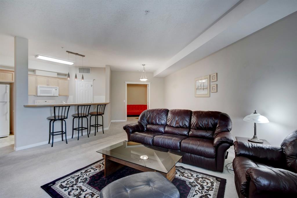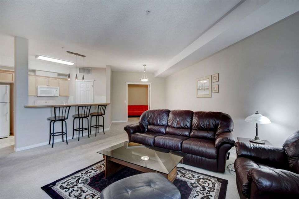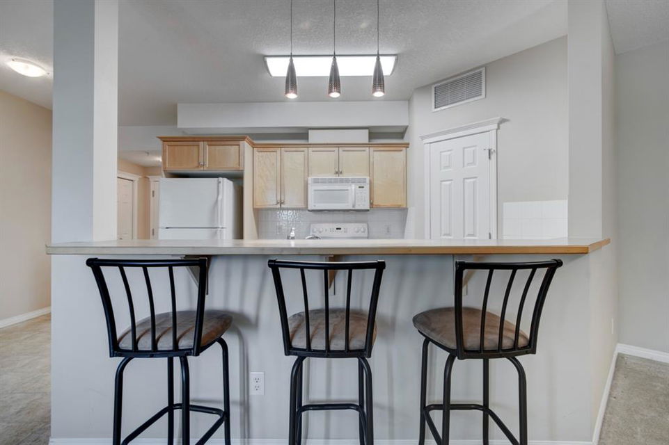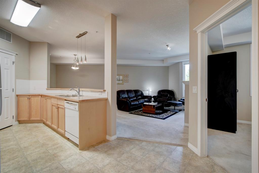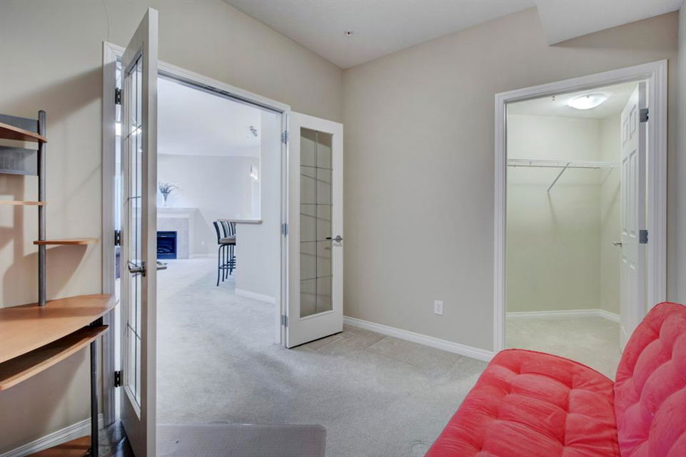 Welcome to this spacious and very well maintained 1 bedroom plus den, 2 bathroom condo unit in the excellent Sierras of Evergreen 55+ complex. The open floor plan features the living room with a fireplace with mantle, kitchen with breakfast bar seating, and dining room area. The living room has a patio door leading to the oversized 11 ft x 10 ft balcony. Large master bedroom with a walk-in closet and full ensuite bathroom. The den with french doors makes a useful work space/office area or room for a guest to sleep. 2nd full bathroom and a sizeable laundry room with storage space completes this condo. One titled underground parking stall and a storage locker are included. This building has a number of amenities including a hobby/woodworking room, swimming pool, hot tub, exercise room, wine and beer making room, party room, 2 meeting rooms and a sitting room with fireplace.
