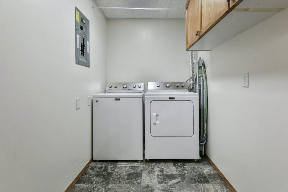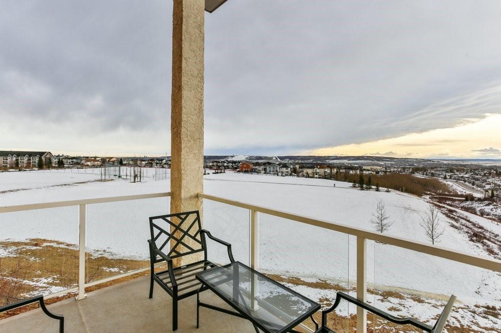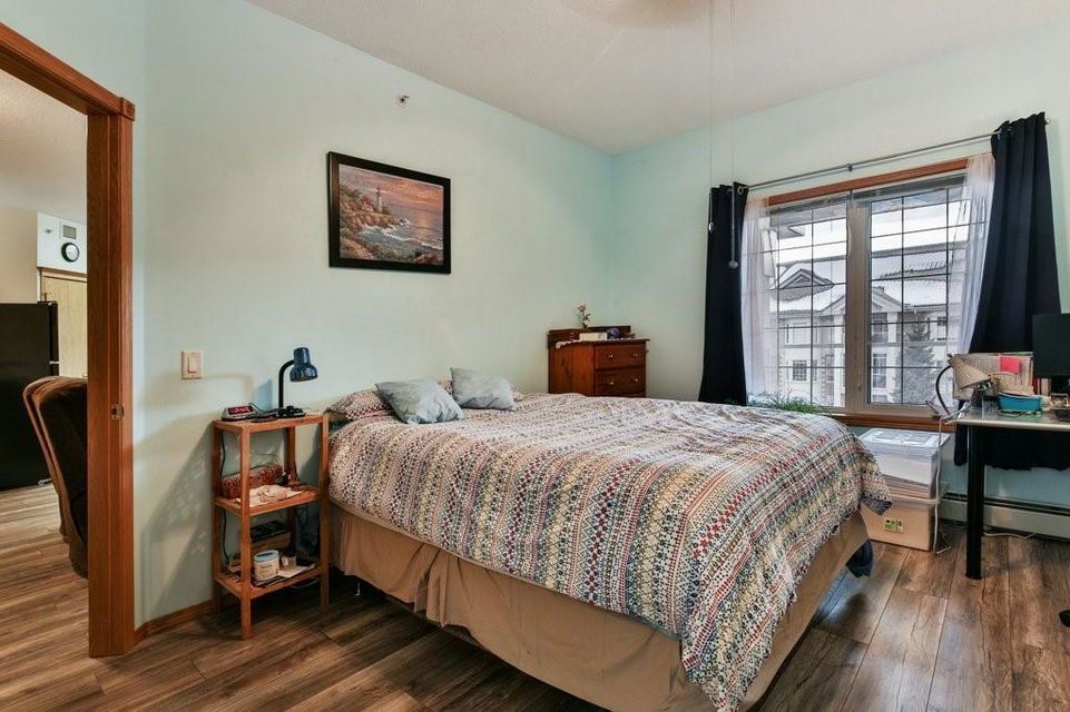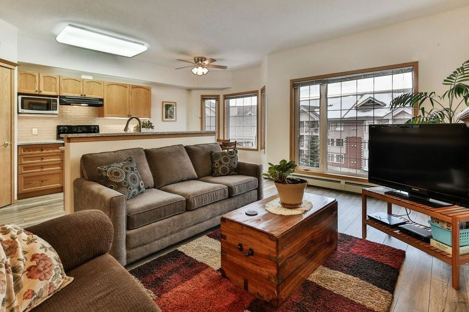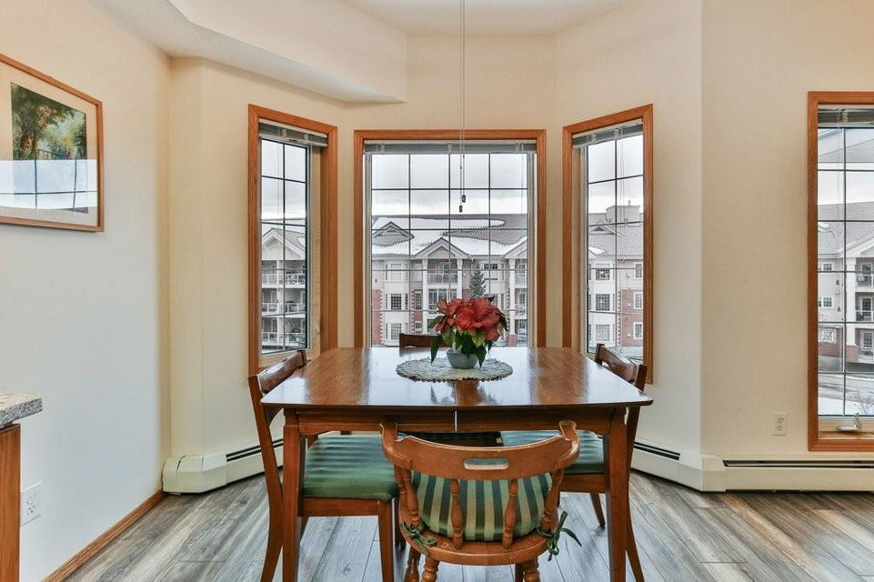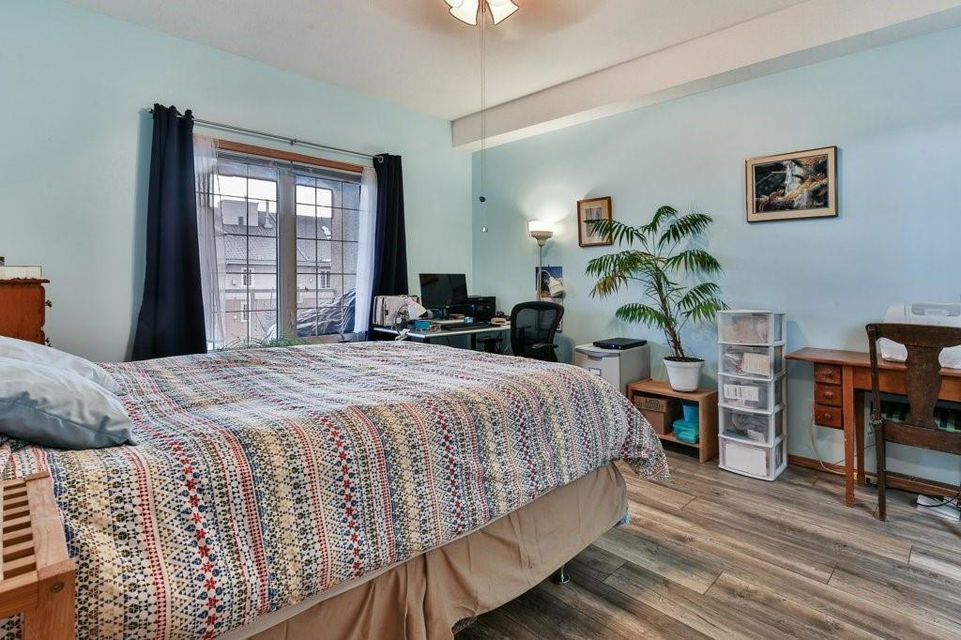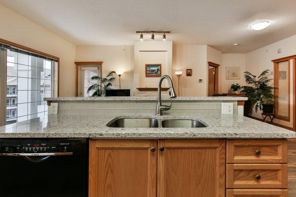 Updated, top floor, south facing condo in the very popular Sierra’s of Tuscany 40+ adult complex. Several updates to this spacious 1 bedroom + den unit since 2017 including – 5 new appliances, quartz countertops, under cabinet lighting, sink & faucet all in the kitchen, back splash in kitchen & bathrooms, laminate & vinyl flooring, all walls & ceilings painted, addition of ceiling fans & updated lighting & fireplace serviced & thermostat added. This very well kept condo offers an open concept kitchen with corner pantry, bright breakfast nook, living room with gas fireplace, master bedroom with ensuite & large walk-in closet, den with closet (large enough for 2nd bedroom), 2 piece bathroom & spacious laundry/storage room. Loads of in-suite storage, central air conditioning & south facing covered balcony. 1 assigned underground parking stall with enclosed storage locker in front of the stall. Great amenities including gym, pool, theatre, ball room, library, work shop, car wash, bowling alley & guest suites.