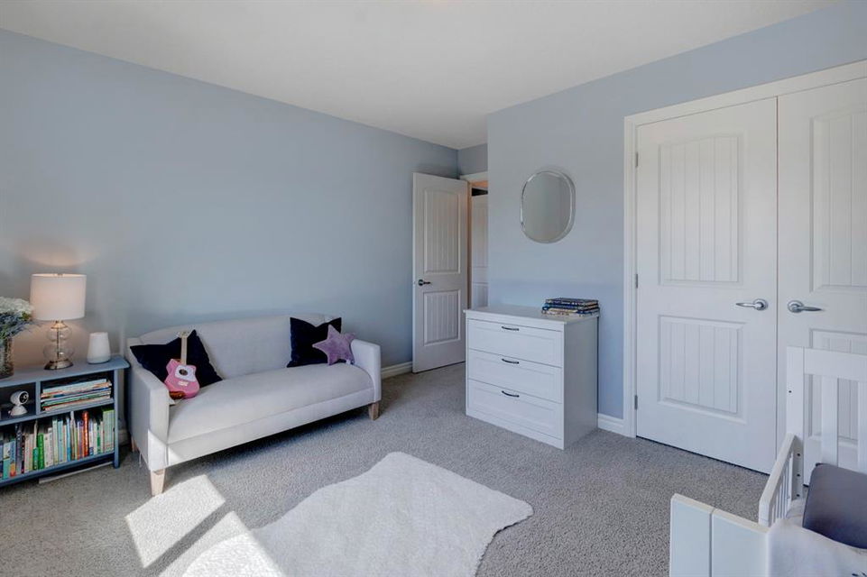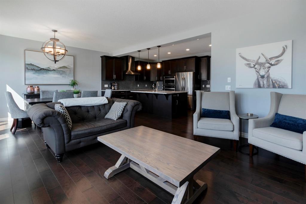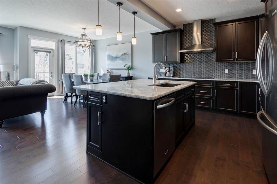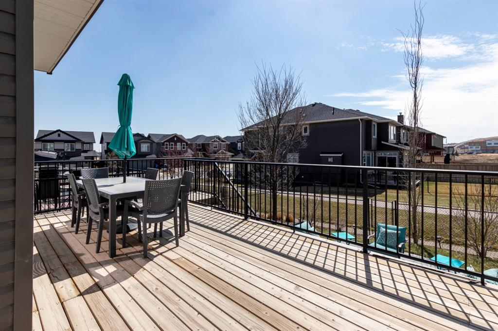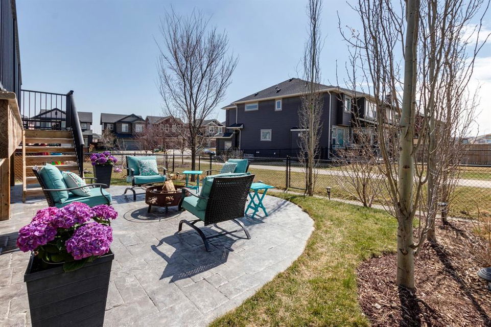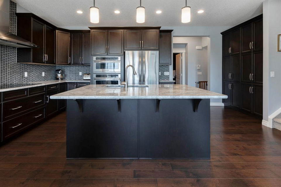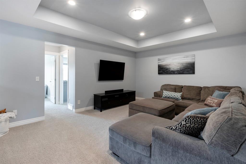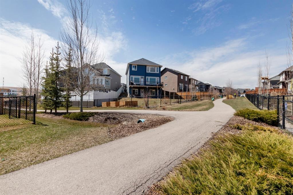 Extremely well kept and upgraded family home with a great layout, backing onto the pathway system. This Trico Home has 3 bedrooms, 2.5 bathrooms , an oversized double garage (can fit an F150), and a professionally fully landscaped yard. The open concept main floor features wide plank hardwood flooring, knockdown ceilings and trendy paint colours. Expansive kitchen with a full pantry wall of built-in cabinetry, beautiful granite countertops, a Kitchen Aid appliance package including double wall ovens and cooktop, a spacious island, mosaic tile backsplash, pendant lighting & pot lights. The kitchen opens onto the dining area that faces the yard and with access out to the south facing deck and yard. The living room also faces the yard in this open concept main level, and features a gas fireplace with mantle, tile surround and a built-in fan. The spacious front entrance with built-in storage bench & walk-in closet and a powder room complete the main level. On the upper level you will find the primary bedroom with vaulted ceilings, walk-in closet with a window, and a stunning ensuite with double vanity with granite countertops, beautiful fully tiled shower, and a soaker tub. Two additional bedrooms upstairs are great sizes. The 4 piece bathroom is located beside the 2 kids’ bedrooms, and you also find on this level the laundry room and a bonus room that is a perfect TV room, kids’ play room or both! The unfinished basement is well laid out, future bathroom is roughed-in, and provides lots of storage space. The south facing yard is professionally landscaped including a deck with a gas line for your BBQ, stamped concrete patio, lots of mature trees that offer privacy, and the yard backs onto the very well cared for pathway system. Easy access to playgrounds, shopping, restaurants, and to major routes to get in and out of the community. This very clean, well maintained home is being sold by the original owners.