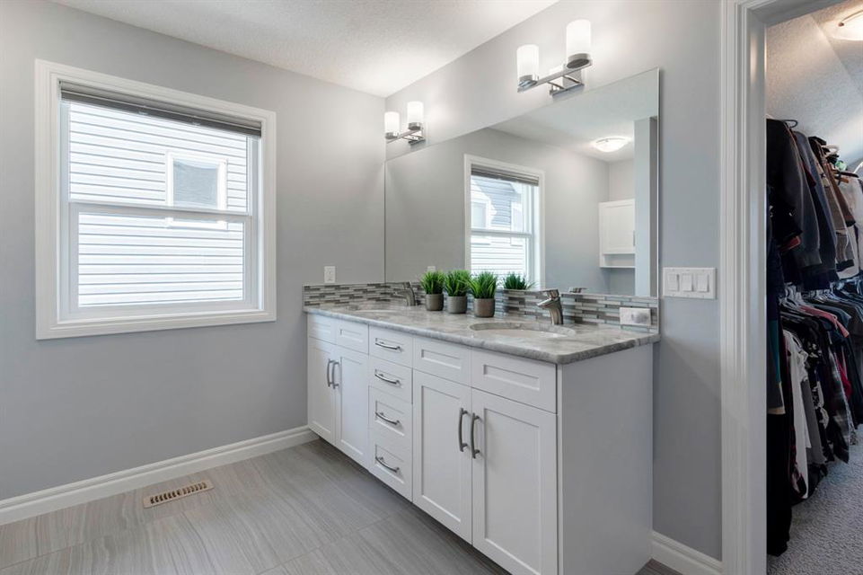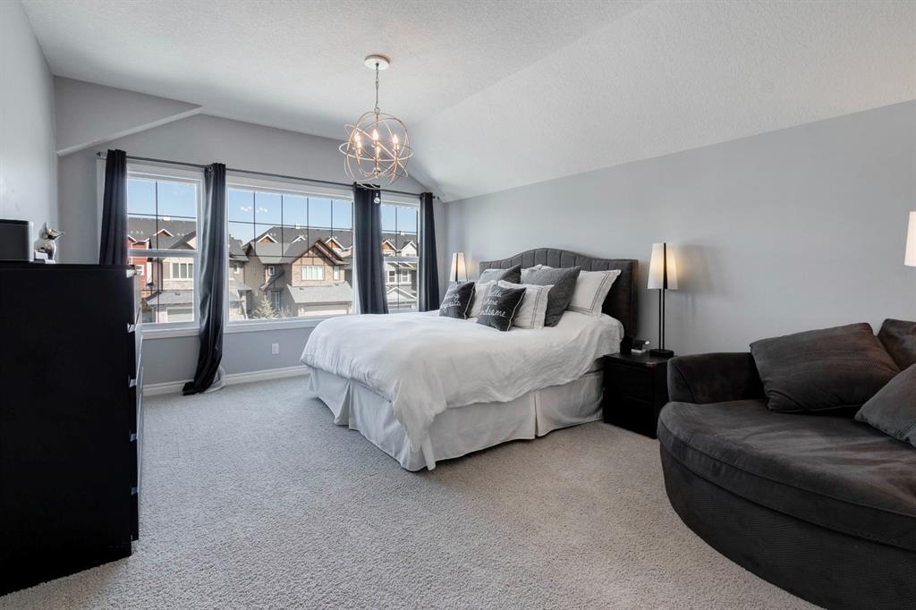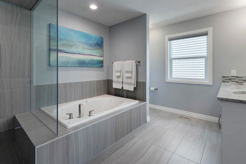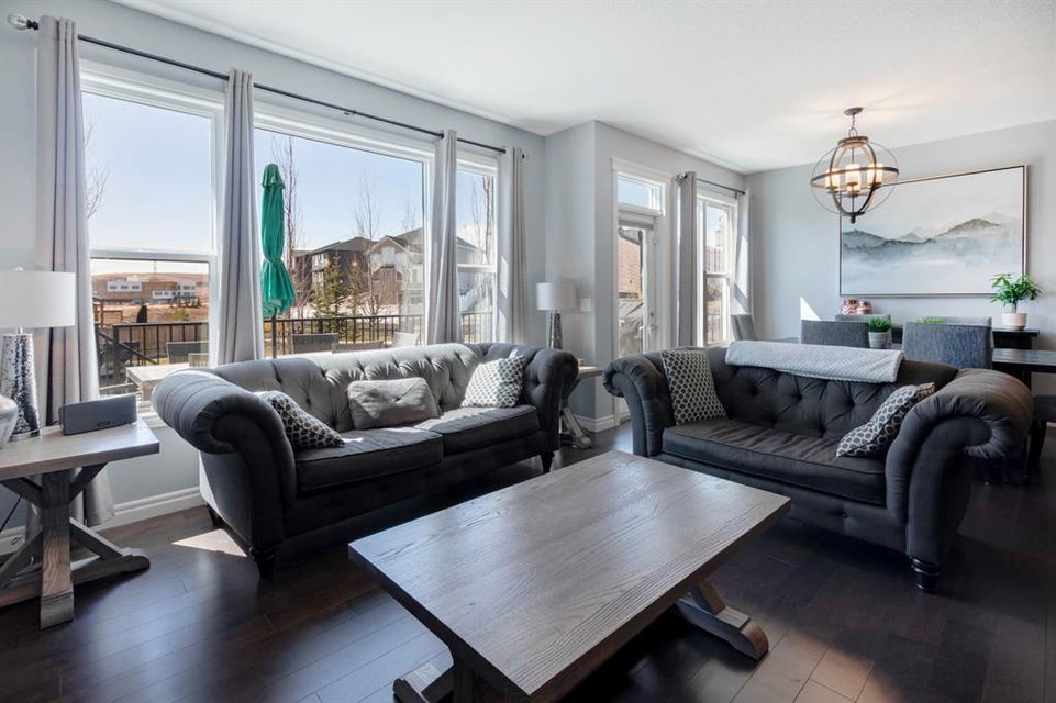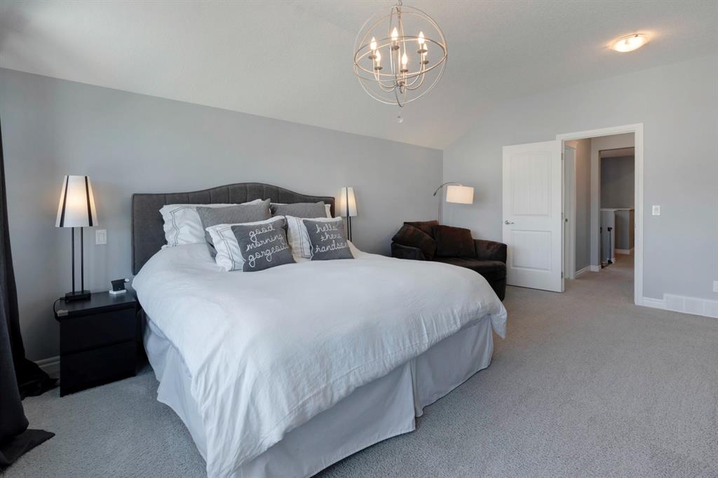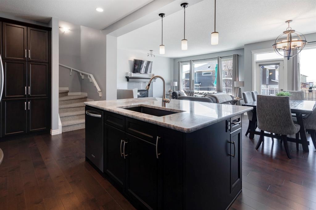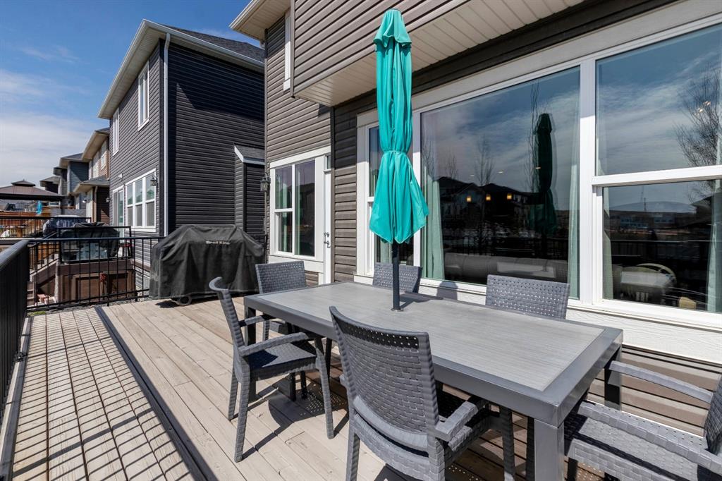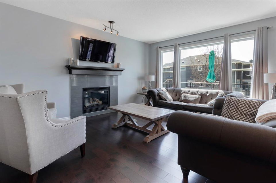 Extremely well kept and upgraded family home with a great layout, backing onto the pathway system. This Trico Home has 3 bedrooms, 2.5 bathrooms , an oversized double garage (can fit an F150), and a professionally fully landscaped yard. The open concept main floor features wide plank hardwood flooring, knockdown ceilings and trendy paint colours. Expansive kitchen with a full pantry wall of built-in cabinetry, beautiful granite countertops, a Kitchen Aid appliance package including double wall ovens and cooktop, a spacious island, mosaic tile backsplash, pendant lighting & pot lights. The kitchen opens onto the dining area that faces the yard and with access out to the south facing deck and yard. The living room also faces the yard in this open concept main level, and features a gas fireplace with mantle, tile surround and a built-in fan. The spacious front entrance with built-in storage bench & walk-in closet and a powder room complete the main level. On the upper level you will find the primary bedroom with vaulted ceilings, walk-in closet with a window, and a stunning ensuite with double vanity with granite countertops, beautiful fully tiled shower, and a soaker tub. Two additional bedrooms upstairs are great sizes. The 4 piece bathroom is located beside the 2 kids’ bedrooms, and you also find on this level the laundry room and a bonus room that is a perfect TV room, kids’ play room or both! The unfinished basement is well laid out, future bathroom is roughed-in, and provides lots of storage space. The south facing yard is professionally landscaped including a deck with a gas line for your BBQ, stamped concrete patio, lots of mature trees that offer privacy, and the yard backs onto the very well cared for pathway system. Easy access to playgrounds, shopping, restaurants, and to major routes to get in and out of the community. This very clean, well maintained home is being sold by the original owners.