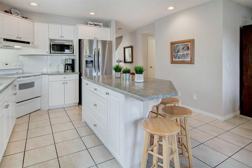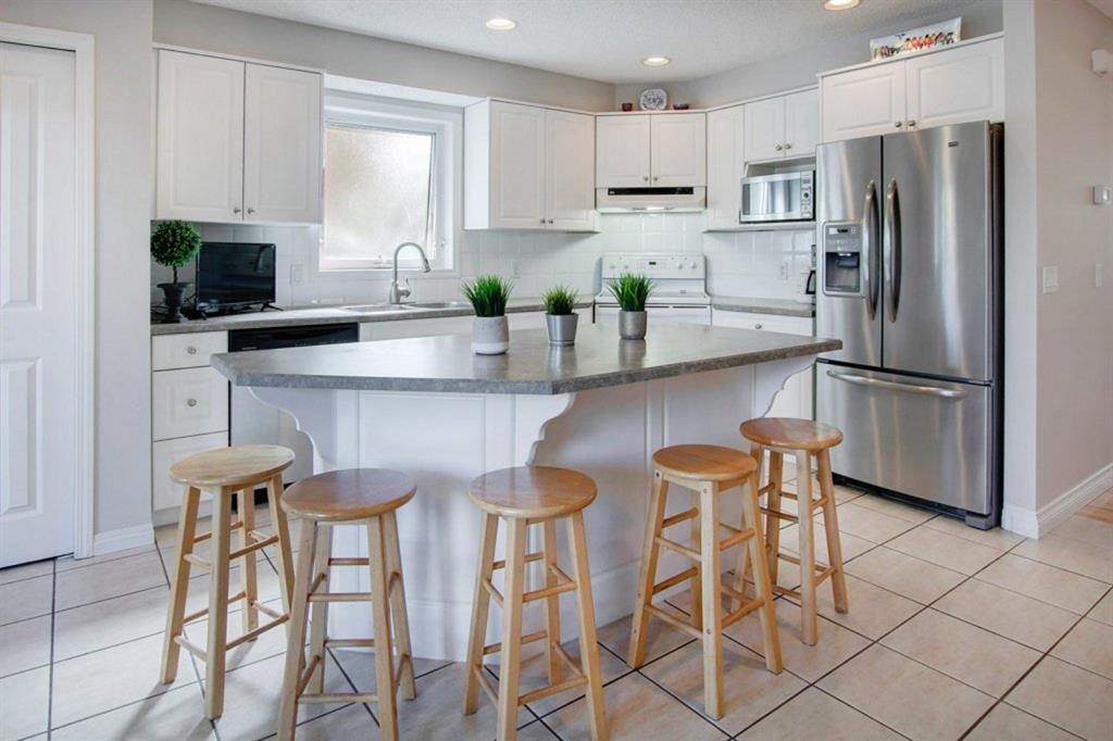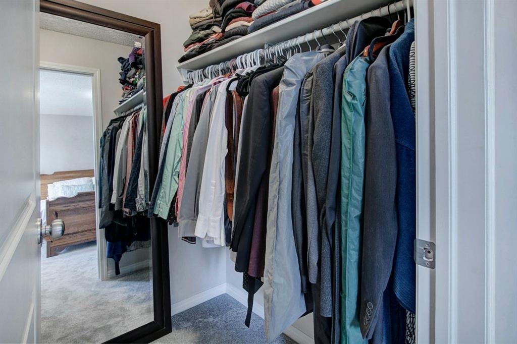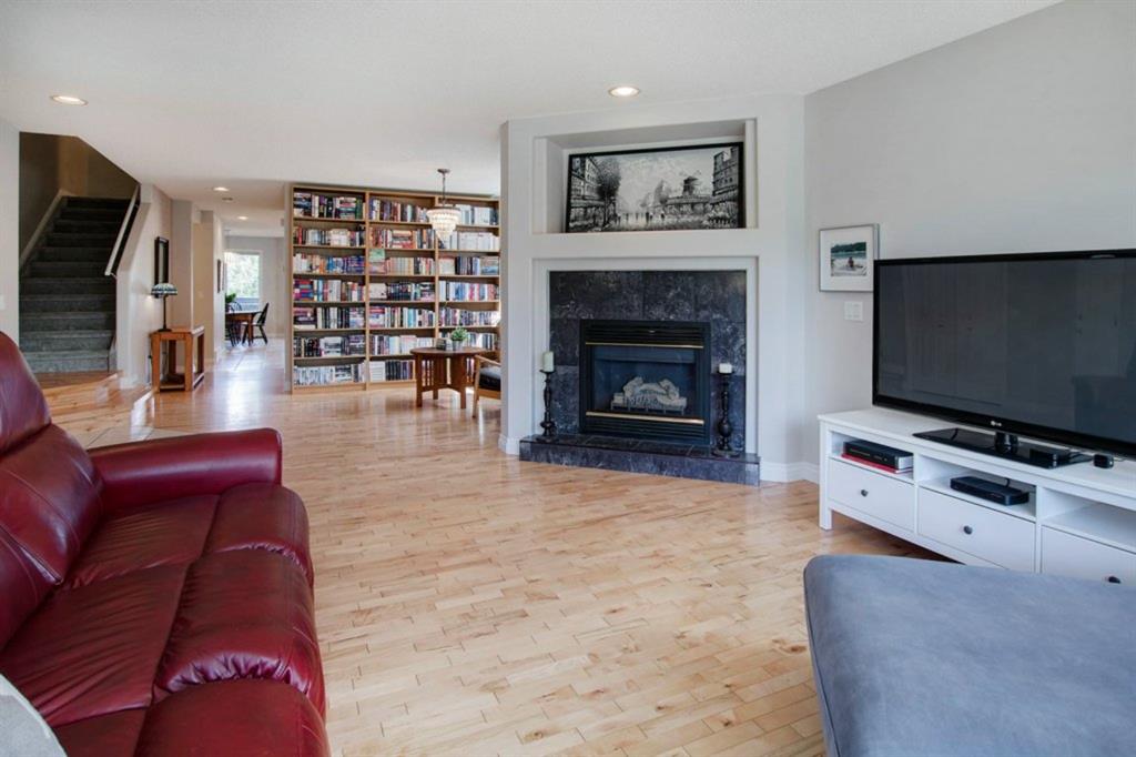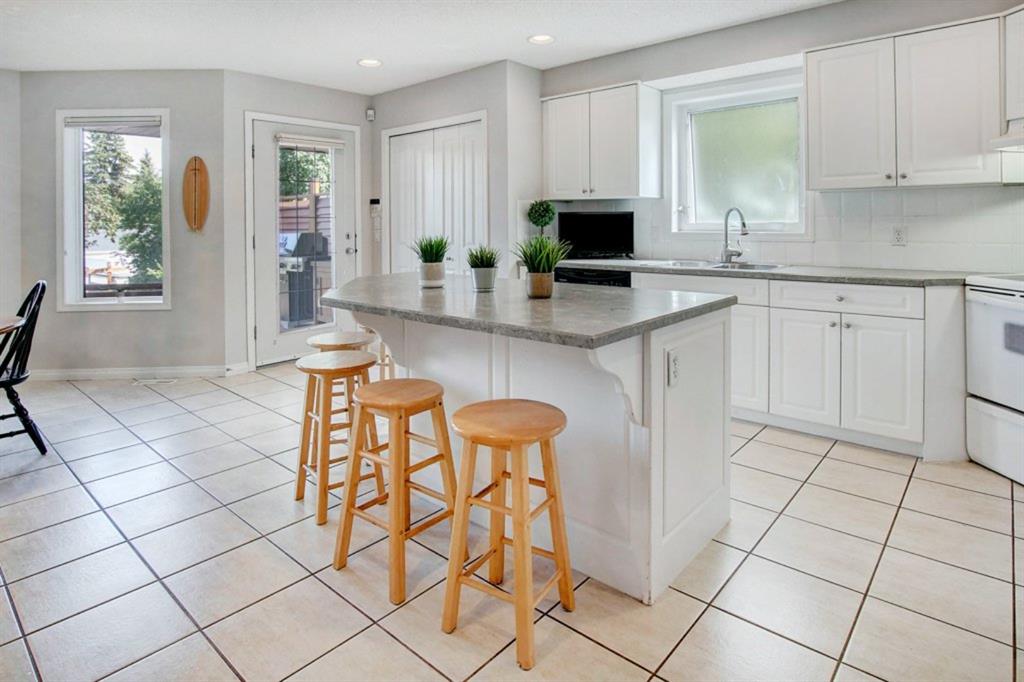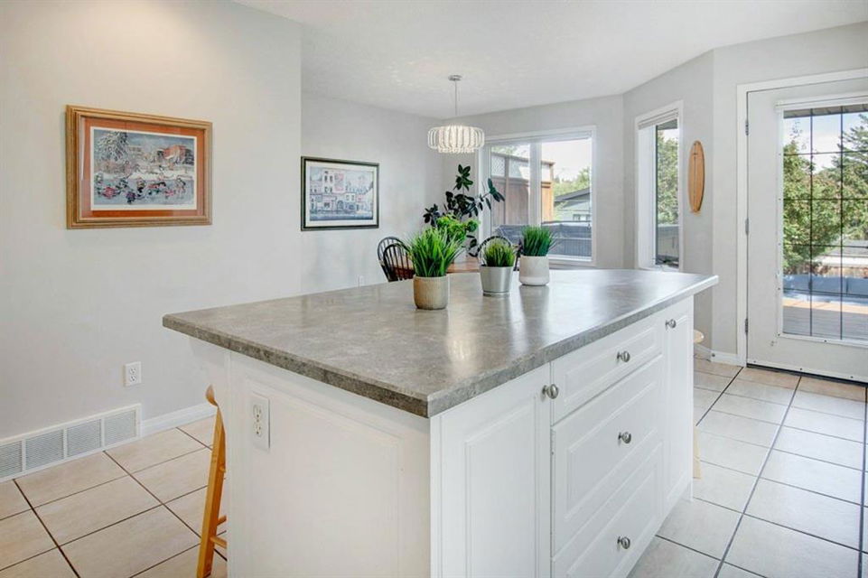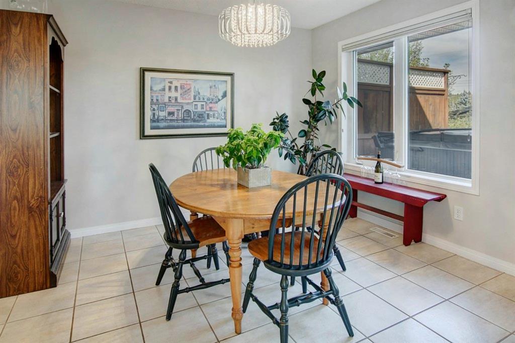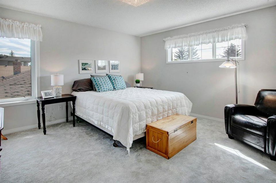 This extremely well kept home is located on a great street on an extra deep 172 foot lot which gives you an amazing large yard far bigger than most infills! Updates over the past few years including brand new carpet just installed throughout the upper level and stairs, shingles on the garage just replaced, shingles on the house replaced in 2019, several updated light fixtures, addition of Hunter Douglas blinds and interior painting throughout in 2017. The main floor offers a bright and spacious living room with 3 large west-facing windows, hardwood flooring and a cozy gas fireplace. The living room opens onto a den/office ( which could be used as a formal dining room). A half bathroom is also on the main level along with a sizable pantry/storage room that has laundry hook ups available should you want a main floor laundry room. The upper level with brand new carpet offers a lovely master bedroom with a walk-in closet and ensuite, a second spacious bedroom (large enough for a king size bed) with a walk-in closet, plus a second 4 piece bathroom. The unfinished basement is framed for future development (bedroom, bathroom, family room) and currently has a laundry area, plenty of storage space and utility room (furnace and ducts just cleaned). The private yard is stunning with 3 different decks to capture sun and shade at different times of the day, and features a hot tub, lots of mature trees/plants, and a detached double garage (23’3″ x 19’4″). Close to Bowness Park, Bowmont Park, the Bow River, Main Street Bowness and schools. Easy access to major roads and quick access out to the mountains.