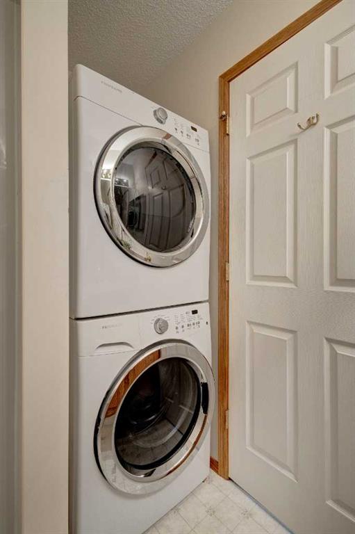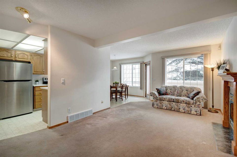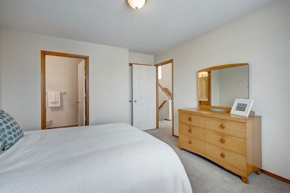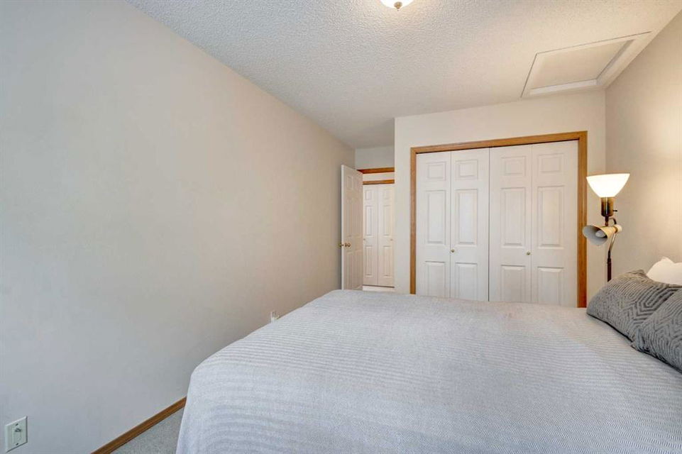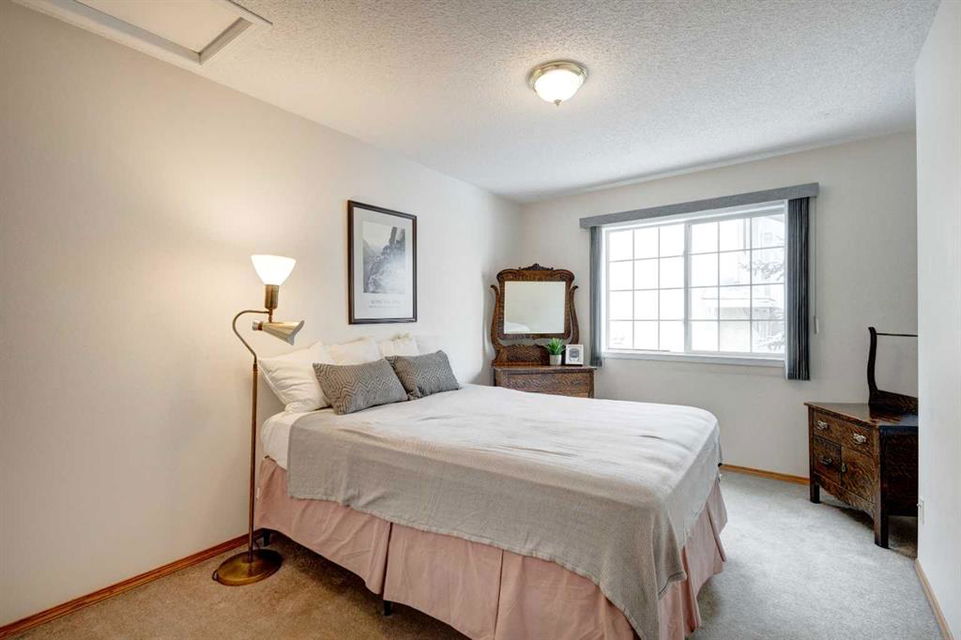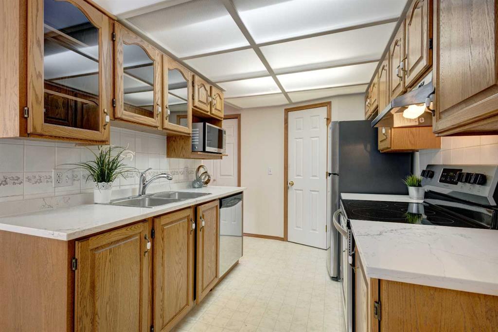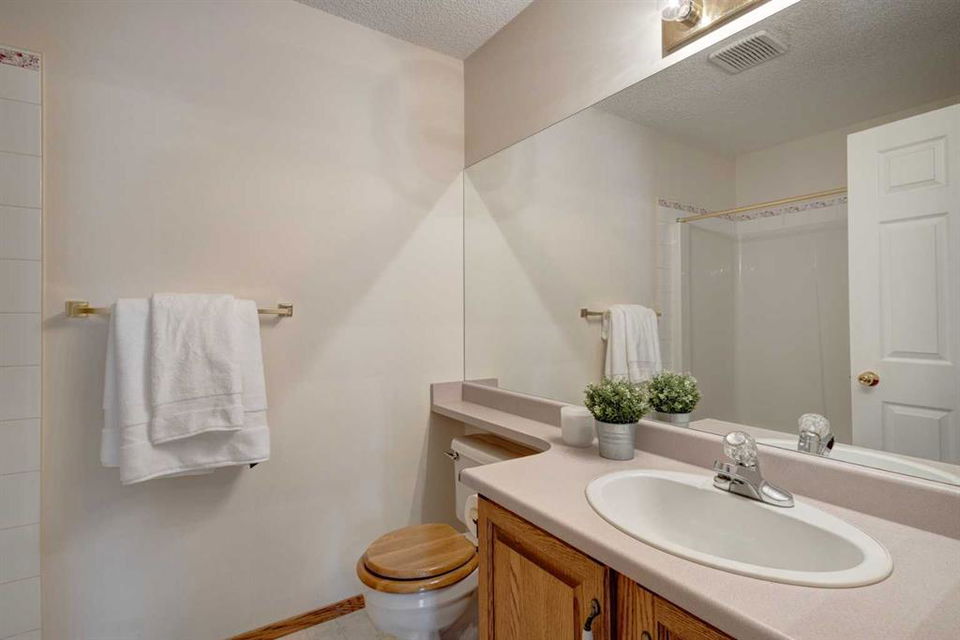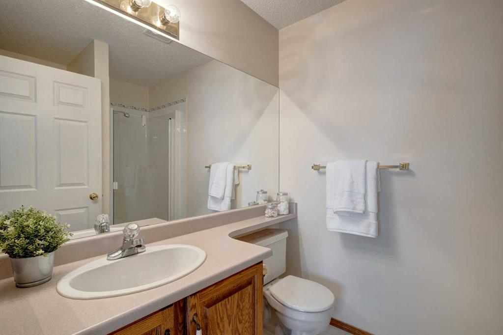 Bright and spacious end unit 2 bedroom, 2 bathroom duplex style condo with single attached garage, south facing patio, and basement living space. Spacious main level with a large living room featuring a gas fireplace and south facing window looking out at trees, good sized kitchen with newer stainless steel appliances, quartz countertops and a pantry, and dining nook with south facing windows and access to the patio. The next level up half a flight of stairs you will find the primary bedroom with a walk-in closet and a full ensuite bathroom which includes a walk-in shower and the stacked newer washer and dryer are tucked away behind the bathroom door. The next half level up is the top level with a spacious, bright flex room with windows and skylight, 2nd bedroom, and the 2nd full bathroom with a tub/shower combo. The basement is partially finished and has a rec room, workshop, roughed-in 3 piece bathroom, utility room with storage shelves built-in, and under the stair storage area. Hot water tank replaced in 2020. Great single attached garage that is large enough to fit a truck and full driveway in front of garage for extra parking. Well run complex located close to a grocery store, restaurants, parks and schools. Great access in and out of the community although tucked away in quiet location. Well maintained home that is ready for a few cosmetic updates and for a new family to move in and enjoy!