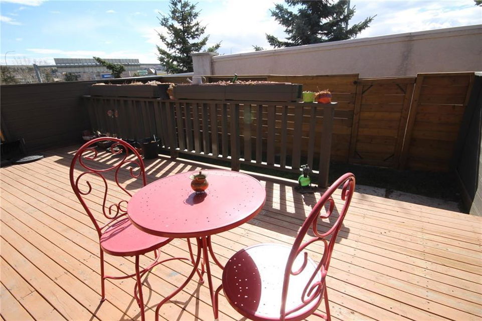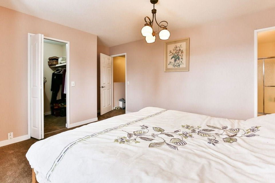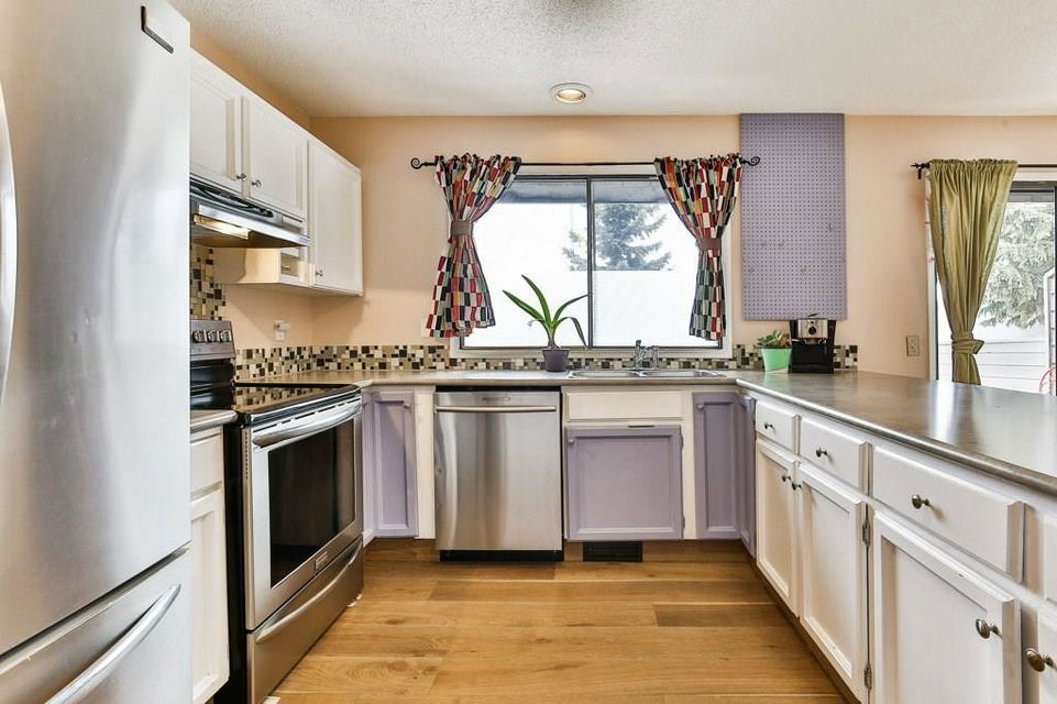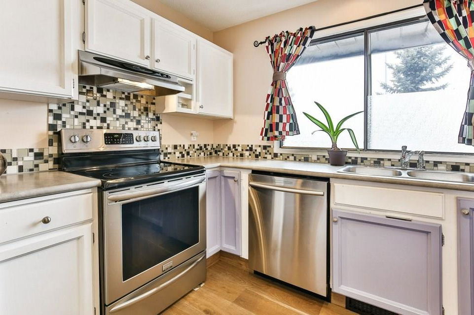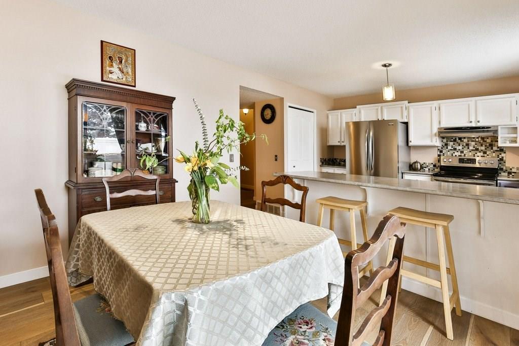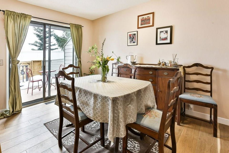 Lovely 3 bedroom end unit townhouse with fully fenced yard. Many updates to this home over the last 4 years including engineered hardwood on the main level & on the stairs to garage level, new carpet on upper level & stairs to upper level, baseboards, stainless steel appliances, furnace, humidifier, hot water tank & fence. Main level with kitchen & eat in dining room, leading to the patio doors out to the fenced yard with a large wood deck. Large living room, den & half bathroom also on main level. Upper level with 3 bedrooms including master with full ensuite & walk-in closet. 2nd full bathroom on upper level as well as a laundry room all with newer carpet & baseboards. Ceramic tile floor in both upper level bathrooms. Garage/main entrance level with a large foyer, a gym/office & a storage room. Single attached garage with room for storage. Well cared for complex in a great location with low condo fees & nearby visitor parking.