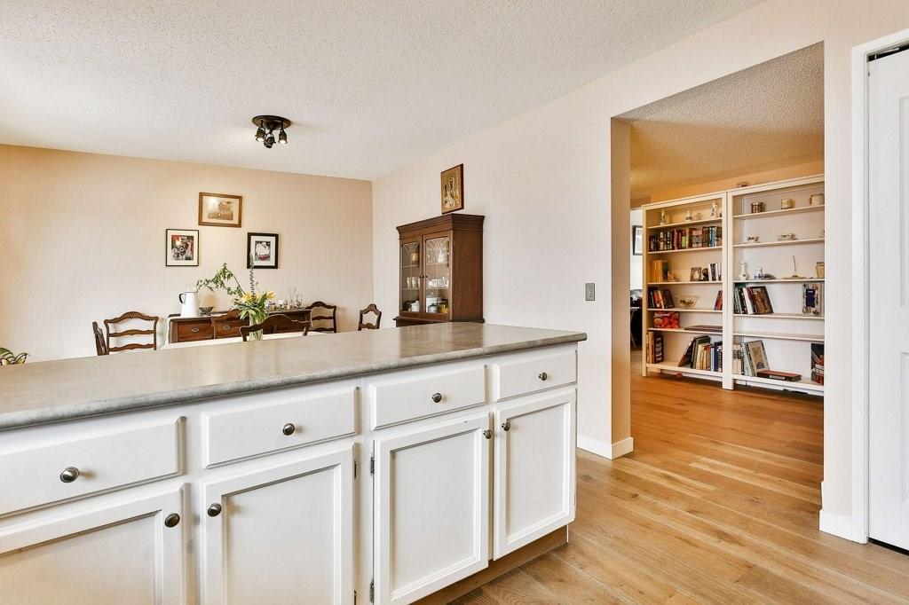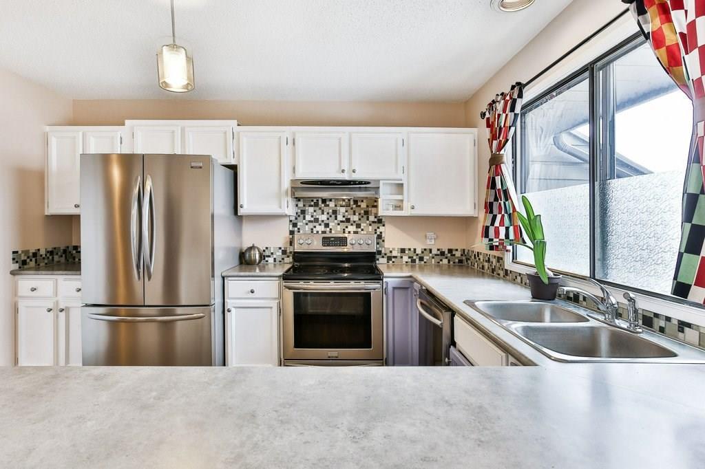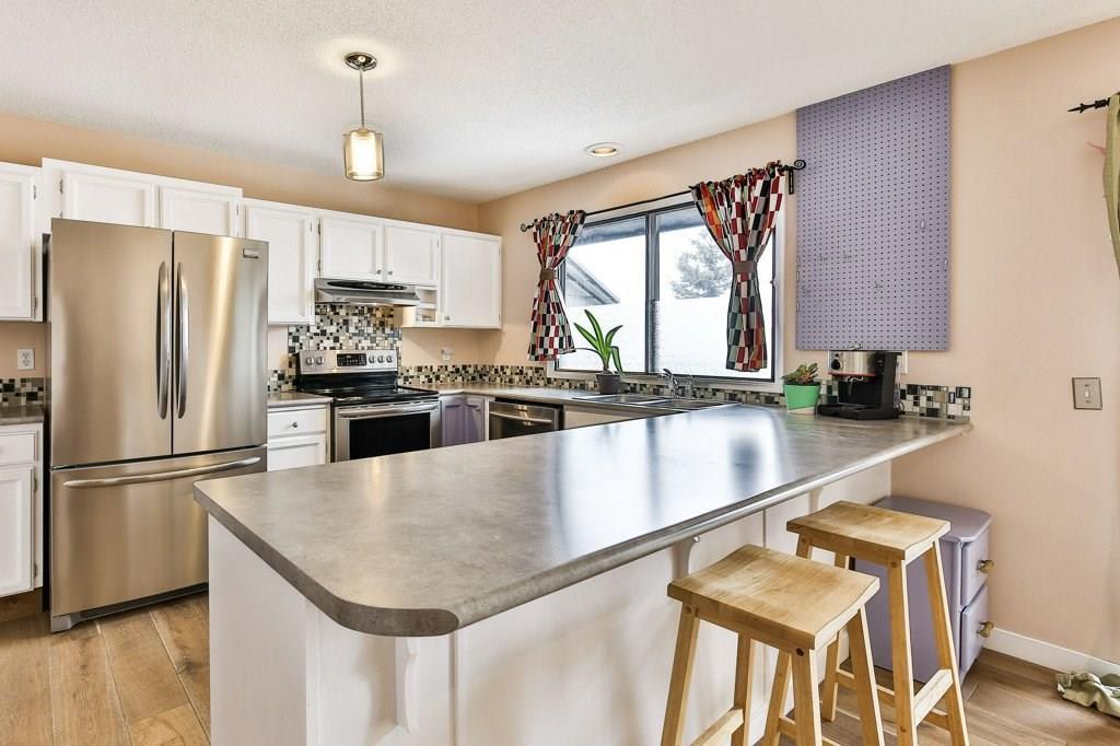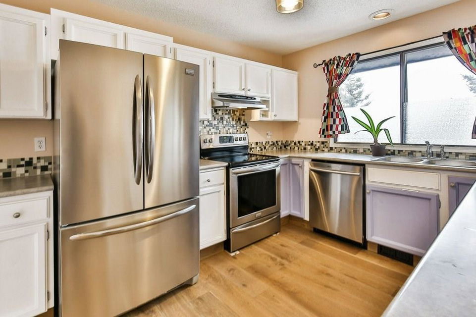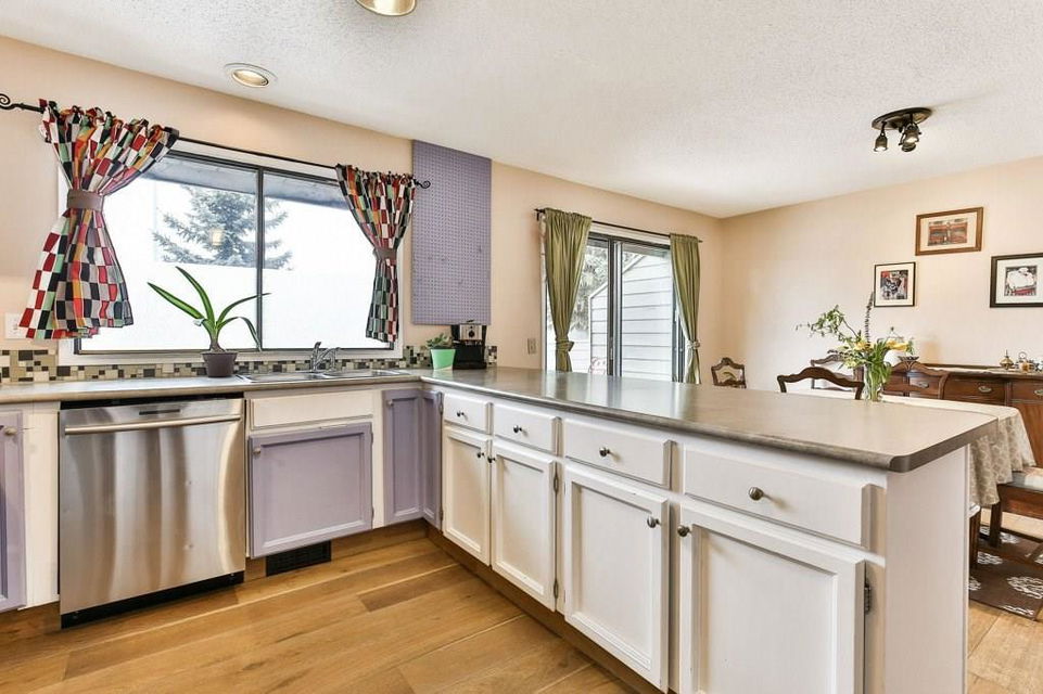 Lovely 3 bedroom end unit townhouse with fully fenced yard. Many updates to this home over the last 4 years including engineered hardwood on the main level & on the stairs to garage level, new carpet on upper level & stairs to upper level, baseboards, stainless steel appliances, furnace, humidifier, hot water tank & fence. Main level with kitchen & eat in dining room, leading to the patio doors out to the fenced yard with a large wood deck. Large living room, den & half bathroom also on main level. Upper level with 3 bedrooms including master with full ensuite & walk-in closet. 2nd full bathroom on upper level as well as a laundry room all with newer carpet & baseboards. Ceramic tile floor in both upper level bathrooms. Garage/main entrance level with a large foyer, a gym/office & a storage room. Single attached garage with room for storage. Well cared for complex in a great location with low condo fees & nearby visitor parking.