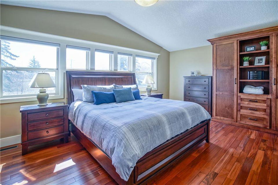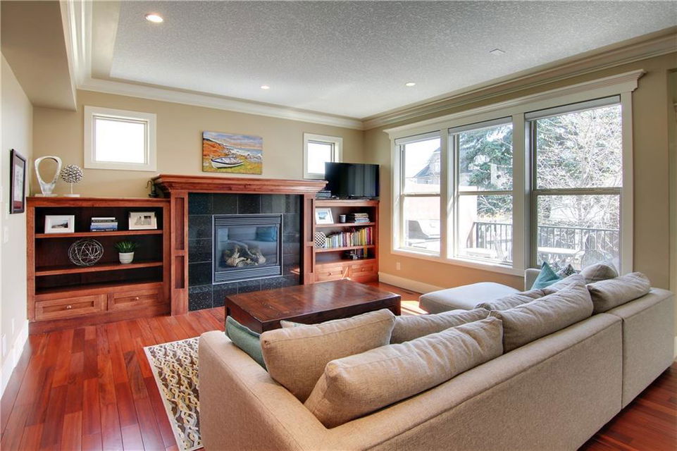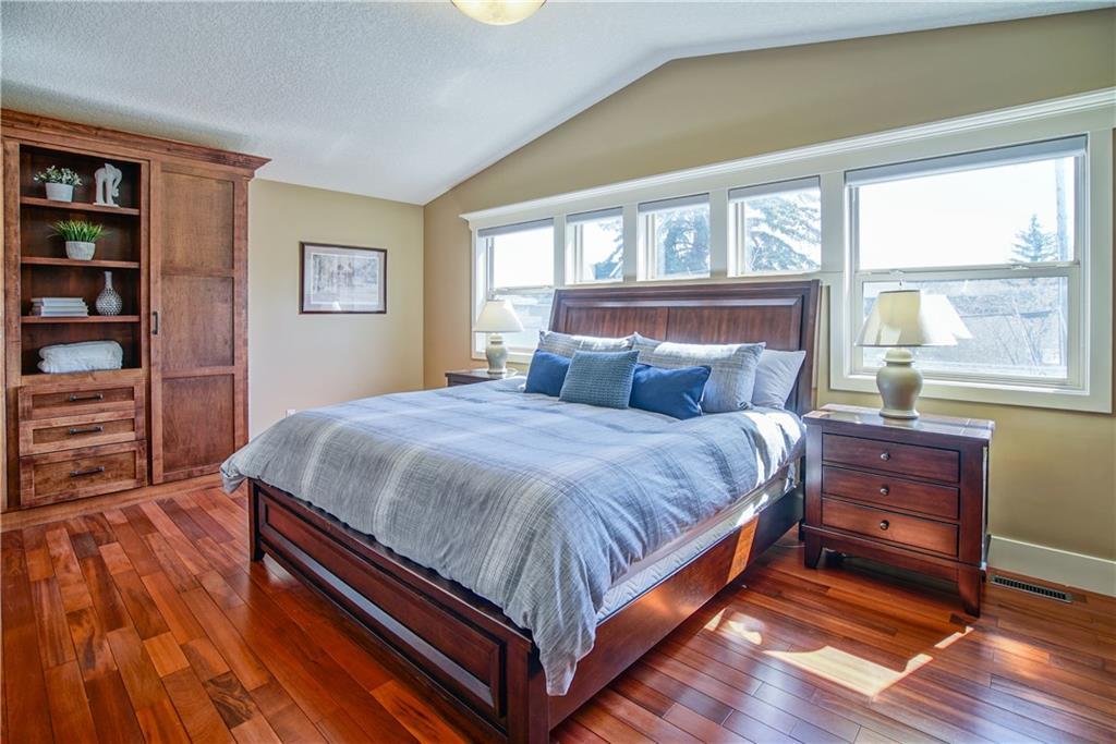 Beautiful family home located in popular Parkdale, close to the Bow River & parks. Bright & open main floor including the spacious kitchen with granite countertops, stainless steel appliances, corner pantry & under cabinet lighting. Kitchen opens onto living room with gas fireplace & built-in cabinetry. Lovely front room can be used as a dining room or office, large windows & french doors allow plenty of light in. Hardwood flooring throughout main level, on the curved staircase, upper hallway & master bedroom. Upper level features 3 bedrooms including a spacious master with tonnes of natural light, vaulted ceilings, built-in cabinetry wardrobes & a large ensuite with steam shower, separate tub & in-floor heat. 2 more bedrooms, a bathroom & laundry room complete the upper level. Fully finished basement with a large family room featuring built-in cabinetry, a bedroom, bathroom & storage room. Roughed-in in-floor heat in basement. Fully fenced yard with deck and double garage.