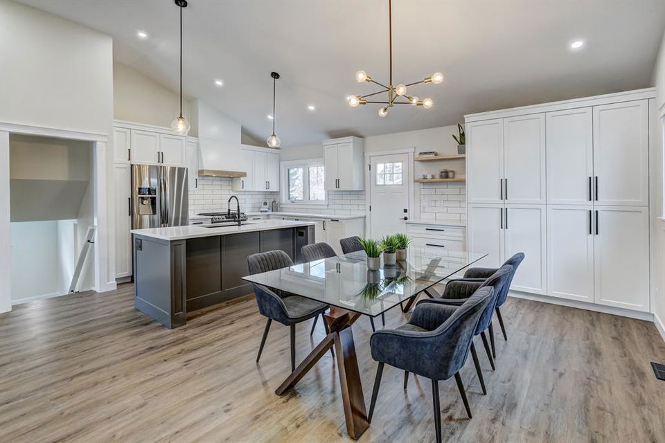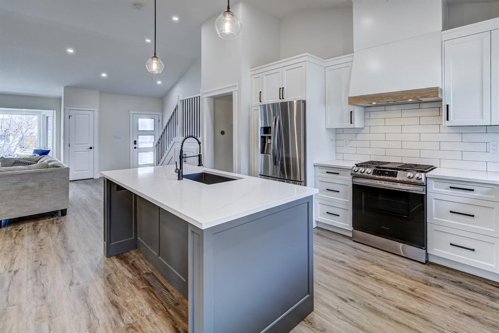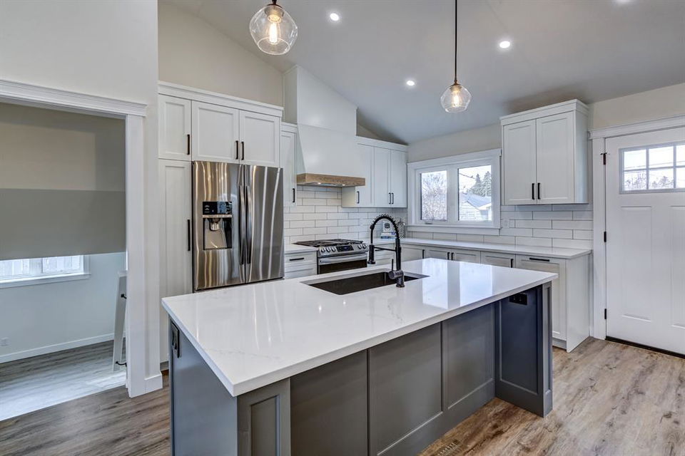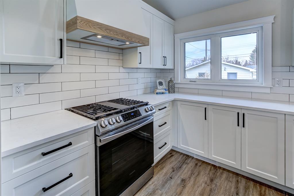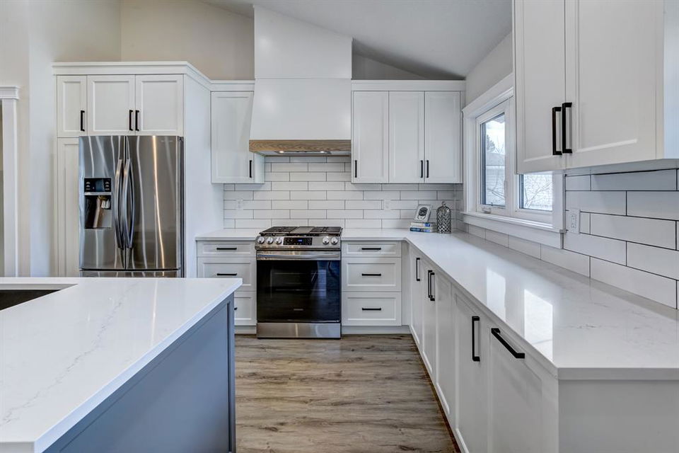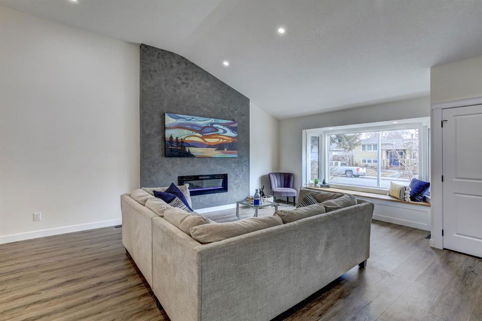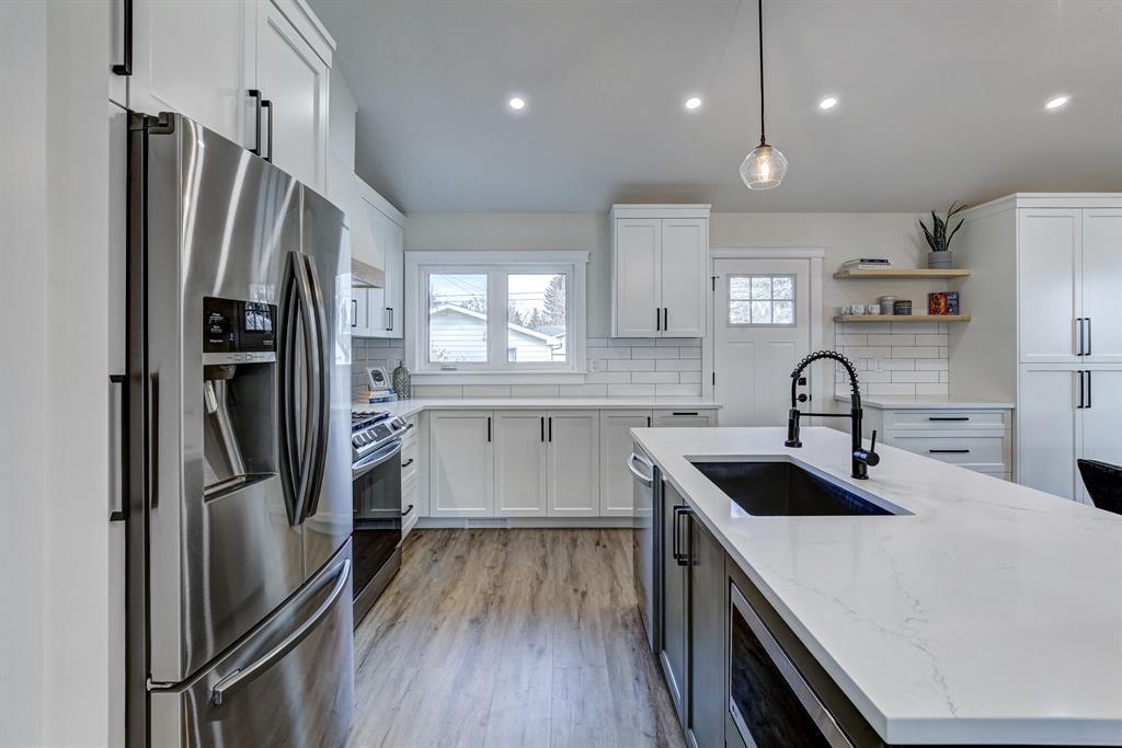 Located on a quiet street, on an oversized 6845 sq ft west facing lot, you will find this professionally renovated, stunning and bright family home. Offering 1985 sq ft of developed space, the quality of this renovation is EXCEPTIONAL. Brand new custom kitchen and bathrooms, high quality vinyl plank flooring, triple pane windows, hot water on demand, new lighting and wiring throughout, new doors and trim, new soffits, fascia and eaves, and house roof shingles (2021). Entering the main level of the home you will be amazed by the massive vaulted ceilings, lovely open layout, abundance of windows, and modern finishes. Custom kitchen with high quality cabinetry, quartz countertops, stainless steel appliances including a gas range and a custom range hood. The dining area can accommodate a large table for gatherings and has more built-in custom cabinetry. Spacious living room with a focal point custom Venetian Clay inspired wall and electric fireplace, and also featuring a window seat and large east facing windows – the perfect spot to enjoy your morning coffee. The upper level offers two sizeable bedrooms, both with a wall of built-in cabinetry. The primary bedroom ensuite offers a custom tiled shower with quartz bench and glass door and wall, double sinks, quartz countertop, and custom cabinetry. The second full bathroom on this level offers a tub/shower combo and the same high quality cabinetry that can be found throughout the home. The fully developed lower level offers the third bedroom, third full bathroom, laundry room with new washer and dryer and cabinetry, and a flex space perfect for a family room, office or play room. Huge crawl space accessed from the third level is where the utilities are located and where you will find plenty of storage space. Newer electrical panel and furnace. Detached double garage with new shingles (2020) and brand new fascia and eavestroughs. The huge west facing yard is fenced and large enough to accommodate RV parking while still having a large yard. Desirable location with easy access in and out of the community and walking distance to schools, parks, and the Glenmore Reservoir pathway system. This is not your average renovation, check it out today to see the thoughtful attention to detail that went into this beautiful home. Full list of renovations available in the supplements and at the property.