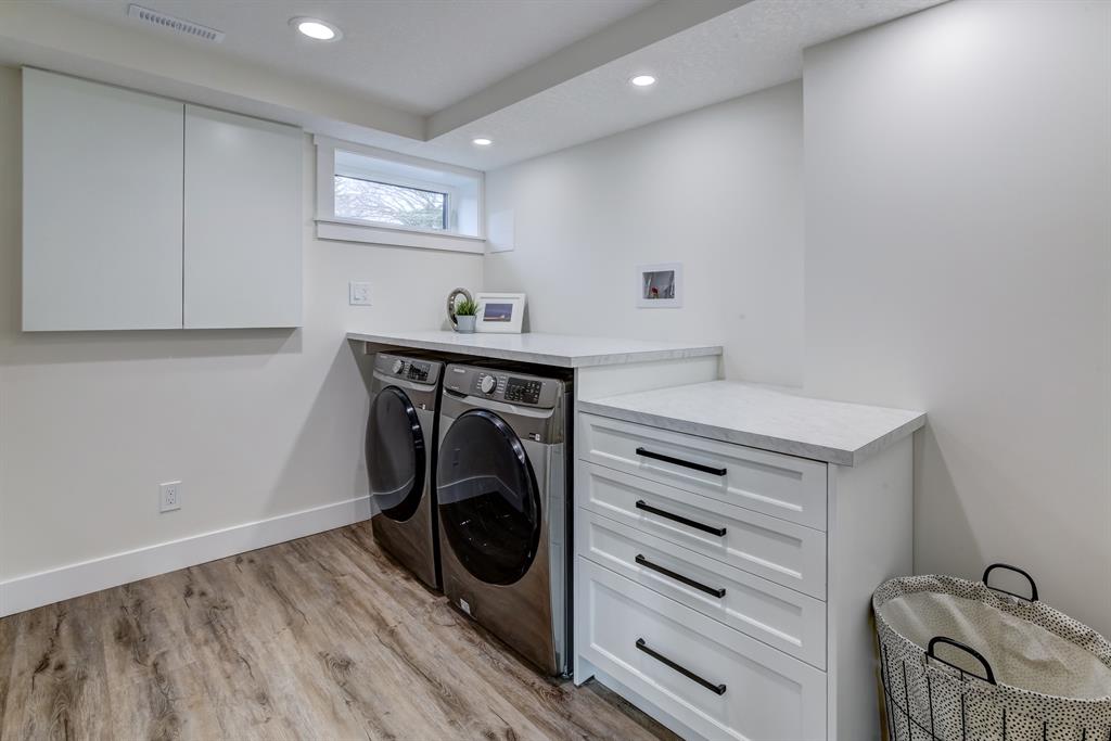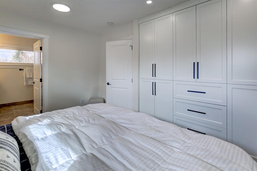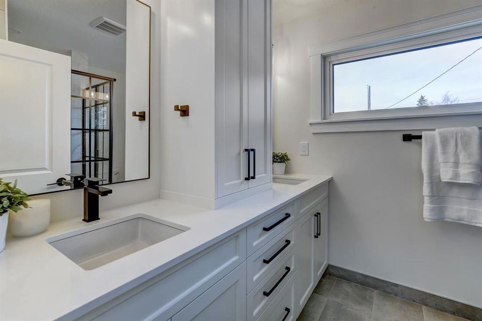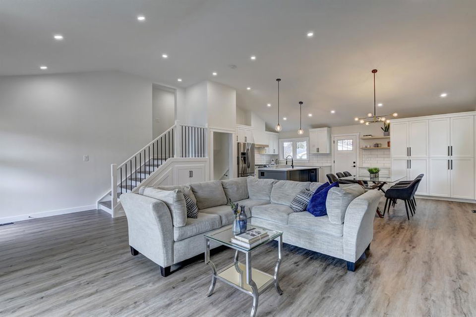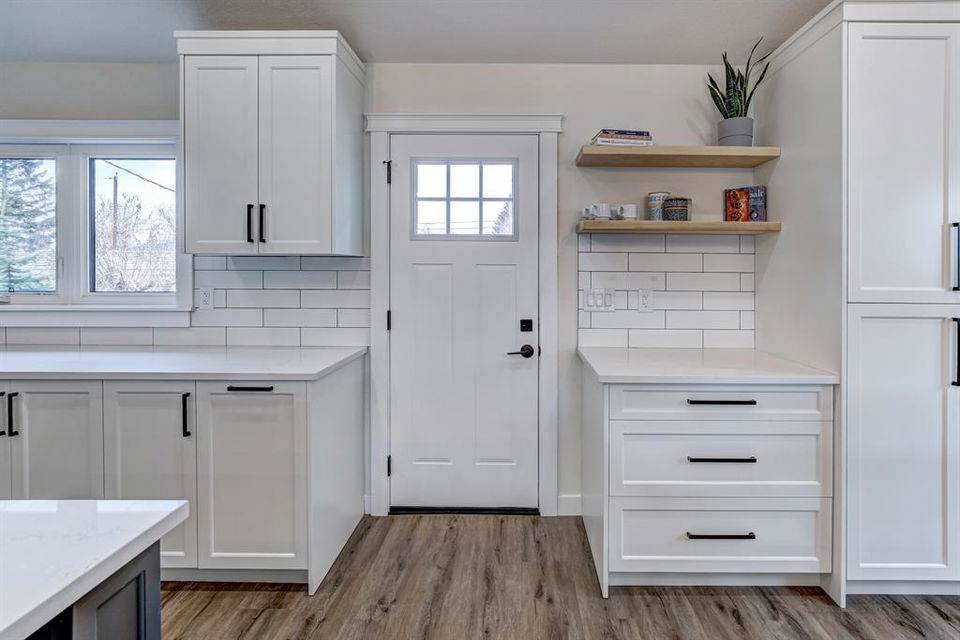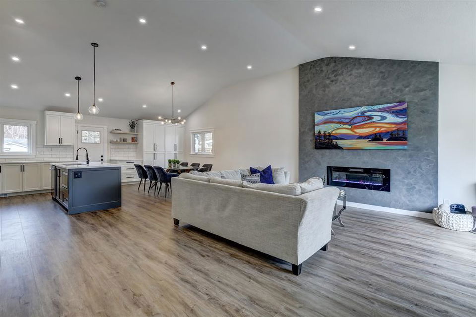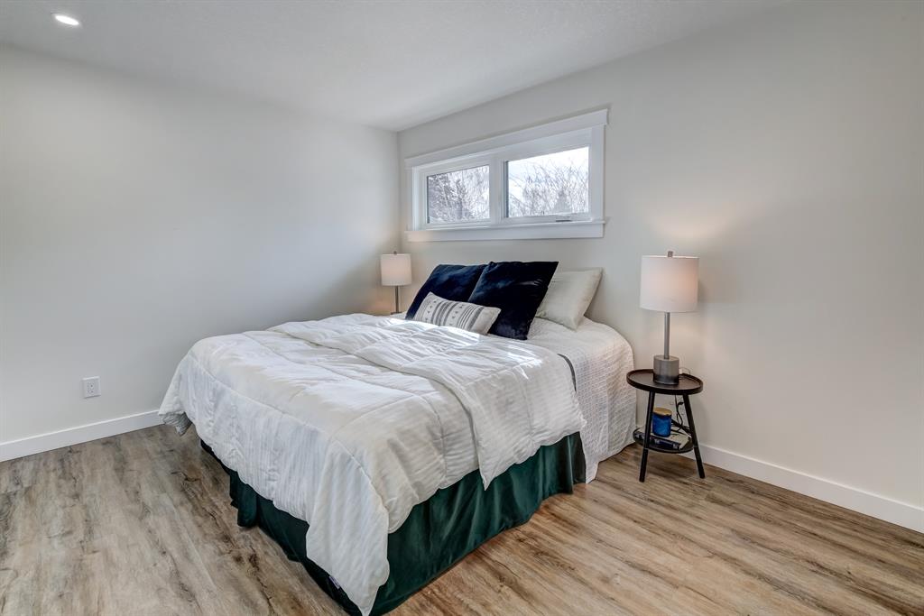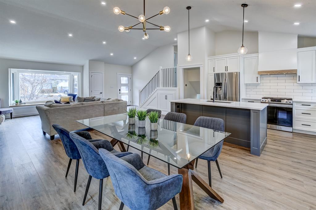 Located on a quiet street, on an oversized 6845 sq ft west facing lot, you will find this professionally renovated, stunning and bright family home. Offering 1985 sq ft of developed space, the quality of this renovation is EXCEPTIONAL. Brand new custom kitchen and bathrooms, high quality vinyl plank flooring, triple pane windows, hot water on demand, new lighting and wiring throughout, new doors and trim, new soffits, fascia and eaves, and house roof shingles (2021). Entering the main level of the home you will be amazed by the massive vaulted ceilings, lovely open layout, abundance of windows, and modern finishes. Custom kitchen with high quality cabinetry, quartz countertops, stainless steel appliances including a gas range and a custom range hood. The dining area can accommodate a large table for gatherings and has more built-in custom cabinetry. Spacious living room with a focal point custom Venetian Clay inspired wall and electric fireplace, and also featuring a window seat and large east facing windows – the perfect spot to enjoy your morning coffee. The upper level offers two sizeable bedrooms, both with a wall of built-in cabinetry. The primary bedroom ensuite offers a custom tiled shower with quartz bench and glass door and wall, double sinks, quartz countertop, and custom cabinetry. The second full bathroom on this level offers a tub/shower combo and the same high quality cabinetry that can be found throughout the home. The fully developed lower level offers the third bedroom, third full bathroom, laundry room with new washer and dryer and cabinetry, and a flex space perfect for a family room, office or play room. Huge crawl space accessed from the third level is where the utilities are located and where you will find plenty of storage space. Newer electrical panel and furnace. Detached double garage with new shingles (2020) and brand new fascia and eavestroughs. The huge west facing yard is fenced and large enough to accommodate RV parking while still having a large yard. Desirable location with easy access in and out of the community and walking distance to schools, parks, and the Glenmore Reservoir pathway system. This is not your average renovation, check it out today to see the thoughtful attention to detail that went into this beautiful home. Full list of renovations available in the supplements and at the property.