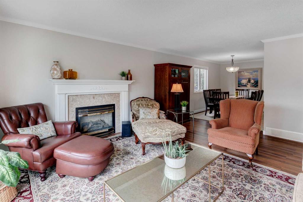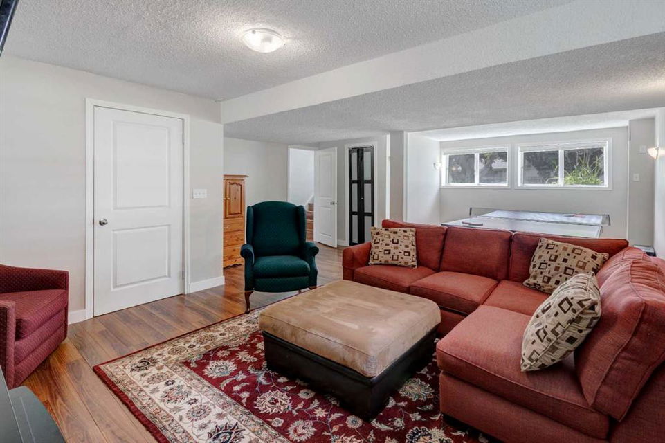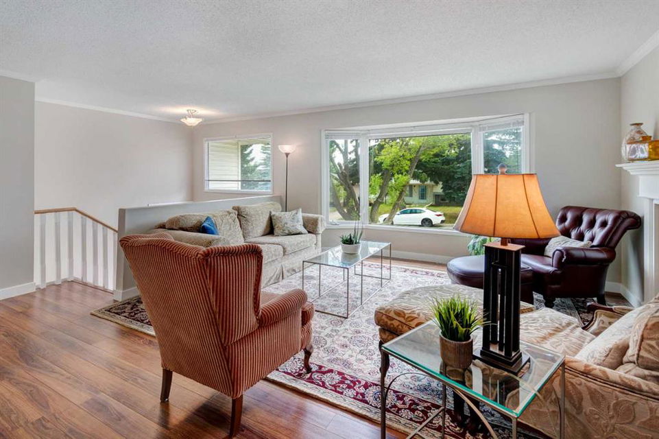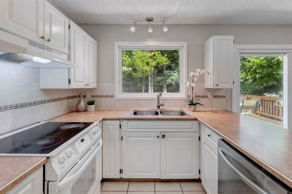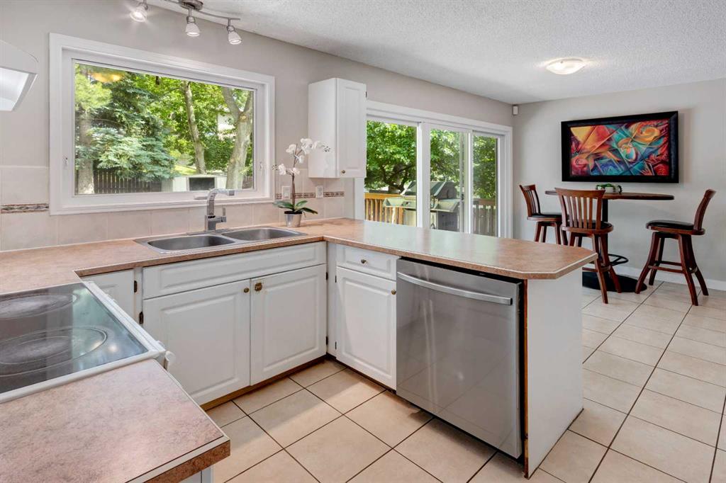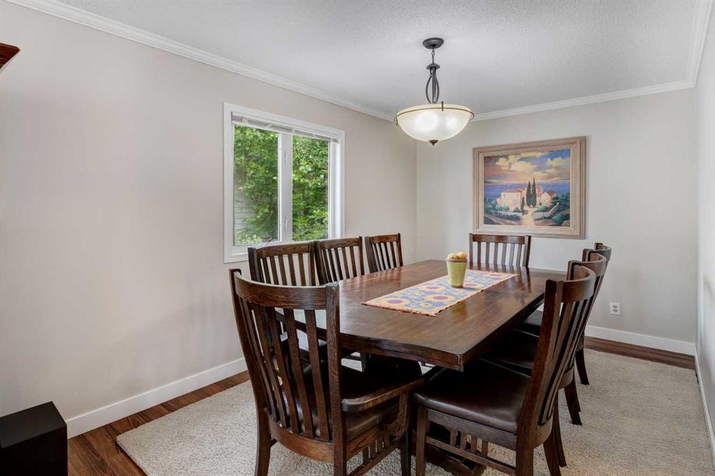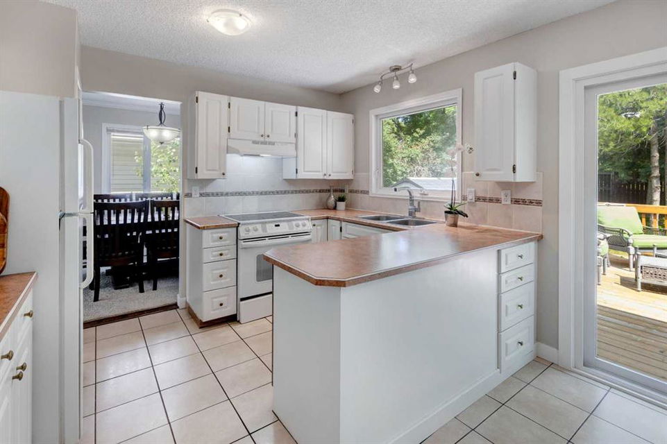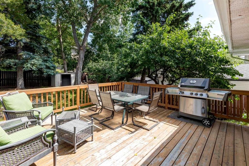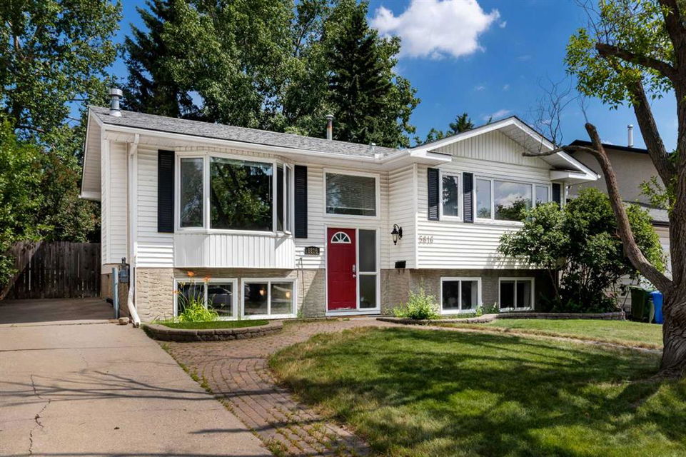 Located on a beautiful, quiet street, this spacious family home features 5 bedrooms, 2.5 bathrooms and an oversized, private east-facing yard that backs onto a walking path. This well laid out home features several updates such as windows and doors over time including the triple paned sliding patio door that was replaced in 2020, new hot water tank (2019), and new interior neutral paint throughout including walls, ceilings, trim, and doors (2019). On the main level you will find the bright living room with a gas fireplace, laminate flooring and large west-facing windows. The dining room which easily fits a table for 8 people, is situated between the living room and kitchen. The functional kitchen looks out at the yard and has plenty of cabinetry and countertop space, a pantry, a double sink, and opens onto the dining nook with doors leading to the deck and yard. There is a 4 piece bathroom and 3 bedrooms on the main level including the primary bedroom with an updated 2 piece ensuite with quartz countertops. The basement is flooded with natural light with large windows throughout. The family room is large enough for a TV area and a games or play room. 2 more spacious bedrooms and a full bathroom are located in the basement, along with a laundry area and storage areas in the utility room and under the stairs. Driveway parking can accommodate several vehicles and lots of street parking available too. Expansive yard is fully fenced with a wood deck, fire pit, and 3 storage sheds. This West Dalhousie property is just steps to a parks and playgrounds, an off leash dog park, schools, and the community centre. Minutes from Dalhousie Station where there are several restaurants, a grocery store, C-Train Station and many other amenities. Do not miss out on this opportunity to call this property yours!