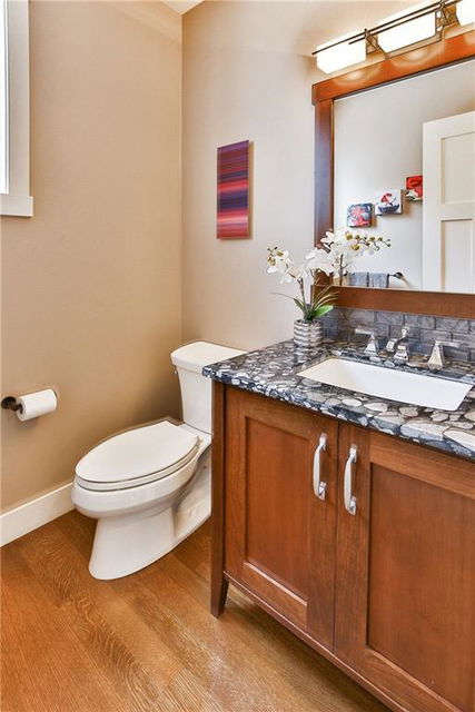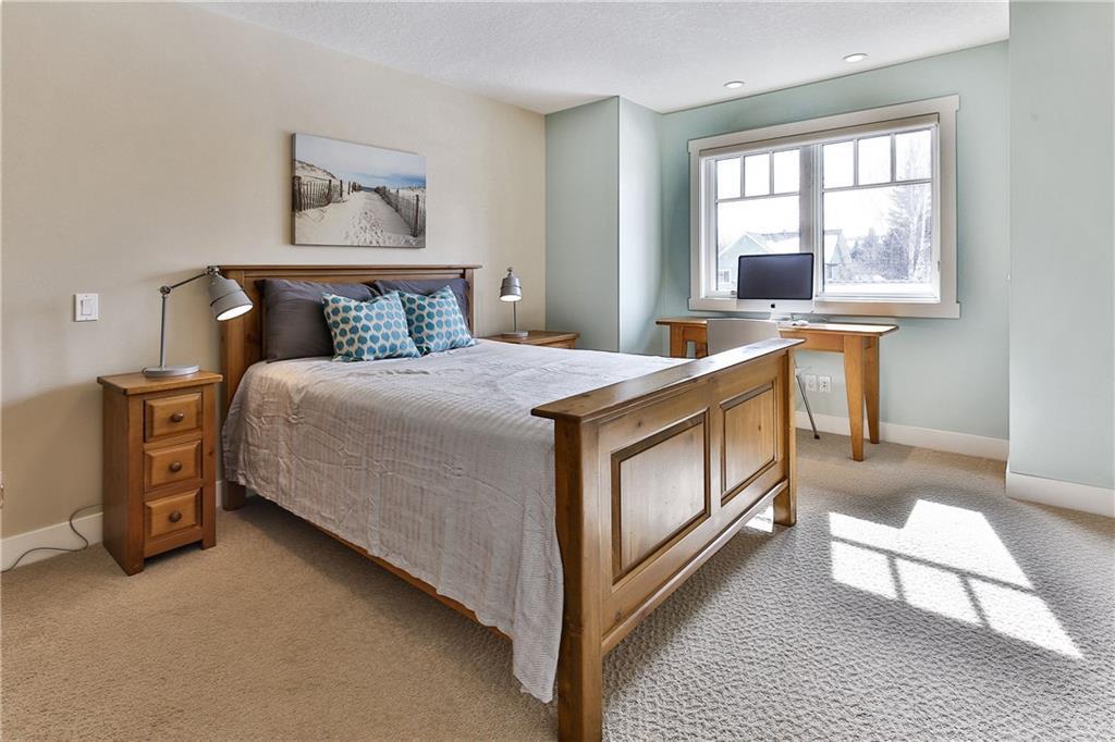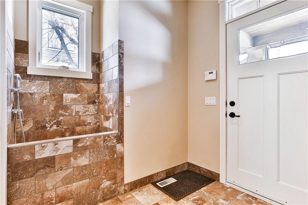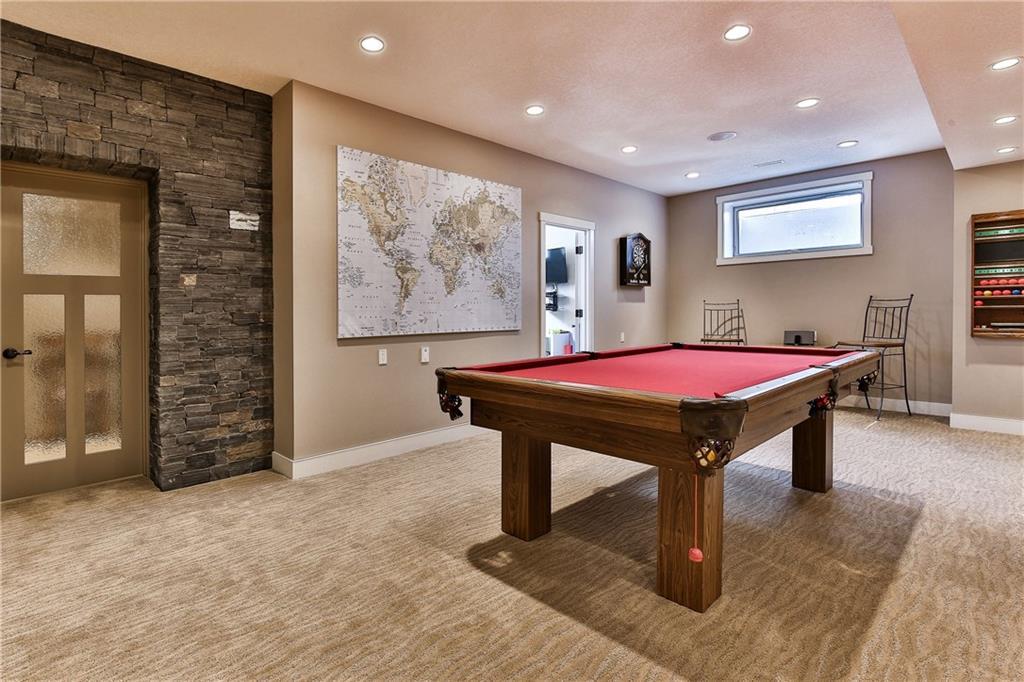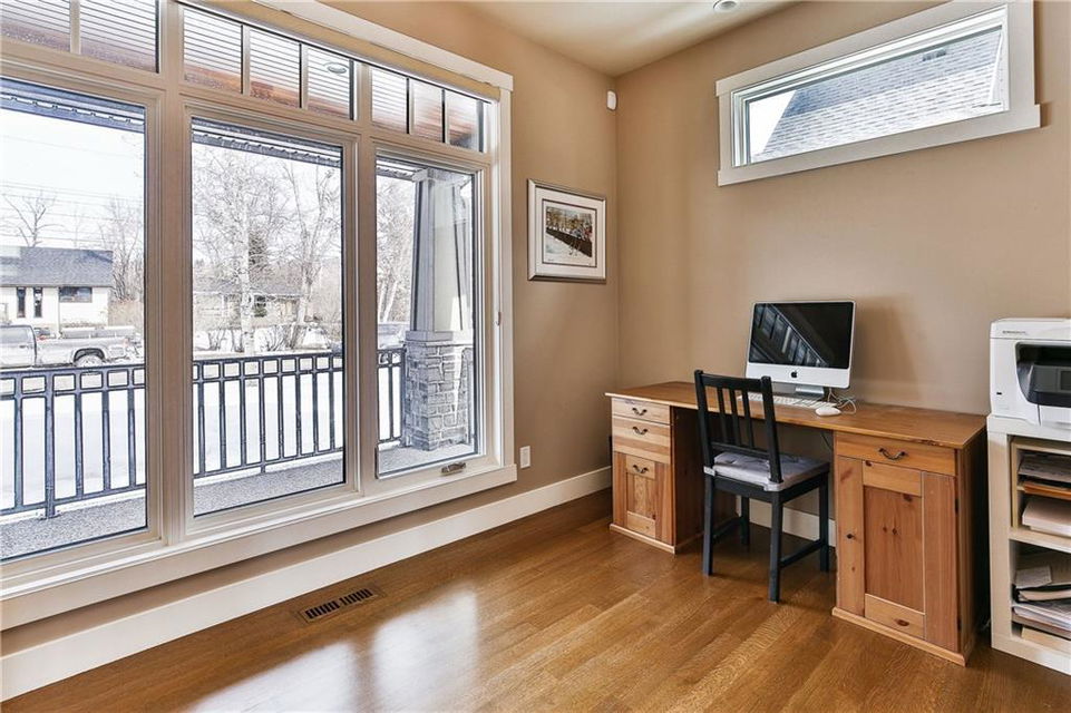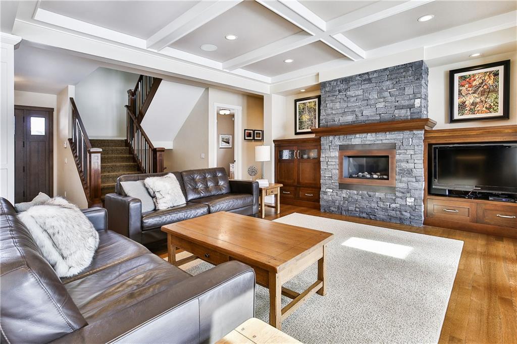 The front veranda welcomes you to this beautiful custom home on 75 ft wide lot with sunny southwest facing yard. The open main level has site finished hardwood & a stunning great room with coffered ceilings, custom built-ins & rundle rock fireplace. Spacious kitchen with custom cabinetry, massive island, granite & quartz countertops, butler’s pantry & walk-in pantry. Bright dining nook & separate dining room. Office, half bathroom, & mudroom complete the main level. Upper level has 3 spacious bedrooms including the master, which has a spa-like ensuite with custom tiled shower & large soaker tub. Full bathroom & laundry room also on upper level. The bright basement (with in-floor heat) has a family room, media room, bedroom, full bathroom, fitness room, future wine room & storage. Central A/C, triple pane metal clad windows & many more efficient upgrades. The beautiful private yard has a covered rundle rock flagstone deck with cedar soffits, built-in heater & skylights. Oversized double garage & workshop.