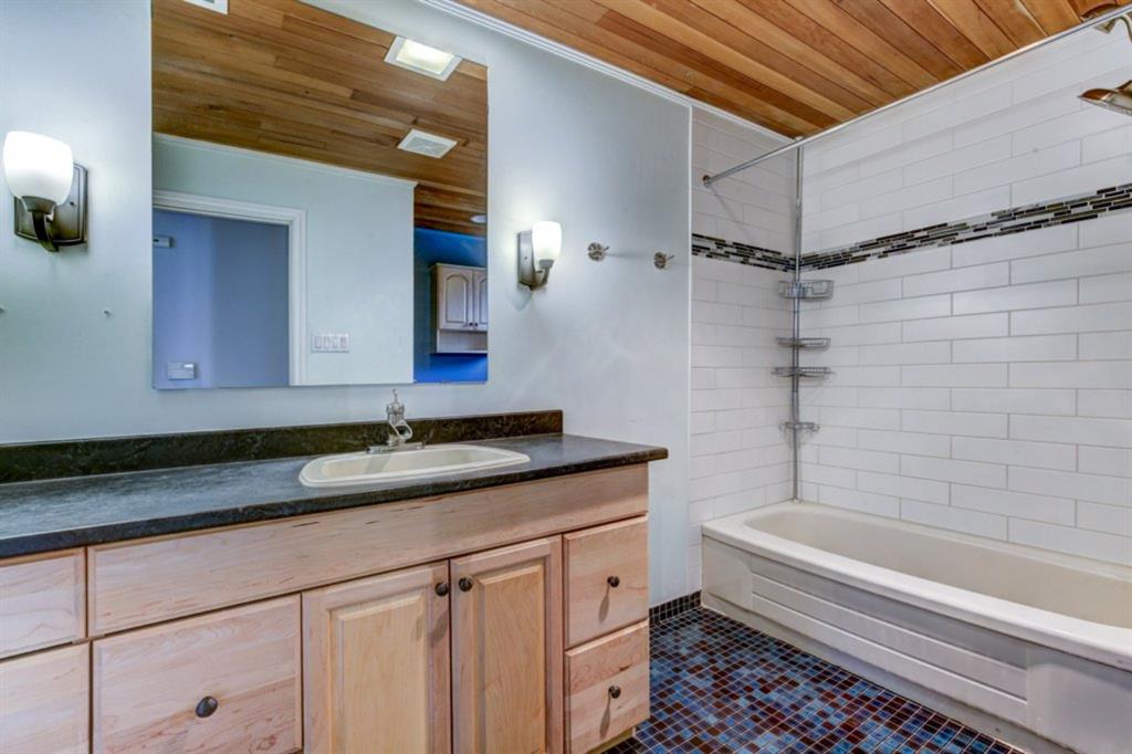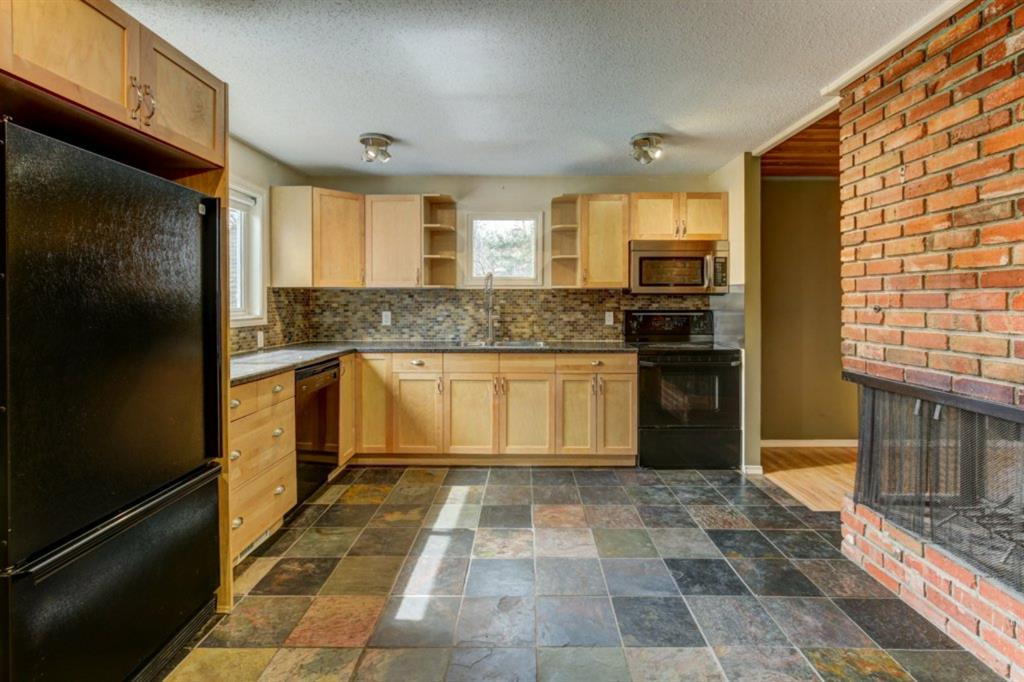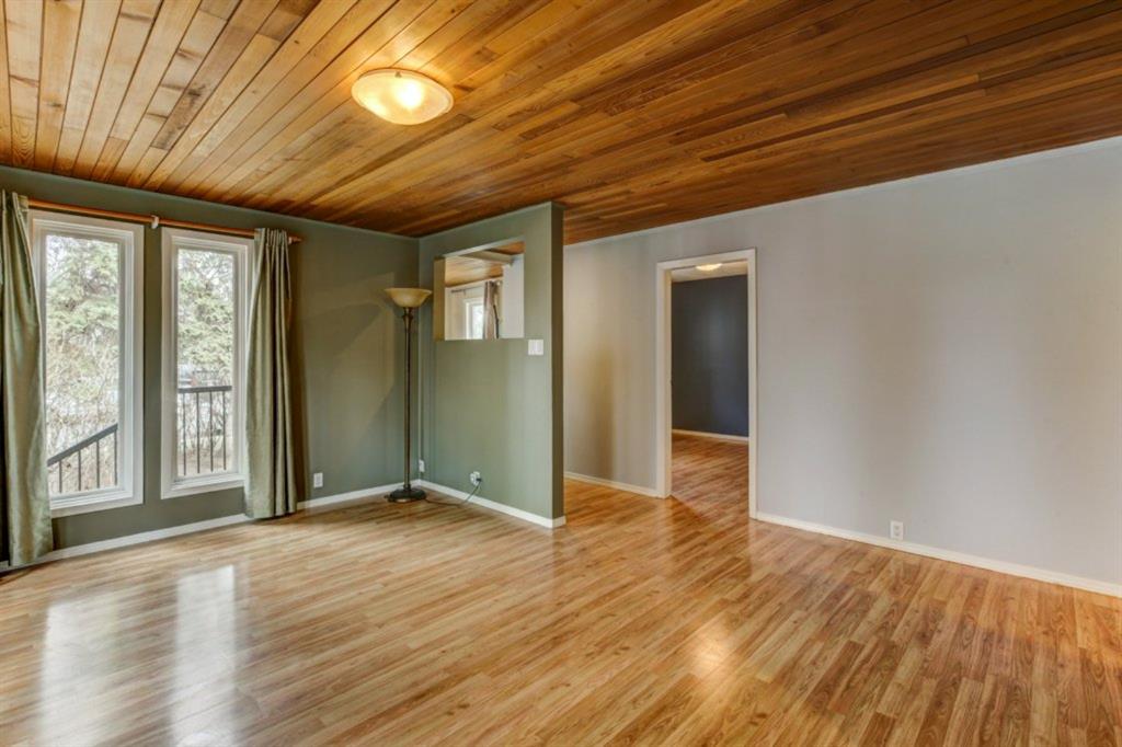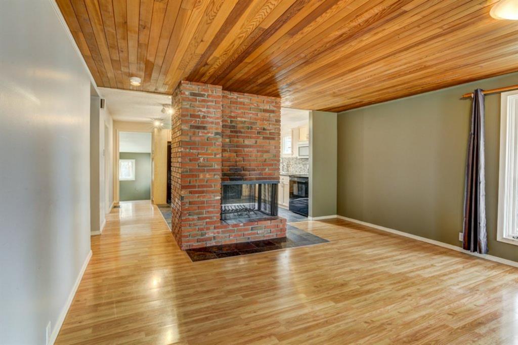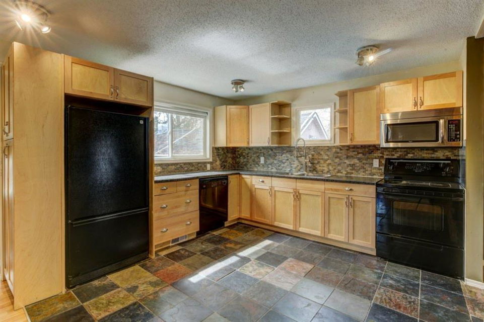 Rare Opportunity on Bow Crescent! Your chance to set down roots in a desirable location. This picturesque 8600 sq ft pie shaped lot (expanding to 82 ft. at the back) has a sunny south facing yard which is framed on three sides by mature fir trees. Fully fenced yard includes play area, dog run and plenty of room for garden beds. This lovely family bungalow has been upgraded with a kitchen renovation including maple cabinets, stone backsplash, slate flooring, and window looking out to the expansive yard (2011), new shingles (2011) and upgraded main floor bath with new marble+glass tile in tub area. Spacious living/dining room with original wood burning brick fireplace open on three sides for cozy family gatherings. Two bedrooms complete this level, which has been freshly painted in a neutral palette, move in ready! The fully refinished basement provides a bright family room with wet bar, additional bedroom, 3 piece bathroom with modern vanity, slate floors and slate shower and laundry area. Basement was refinished in 2013 with new electrical, drywall, flooring, paint, lighting, furnace and hot water tank! Front drive garage and rear alley access. Excellent Bow Crescent location, close to Shouldice Park, the Bow River bike path system and quick access to hospitals, UofC, downtown and the mountains. Enjoy inner city living with a country feel. So much more to appreciate – come have a look!
