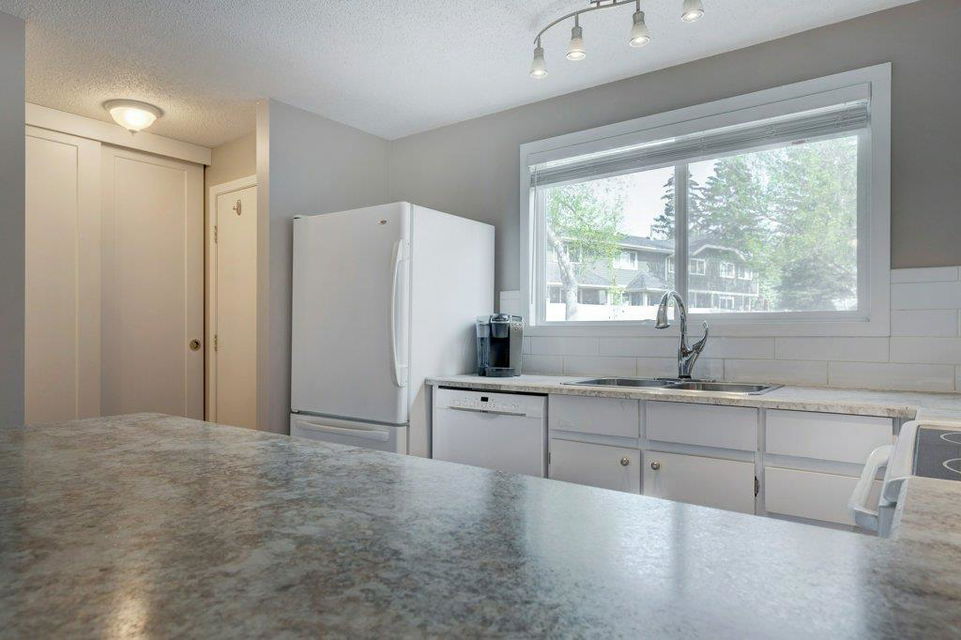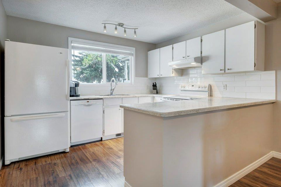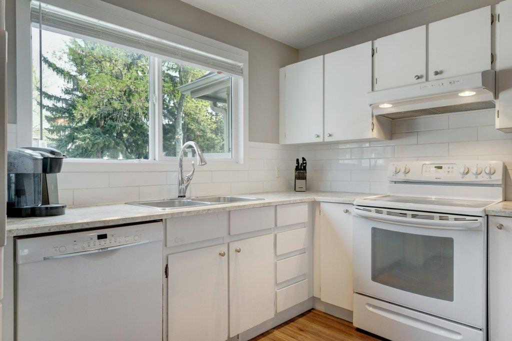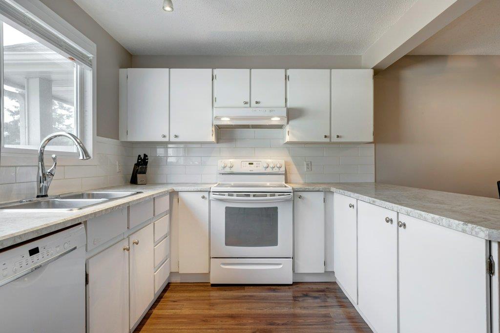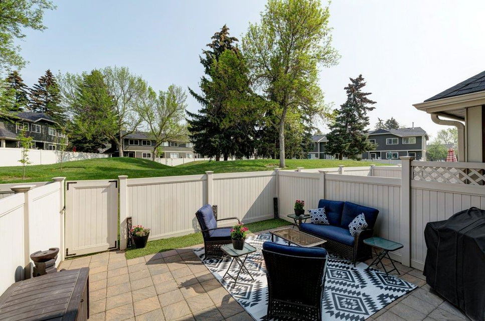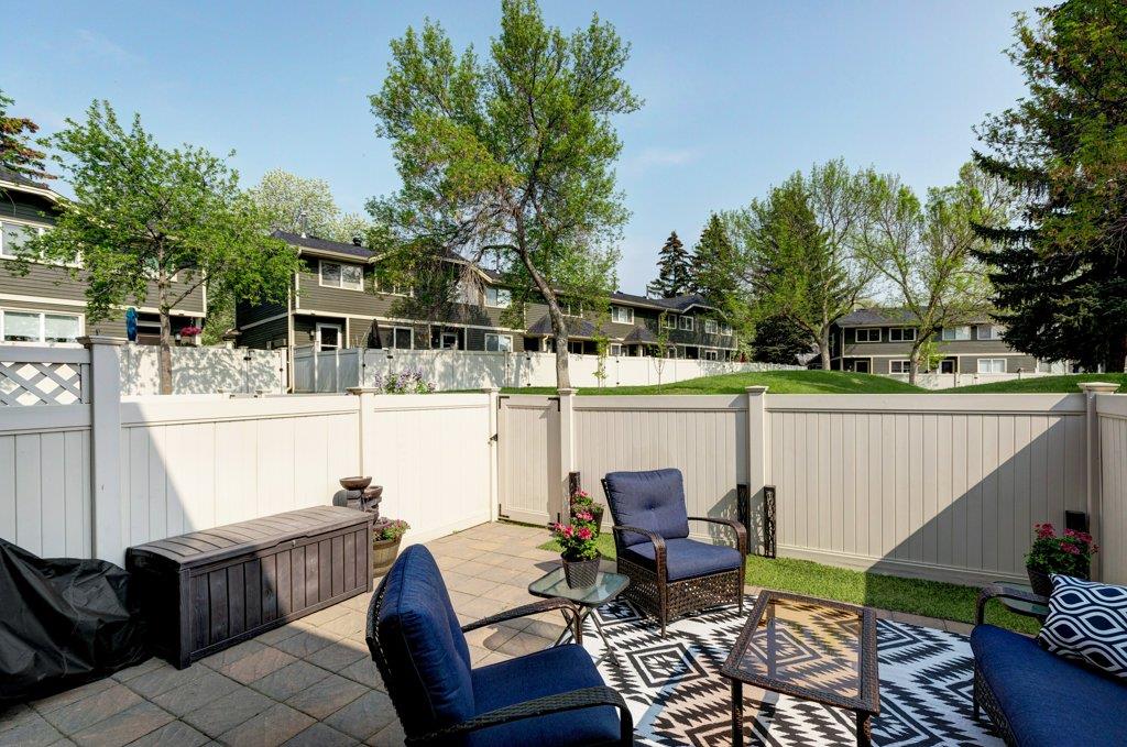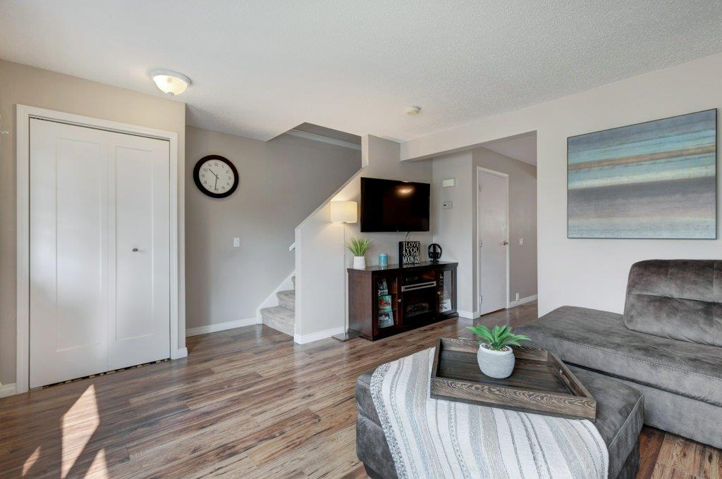Updated, well maintained 3 bedroom townhouse located on a quiet, dead-end street, backing onto a beautiful green space. Many updates to this home and complex over the past 10 years including – New hot water tank (2023), new eaves, fascia & exterior paint (2022), upstairs bathroom fully renovated (2019), laminate flooring (2015), roof shingles replaced (2015), kitchen backsplash, counters, sink & faucet replaced (2014), and fence replaced (2013). Bright main floor offers a spacious kitchen with large custom pantry, dining area, living room with large south facing windows and a half bathroom. Upper level offers 3 bedrooms including the primary large enough for king size bed and a fully renovated 4 piece bathroom. The full basement offers the laundry area, utilities, and space for a family room, should you wish to develop the space. Enjoy the fully fenced backyard with patio and high quality artificial turf, perfect for BBQing and summer entertaining, as well the green space on which the yard faces. One assigned parking stall out your front door with the option to rent a second stall from the condo corporation. Located within walking distance to shopping, schools and Fish Creek Park. Well run complex, lovely kept home, in a convenient location!