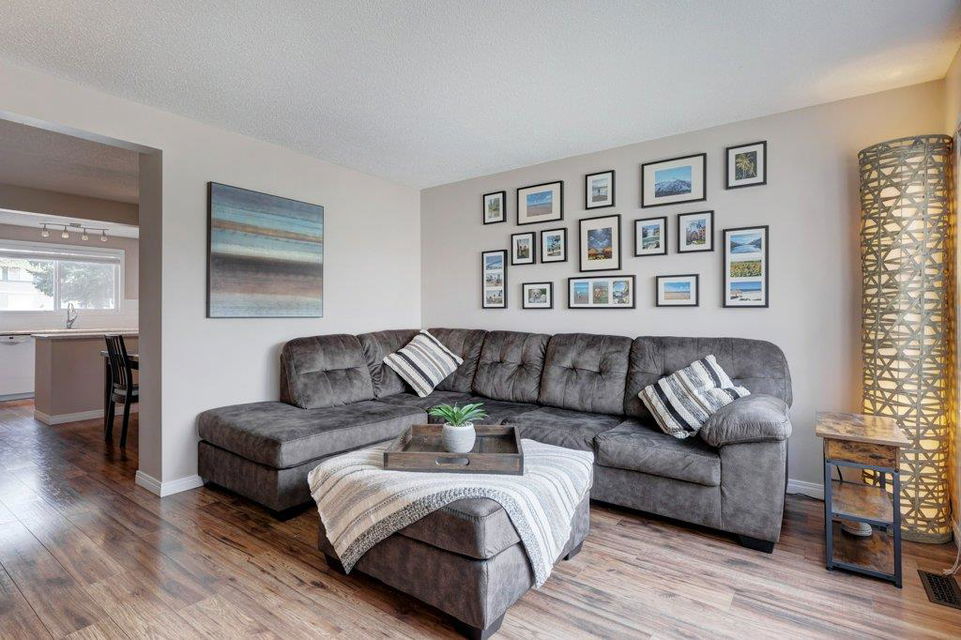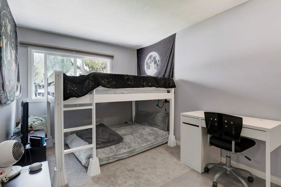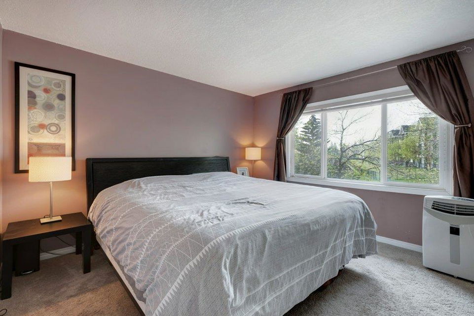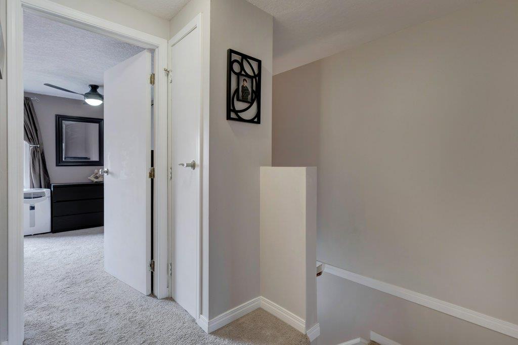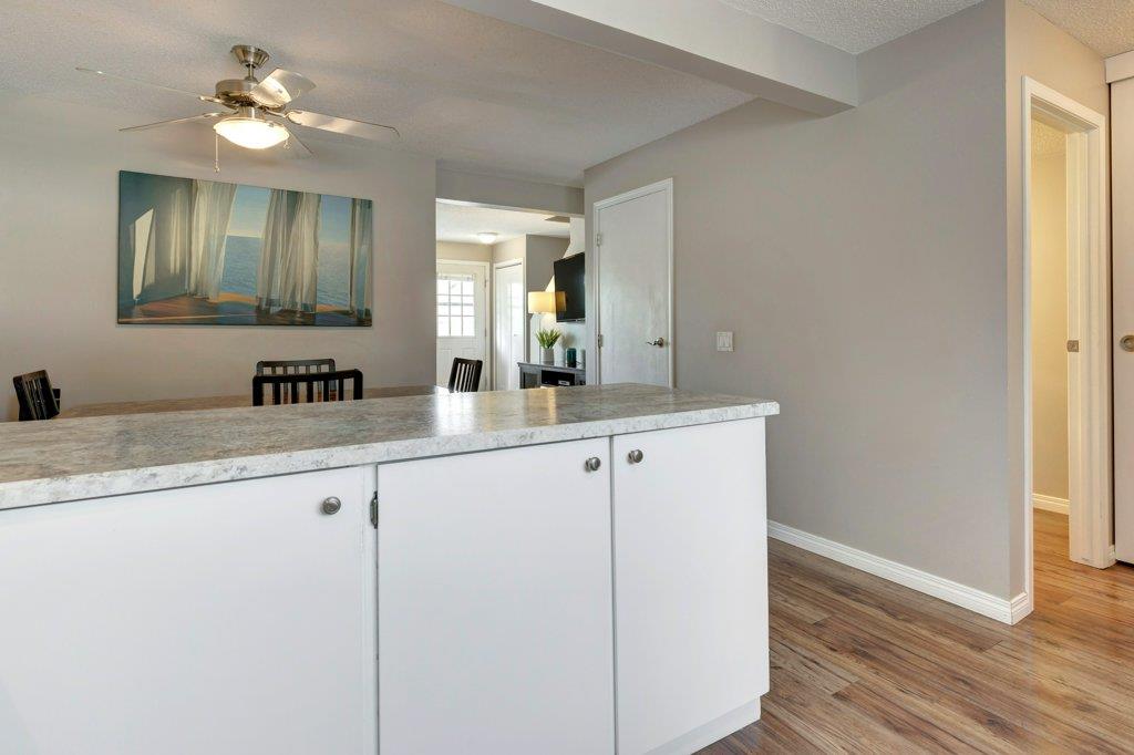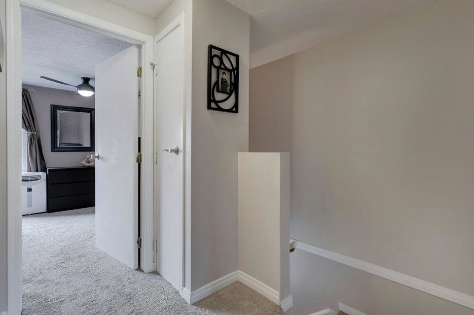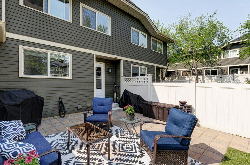 Updated, well maintained 3 bedroom townhouse located on a quiet, dead-end street, backing onto a beautiful green space. Many updates to this home and complex over the past 10 years including – New hot water tank (2023), new eaves, fascia & exterior paint (2022), upstairs bathroom fully renovated (2019), laminate flooring (2015), roof shingles replaced (2015), kitchen backsplash, counters, sink & faucet replaced (2014), and fence replaced (2013). Bright main floor offers a spacious kitchen with large custom pantry, dining area, living room with large south facing windows and a half bathroom. Upper level offers 3 bedrooms including the primary large enough for king size bed and a fully renovated 4 piece bathroom. The full basement offers the laundry area, utilities, and space for a family room, should you wish to develop the space. Enjoy the fully fenced backyard with patio and high quality artificial turf, perfect for BBQing and summer entertaining, as well the green space on which the yard faces. One assigned parking stall out your front door with the option to rent a second stall from the condo corporation. Located within walking distance to shopping, schools and Fish Creek Park. Well run complex, lovely kept home, in a convenient location!