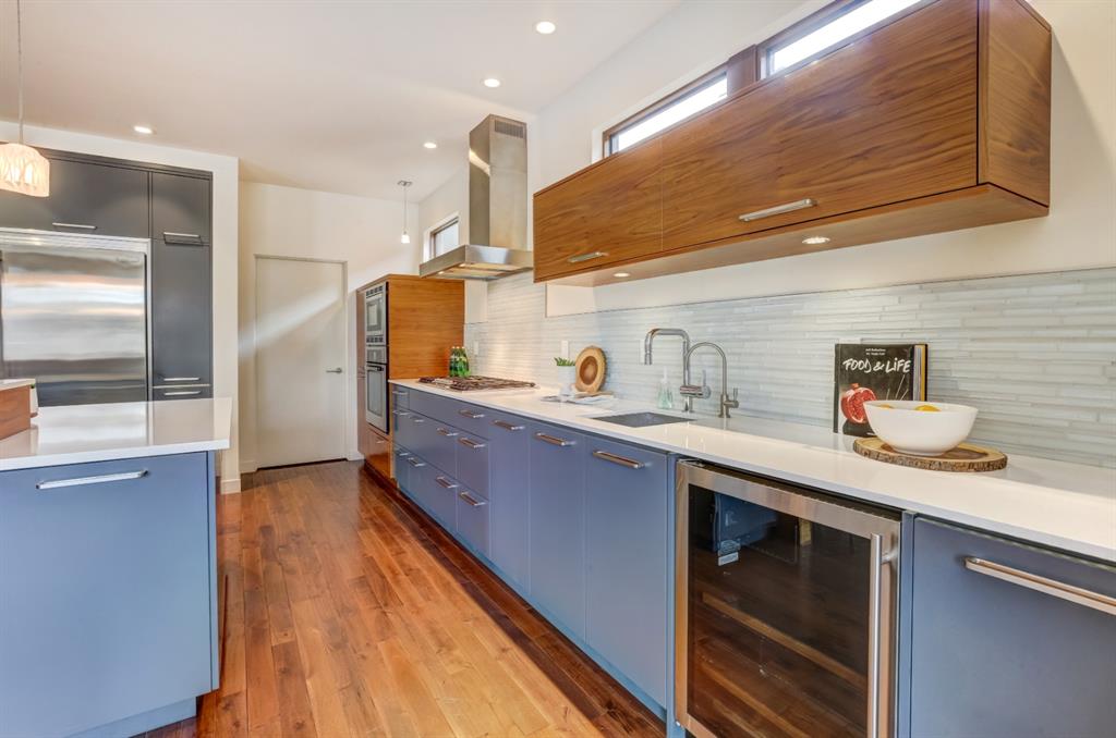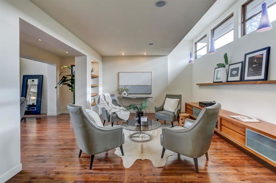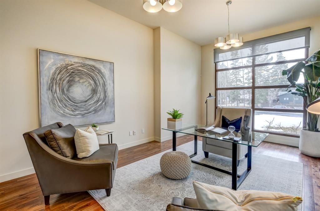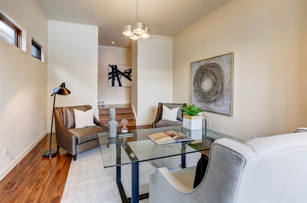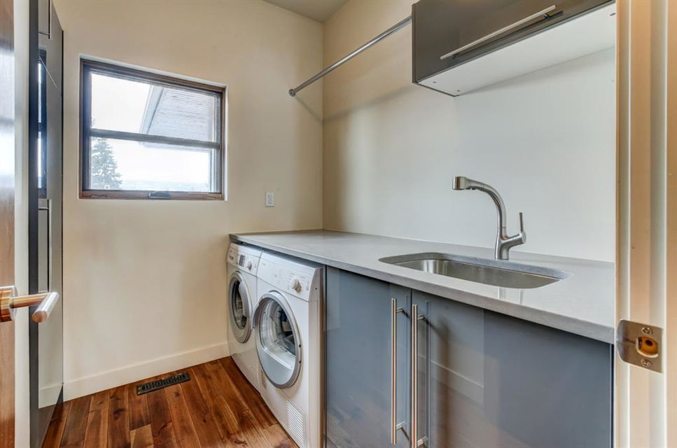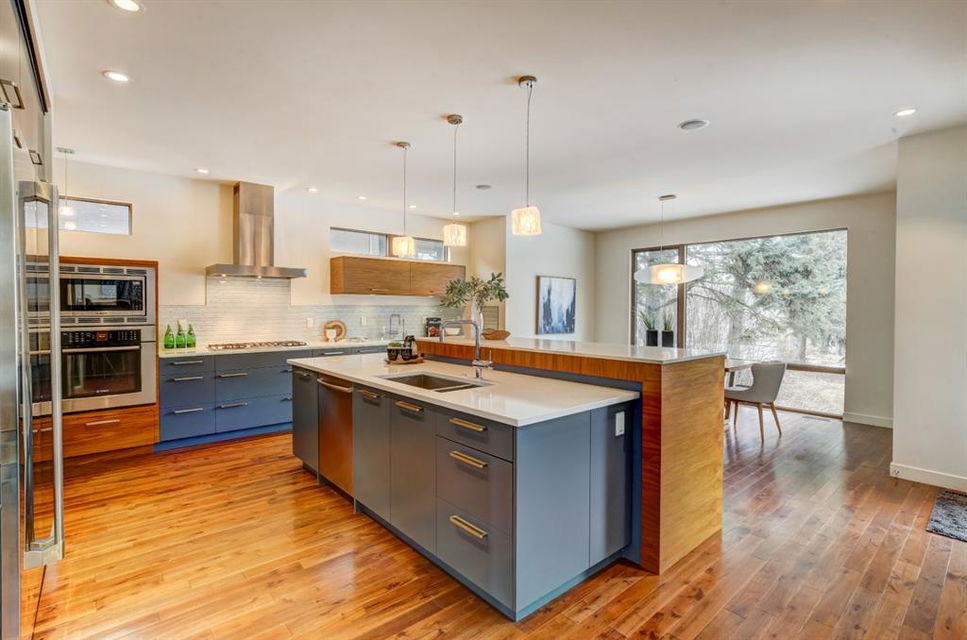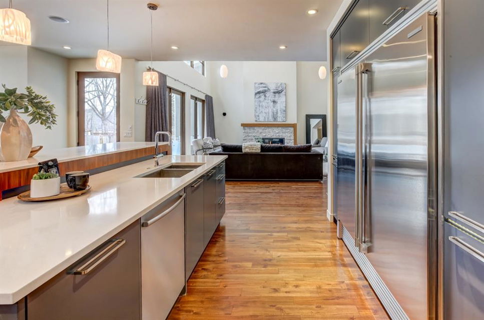 Beautiful modern riverfront family home with quadruple attached heated garage. Here is a rare chance to own riverfront on Bow Crescent in this 2010 built stunning home with 4 bedrooms, 3.5 bathrooms and modern features throughout. You will find hardwood throughout this home on the main level, upper level and both staircases, and tile throughout the rest of the living spaces, along with gorgeous wood windows, glass railings, and solid natural walnut doors. The main floor offers an open floor plan with the a stylish kitchen, dining area and two-storey living room all facing the yard, river and Bowmont park. Spacious kitchen with custom cabinetry features both lacquered and natural walnut cabinets, stainless steel appliances including a wall mount Bosch oven and microwave, gas cooktop and full size separate fridge and freezer, quartz countertops, a stylish island and pantry for extra storage. The dining area leads you out to the oversized composite deck with concrete built-in planters, a gas line for your BBQ and built-in speakers. The two-storey great room features four patio doors that all open onto the deck, a gas fireplace with stone veneer, custom drapery, and upper level windows. The main level also offers a large front flex room with upper windows designed especially to let natural sunlight in during all months of the year. This room can be a media room, home office, playroom or formal dining space. A second flex room can be set up as an office, media room, or playroom as well. 2 front closets and a powder room complete the main level. On the upper level you will find 3 bedrooms including the large primary bedroom with amazing river and Bowmont Park views from the many windows, custom drapery, and an ensuite with heated limestone flooring, walnut cabinetry, a freestanding soaker tub and tiled shower with 10mm glass. Two more oversized bedrooms are also on this level (one of which would need a railing closed in to use as a bedroom). A full bathroom and laundry room are also located on this upper level. The basement is fully finished with in-floor heat throughout, a large mudroom with custom built-ins, bedroom with 2 closets, full bathroom, finished storage area and utility room with plenty of storage space. The 4-car garage is a double tandem, with an oversized 18 ft wide garage door, has in-floor radiant heat, epoxy finish on the floor and is fully insulated, drywalled and painted. The riverfront yard is simply amazing and has a lower yard right beside the river as well. Truly a beautiful place to live with great neighbours, views and location on the river path system and across from Bowmont Park. Quick access to downtown and great nearby amenities.