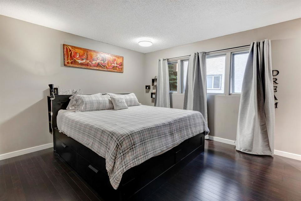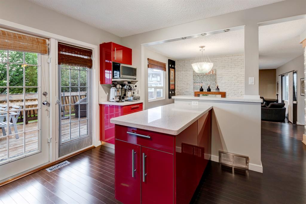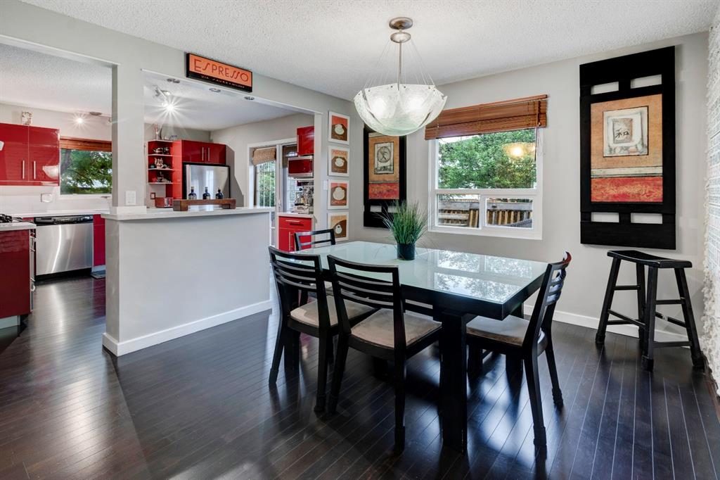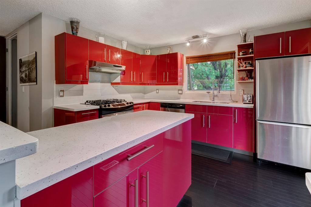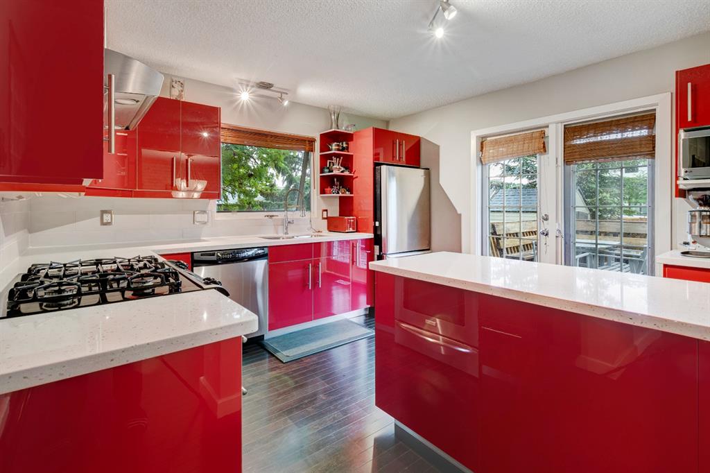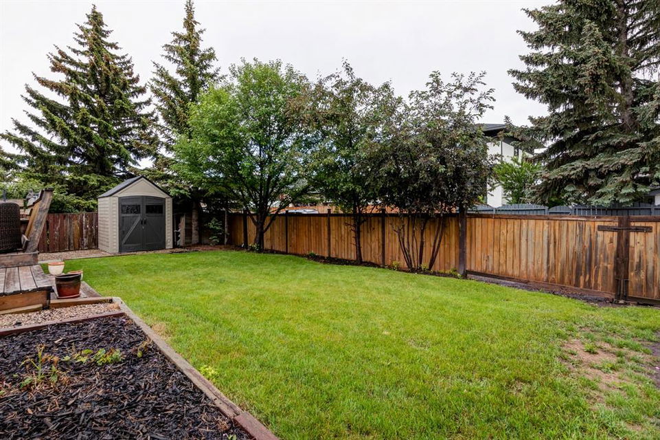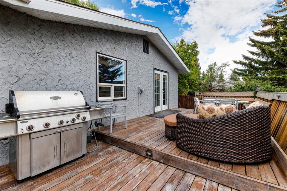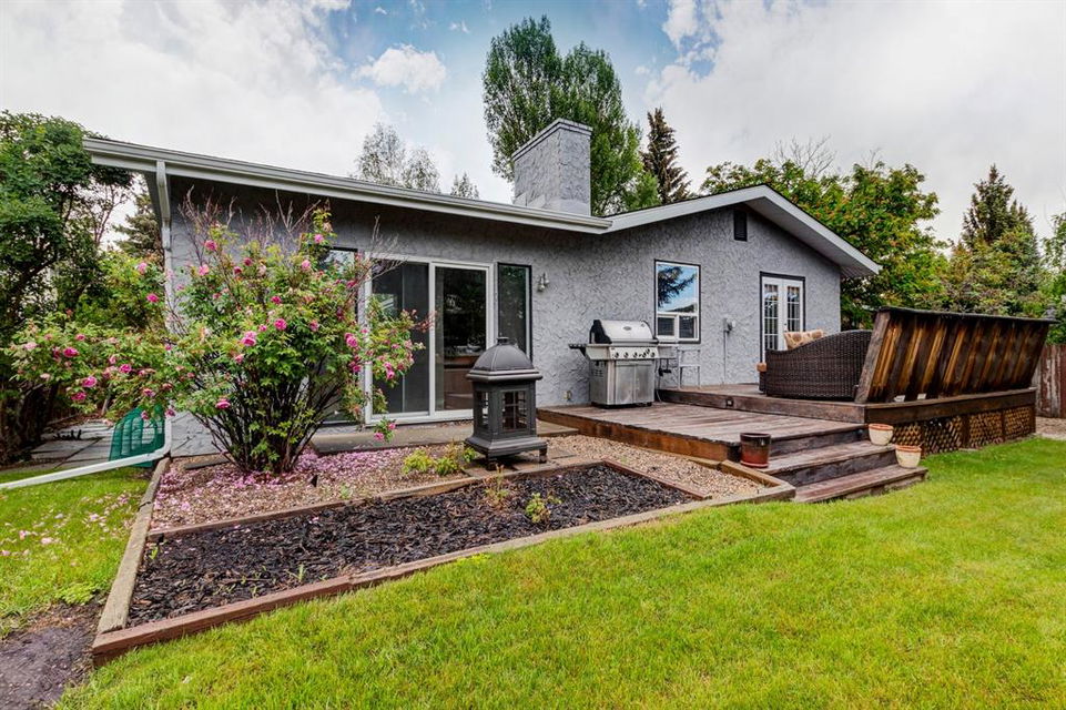 Amazing Silver Springs location just steps to Bowmont Park and to the river pathway system! Great size 1300 sq ft, 4 bedroom, 3 bathroom bungalow with a fully finished basement, on a large lot with a sunny west facing private yard. This location can not be beat! Walk to Bowmont Park, playgrounds, off leash dog parks, the Silver Springs pool and rink, Sarcee Park, and schools. Spacious main floor with engineered hardwood throughout most of the living space and a trendy, functional kitchen featuring flat panel red kitchen cabinets, quartz countertops, subway tile backsplash, and stainless steel appliances including a gas range. Access your west facing deck and yard through the kitchen patio doors. The bright dining room opens onto the kitchen and can easily accommodate a table for 8. The living room offers a cozy wood burning fireplace and plenty of natural light through the large windows and patio doors which lead out to the yard. 3 bedrooms on the main floor including the primary bedroom with room for a king size bed and a 3-piece ensuite with shower. Two more bedrooms, both with wide plank laminate flooring, and a 4-piece bathroom complete the main level. The fully developed basement offers a 4th bedroom with a large window, full bathroom, family room, flex space, laundry room with storage space, utility room and a large storage or hobby room. Single detached front garage with a driveway. The fenced west facing yard offers a wood deck with a gas line for your BBQ, storage shed, and mature trees. Don’t miss out on this great home in a fantastic location! Not often do homes come up for sale in this very desirable pocket of Silver Springs.