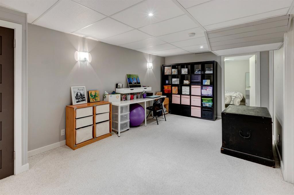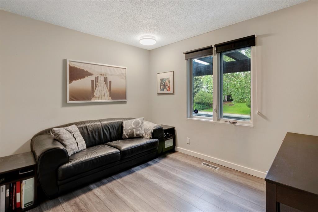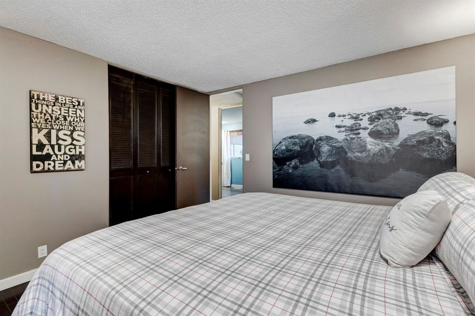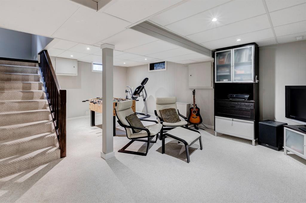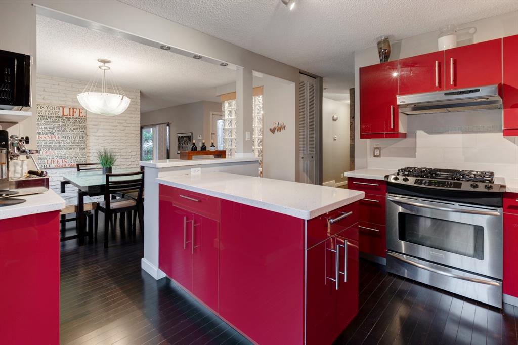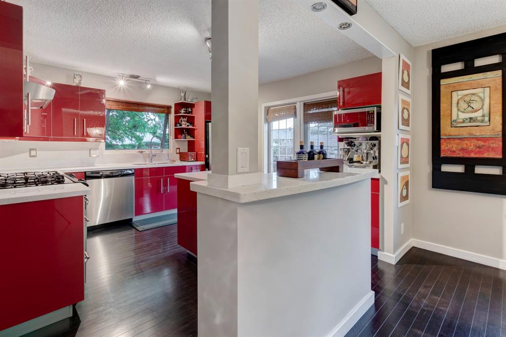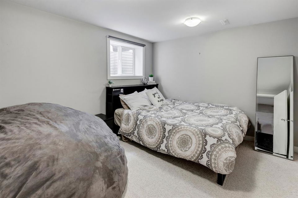 Amazing Silver Springs location just steps to Bowmont Park and to the river pathway system! Great size 1300 sq ft, 4 bedroom, 3 bathroom bungalow with a fully finished basement, on a large lot with a sunny west facing private yard. This location can not be beat! Walk to Bowmont Park, playgrounds, off leash dog parks, the Silver Springs pool and rink, Sarcee Park, and schools. Spacious main floor with engineered hardwood throughout most of the living space and a trendy, functional kitchen featuring flat panel red kitchen cabinets, quartz countertops, subway tile backsplash, and stainless steel appliances including a gas range. Access your west facing deck and yard through the kitchen patio doors. The bright dining room opens onto the kitchen and can easily accommodate a table for 8. The living room offers a cozy wood burning fireplace and plenty of natural light through the large windows and patio doors which lead out to the yard. 3 bedrooms on the main floor including the primary bedroom with room for a king size bed and a 3-piece ensuite with shower. Two more bedrooms, both with wide plank laminate flooring, and a 4-piece bathroom complete the main level. The fully developed basement offers a 4th bedroom with a large window, full bathroom, family room, flex space, laundry room with storage space, utility room and a large storage or hobby room. Single detached front garage with a driveway. The fenced west facing yard offers a wood deck with a gas line for your BBQ, storage shed, and mature trees. Don’t miss out on this great home in a fantastic location! Not often do homes come up for sale in this very desirable pocket of Silver Springs.