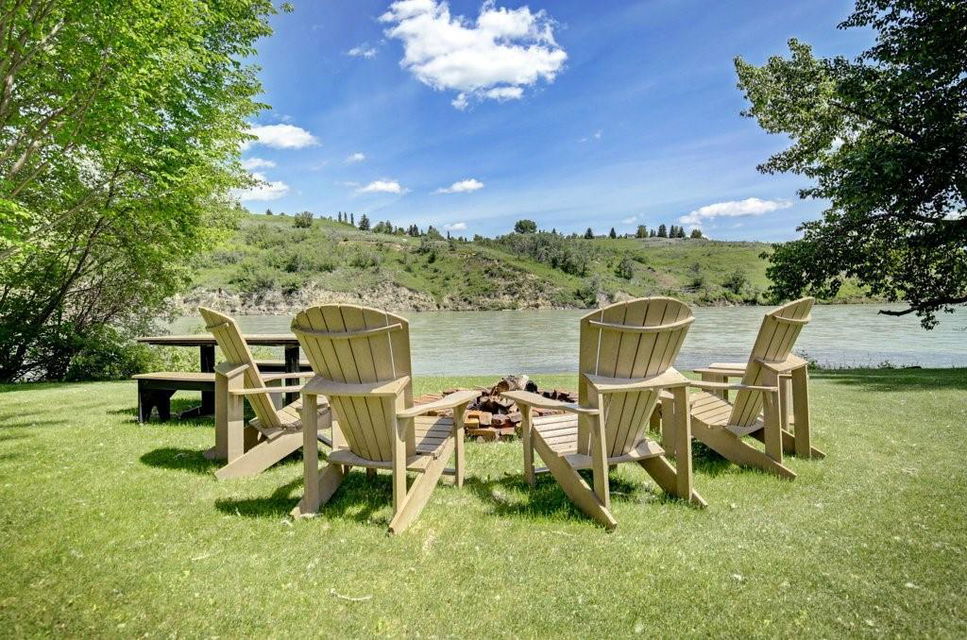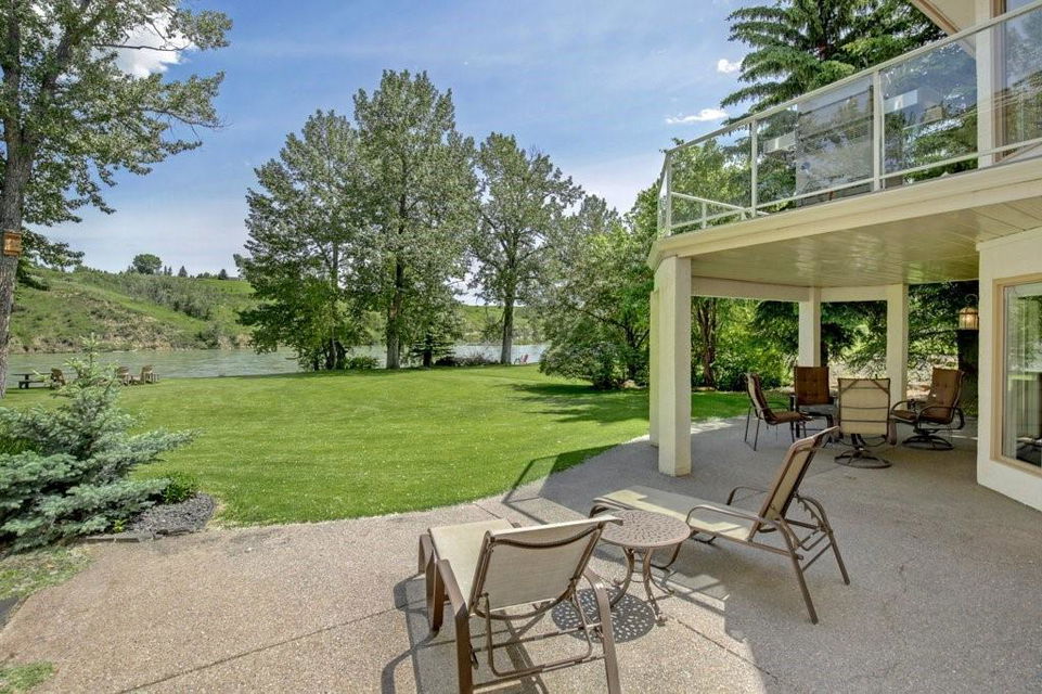 Fantastic opportunity to own a country-like estate right in the city. Situated on a 100 ft wide by 300 ft deep, 34,153 square foot RIVERFRONT lot, this sprawling 2409 square foot walkout bungalow offers a private waterfront setting with stunning views overlooking the Bow river and Bowmont park. The main level features an updated spacious kitchen, breakfast nook, dining room, living room with vaulted ceilings & stunning fireplace, den, 2 bedrooms including the master with beautifully updated ensuite bathroom & walk-in closet, and a second bedroom with it’s own ensuite. Half bathroom & laundry room/mudroom with access to the oversized triple car garage complete the main level. The fully updated walkout basement offers a 3rd bedroom with walk-in closet, large family room, full bar with wine fridge & dishwasher, huge entertainment/games area, gym (which could be turned into a 4th bedroom), bathroom with walk-in shower, cold room & plenty of storage. Laundry room & all bathrooms have heated floors. The massive riverfront yard is immaculate and has a full irrigation system. The views of the river and Bowmont park are simply stunning from this location on beautiful Bow Crescent, an amazing place to live.