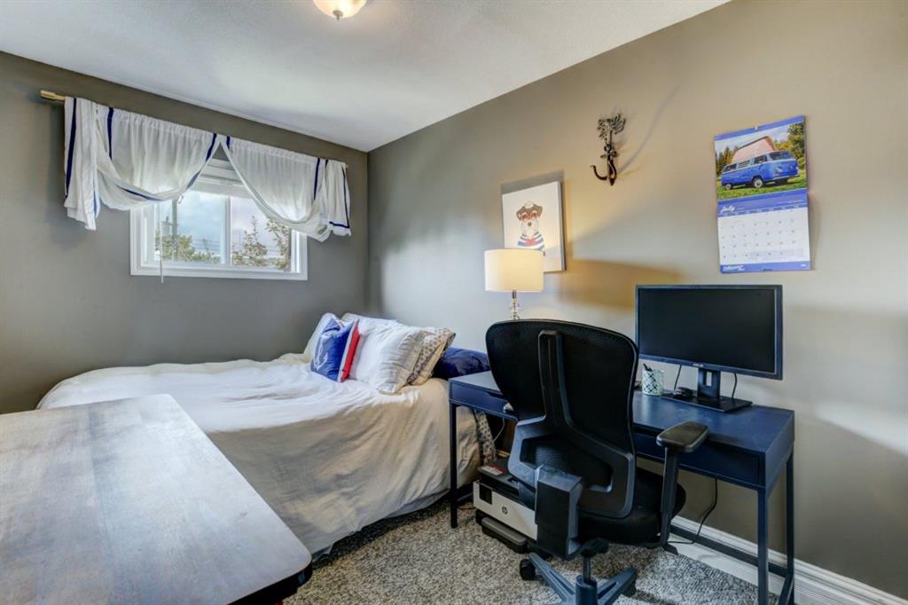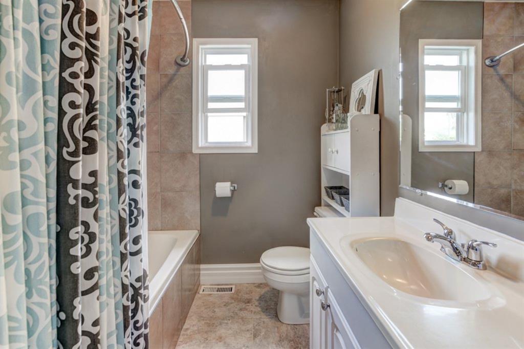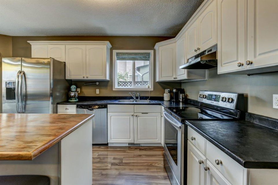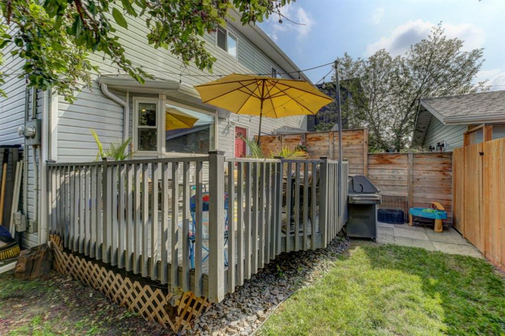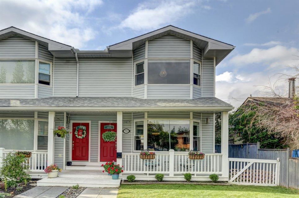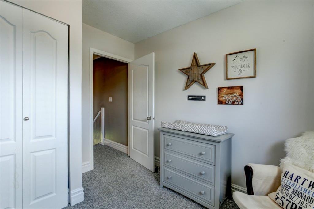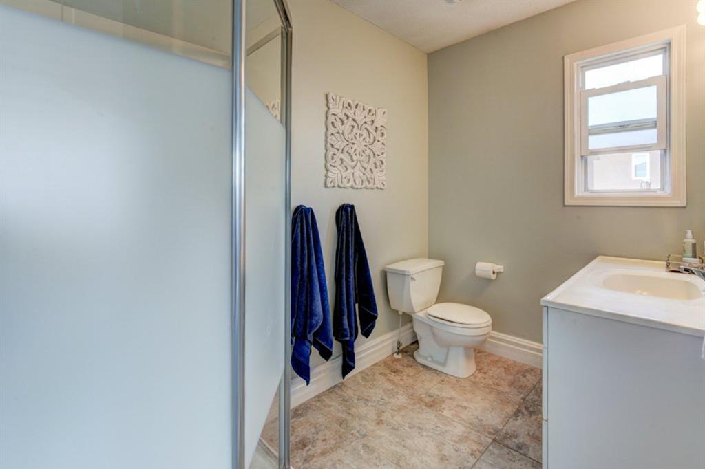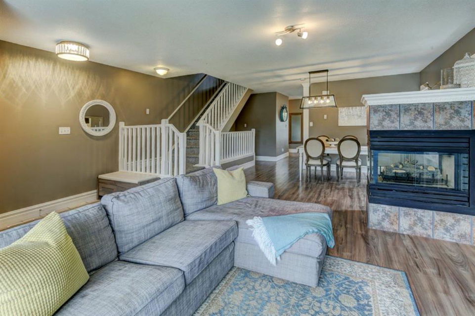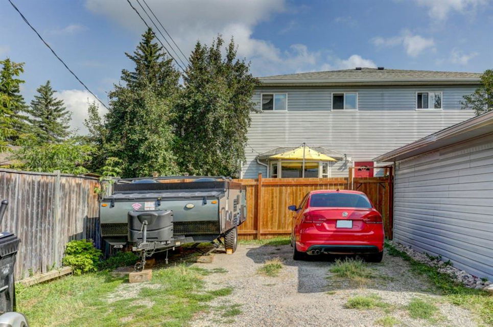 Very well kept, trendy 2 storey attached home (with NO condo fees) on a quiet street just steps from Bowness Park. Well laid out main floor offers bright living room with 3 sided fireplace that opens onto dining area. Kitchen with white cabinets, stainless steel appliances, island with seating for 3 and a breakfast nook. Powder room and access to back yard complete the main floor. Upper level offers 3 bedrooms including very spacious master that easily accommodates a king size bed, has an entire wall of closet space and an updated 3 piece ensuite bathroom. Additional full bathroom on upper level. Unfinished basement with laundry room, storage and space to develop how you choose. South facing back yard is fully fenced and offers a large deck, storage shed and space to park 2 vehicles. New roof shingles in 2018, rear fence added in 2018, front walk way re-done in 2019, stove replaced in 2017, washer replaced in 2020, updated light fixtures & window coverings. Fantastic street with fantastic neighbours! Enjoy all that Bowness has to offer including Bowness Park, bike paths, schools, grocery store and other local businesses. Quick commute out of the city and to downtown from this central location.
