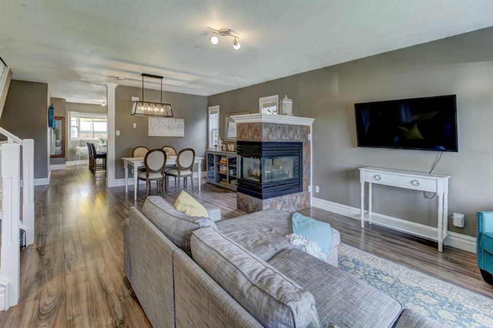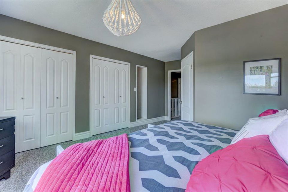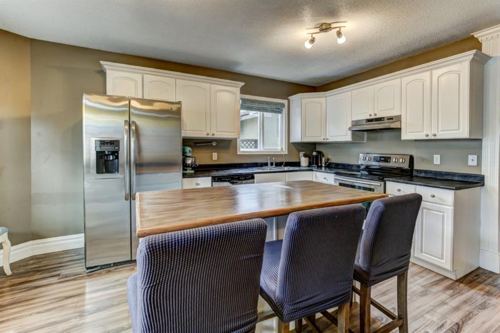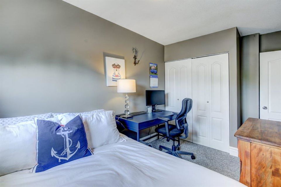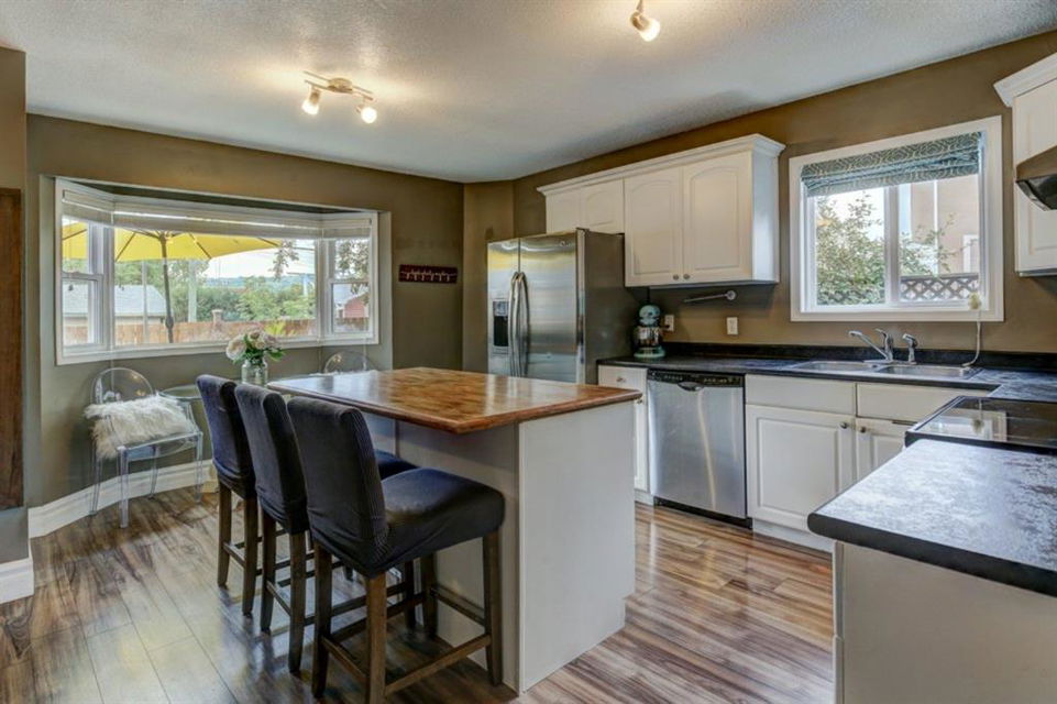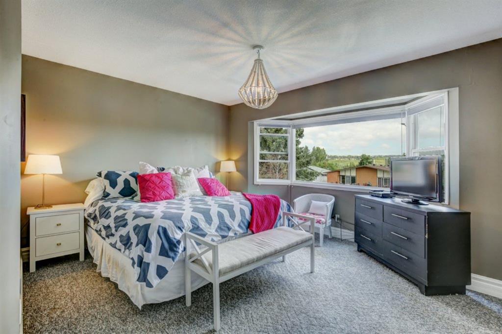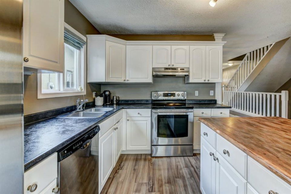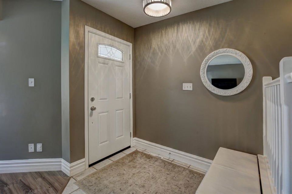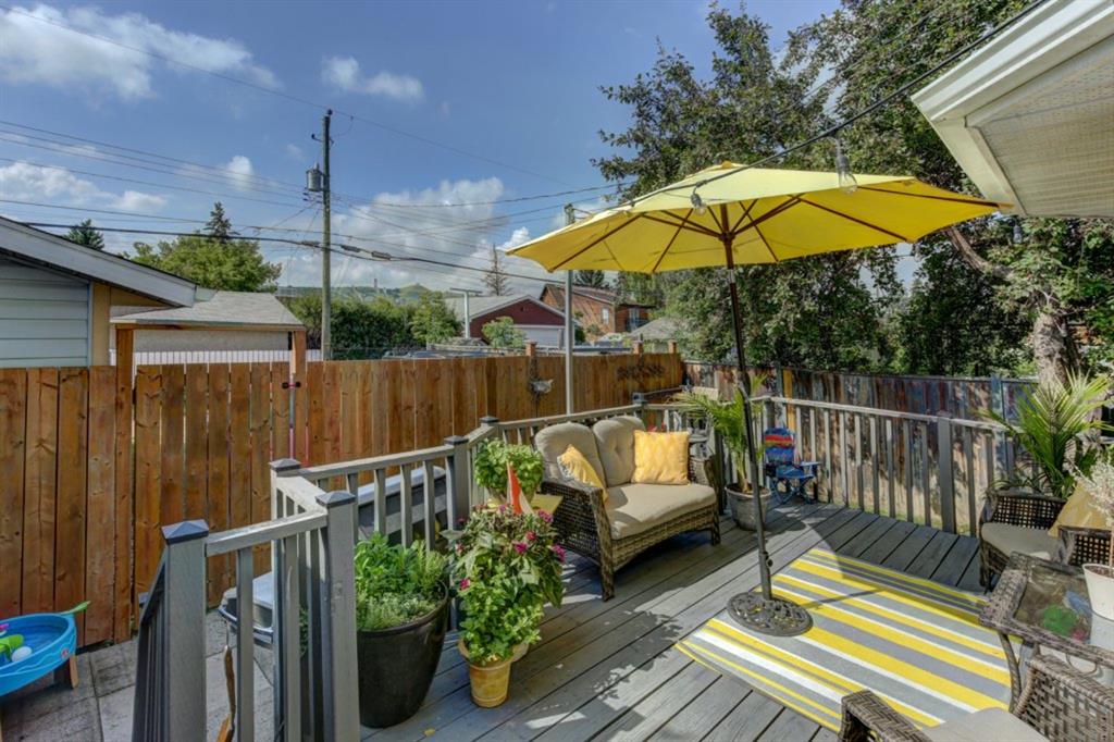 Very well kept, trendy 2 storey attached home (with NO condo fees) on a quiet street just steps from Bowness Park. Well laid out main floor offers bright living room with 3 sided fireplace that opens onto dining area. Kitchen with white cabinets, stainless steel appliances, island with seating for 3 and a breakfast nook. Powder room and access to back yard complete the main floor. Upper level offers 3 bedrooms including very spacious master that easily accommodates a king size bed, has an entire wall of closet space and an updated 3 piece ensuite bathroom. Additional full bathroom on upper level. Unfinished basement with laundry room, storage and space to develop how you choose. South facing back yard is fully fenced and offers a large deck, storage shed and space to park 2 vehicles. New roof shingles in 2018, rear fence added in 2018, front walk way re-done in 2019, stove replaced in 2017, washer replaced in 2020, updated light fixtures & window coverings. Fantastic street with fantastic neighbours! Enjoy all that Bowness has to offer including Bowness Park, bike paths, schools, grocery store and other local businesses. Quick commute out of the city and to downtown from this central location.