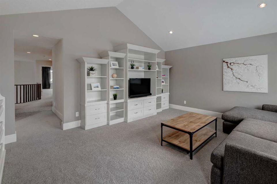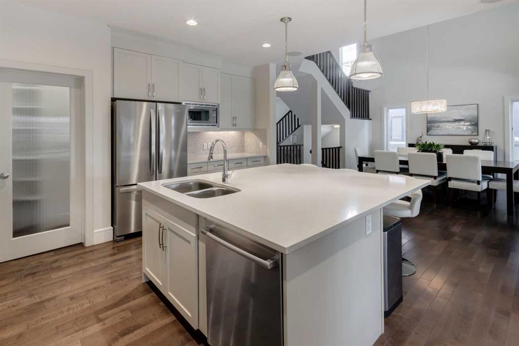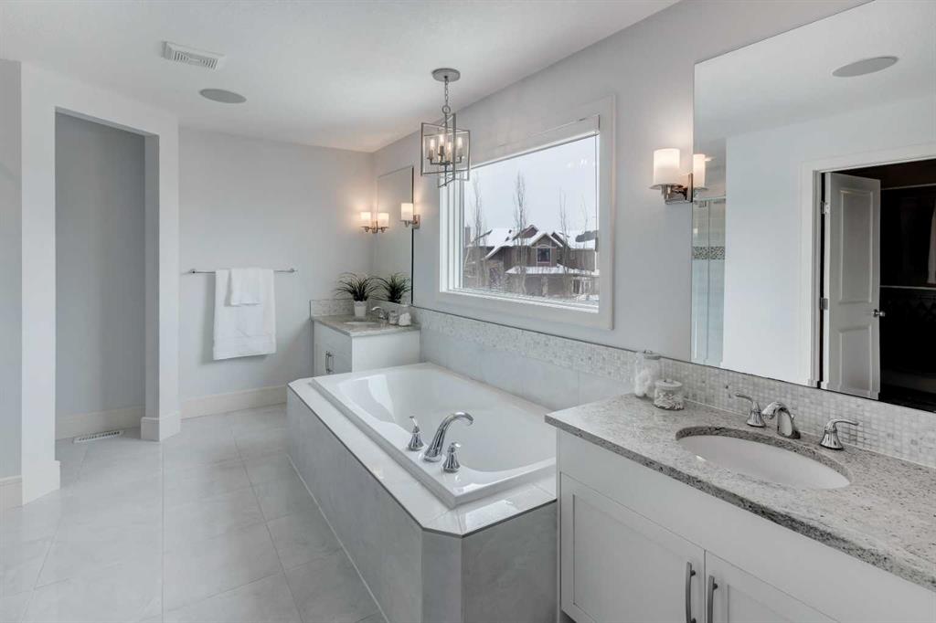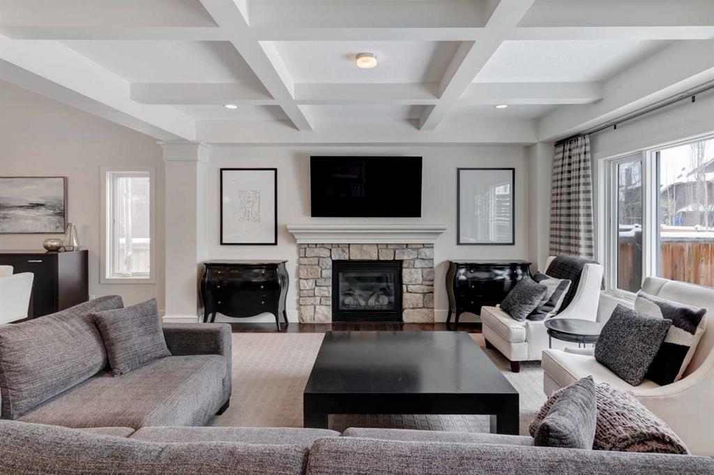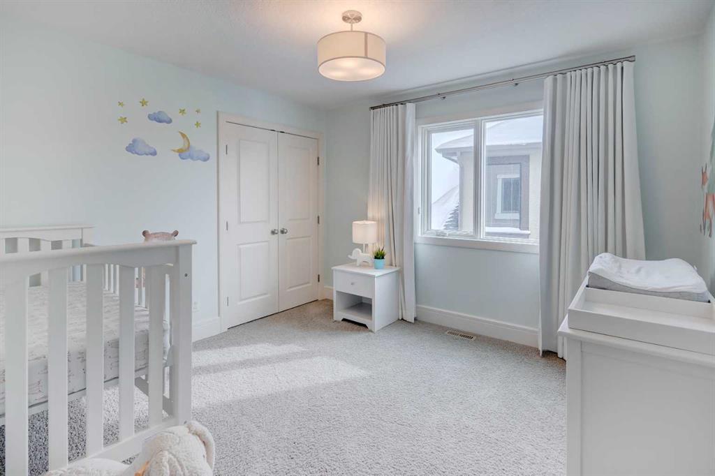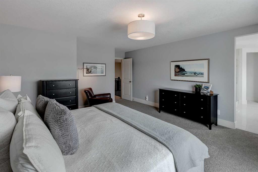 Beautiful, upgraded and very well maintained 4 bedroom family home with 3826 sq ft of total developed living space, with a fully landscaped backyard on a lovely quiet street. Hardwood flooring throughout the main level, central air conditioning, new dishwasher & refrigerator (2023), new garage door opener (2024), new composite deck (2022), and furnace just cleaned! Spacious kitchen with plenty of cabinetry, quartz countertops, marble backsplash, stainless steel appliances including a Wolf range and a wine fridge, island with seating, and a large corner pantry. The open concept living room has coffered ceilings, gas fireplace and great windows facing the yard. Stunning 2 storey open dining room with skylights. Private den/office off the living room with views of the yard and double french pocket doors. Mudroom with access to the double attached garage, front foyer and a powder room complete this well laid out main level. The upper level features 3 bedrooms including the sizeable primary bedroom with space for a king bed, dressers and a sitting area, and leads to the great walk-in closet with custom built-ins, and the beautiful ensuite bathroom with dual vanities, granite countertops, a deep soaker tub, tiled shower with wall and overhead rain shower heads, and a private water closet. 2 more spacious bedrooms, a full bathroom, bonus room with vaulted ceilings, and a bright laundry room with loads of storage completes the upper level. In the basement you will find the 4th bedroom, full bathroom, gym/flex room with gym flooring and wall mirrors, large family/recreation room, plus the utility room and storage. The fully landscaped yard has trees, shrubs, composite deck, pergola, stone patio sitting area, irrigation and landscape lighting. Located in the Wentworth section of West Springs, this home is close to schools, playgrounds, walking paths and the many community amenities and restaurants. Modern, beautifully kept, and thoughtfully laid out, don’t miss out on seeing this home in person before it is sold!
