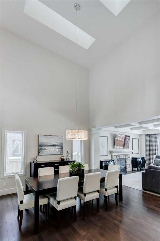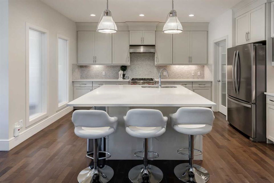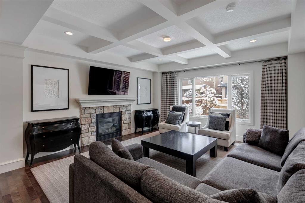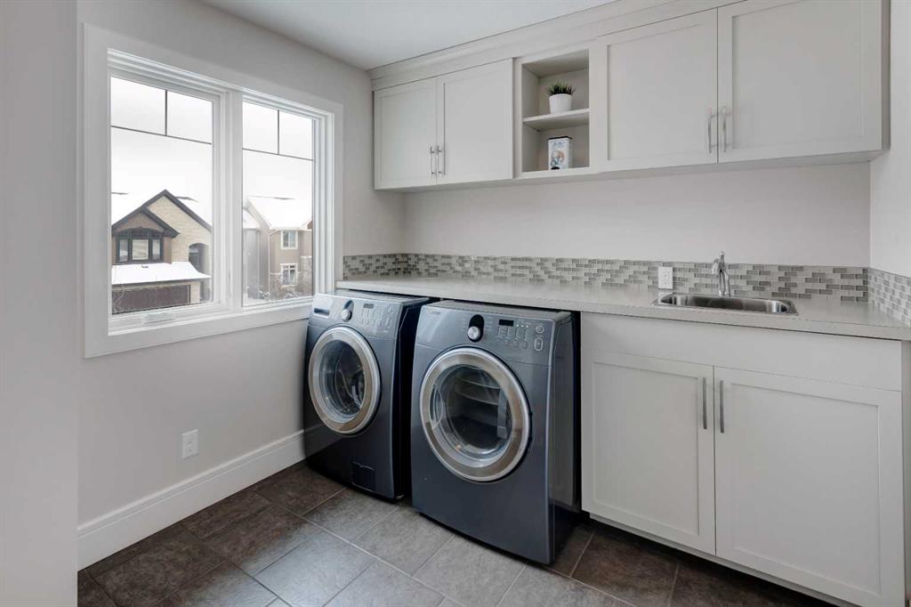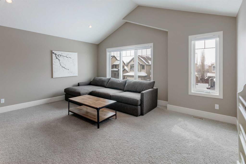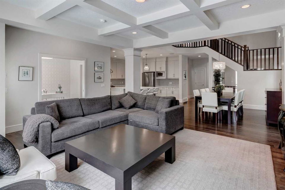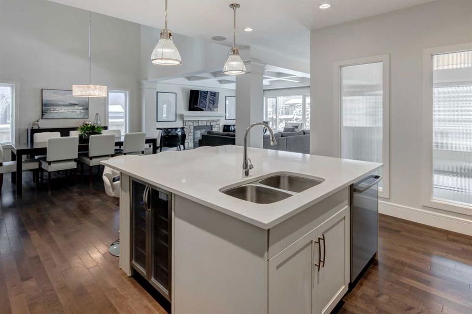 Beautiful, upgraded and very well maintained 4 bedroom family home with 3826 sq ft of total developed living space, with a fully landscaped backyard on a lovely quiet street. Hardwood flooring throughout the main level, central air conditioning, new dishwasher & refrigerator (2023), new garage door opener (2024), new composite deck (2022), and furnace just cleaned! Spacious kitchen with plenty of cabinetry, quartz countertops, marble backsplash, stainless steel appliances including a Wolf range and a wine fridge, island with seating, and a large corner pantry. The open concept living room has coffered ceilings, gas fireplace and great windows facing the yard. Stunning 2 storey open dining room with skylights. Private den/office off the living room with views of the yard and double french pocket doors. Mudroom with access to the double attached garage, front foyer and a powder room complete this well laid out main level. The upper level features 3 bedrooms including the sizeable primary bedroom with space for a king bed, dressers and a sitting area, and leads to the great walk-in closet with custom built-ins, and the beautiful ensuite bathroom with dual vanities, granite countertops, a deep soaker tub, tiled shower with wall and overhead rain shower heads, and a private water closet. 2 more spacious bedrooms, a full bathroom, bonus room with vaulted ceilings, and a bright laundry room with loads of storage completes the upper level. In the basement you will find the 4th bedroom, full bathroom, gym/flex room with gym flooring and wall mirrors, large family/recreation room, plus the utility room and storage. The fully landscaped yard has trees, shrubs, composite deck, pergola, stone patio sitting area, irrigation and landscape lighting. Located in the Wentworth section of West Springs, this home is close to schools, playgrounds, walking paths and the many community amenities and restaurants. Modern, beautifully kept, and thoughtfully laid out, don’t miss out on seeing this home in person before it is sold!