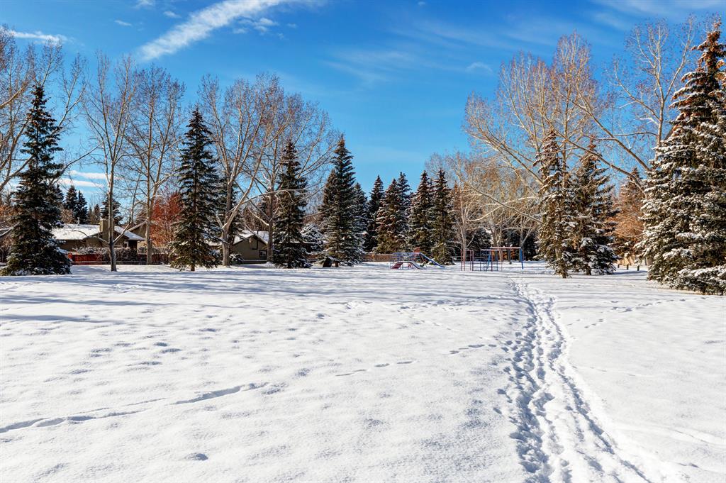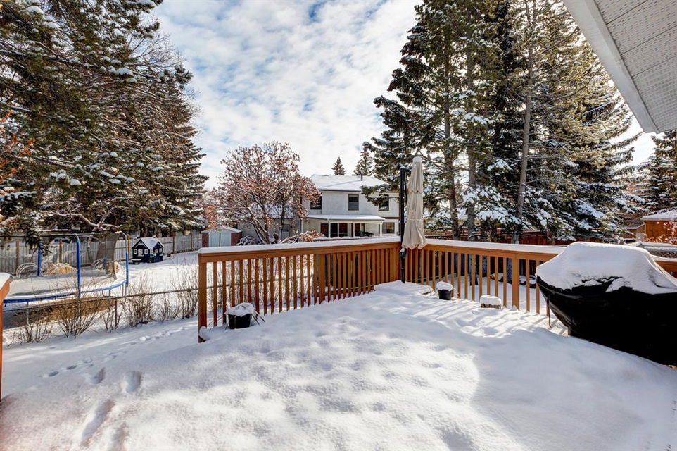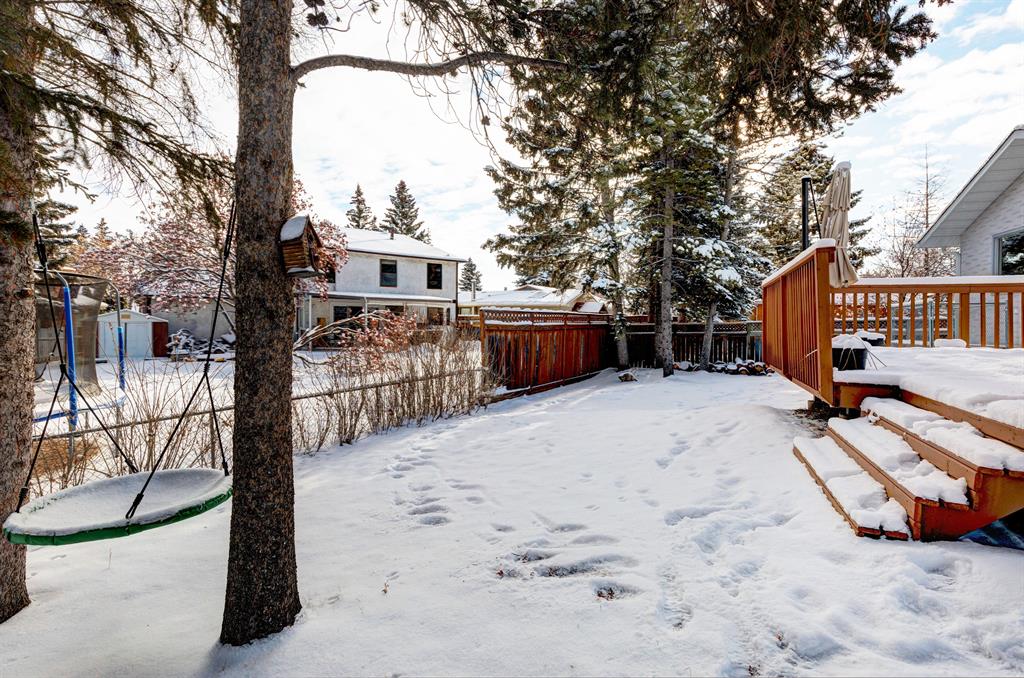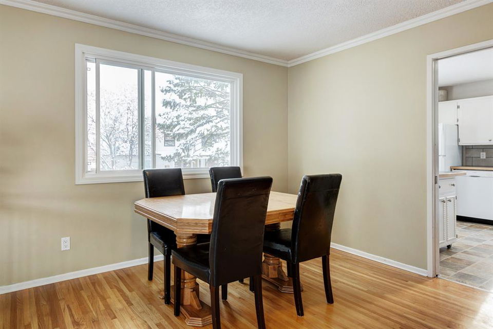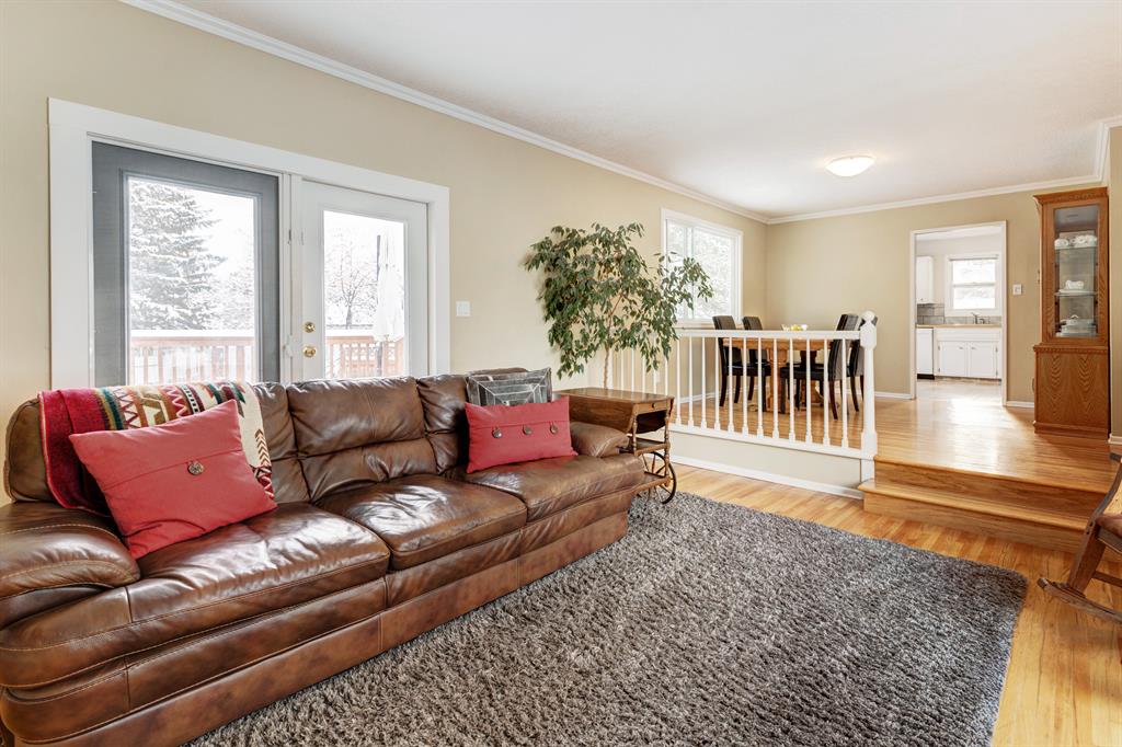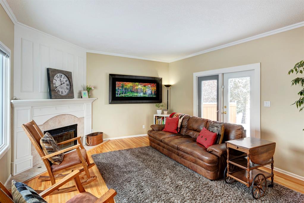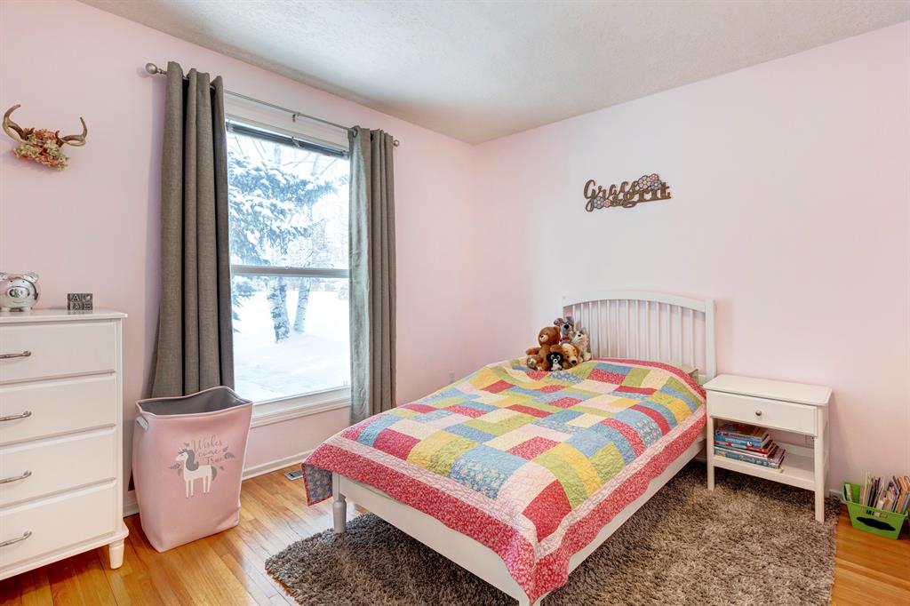 Bright and very well kept family home located right beside a greenspace and across the street from a park. This 4 bedroom bungalow offers a professionally developed basement (2016), new furnace and AC (2015), soffits, fascia and eaves (2014), new sidewalks and regrading (2014), new carpet in the primary bedroom (2022), and many newer windows throughout. The spacious and well laid out main floor features hardwood flooring throughout many of the rooms, knock down ceilings, and neutral paint. The bright living room has a wood burning fireplace with gas assist, large front window and double doors that lead you to the back deck and yard. The living room opens onto the dining room that can accommodate a large table and additional furniture. The kitchen offers white cabinetry, a moveable island and large window looking out to the yard. 3 bedrooms on the main floor, 2 piece ensuite in the primary bedroom and 4 piece full bathroom. The professionally finished fully finished basement has been modernized with plush carpet, white trim and doors, and pot lights throughout. The basement offers a bedroom, den, family room, 3 piece bathroom and utility/storage room. The fully fenced oversized yard features several mature trees, a large deck with gas line for your BBQ, fire pit, and storage shed. Single front detached garage. The location can not be beat, right across the street from a park, siding on to a greenspace, and just steps to Louis Riel School, Oakridge Community Centre, public transit, and parks.
