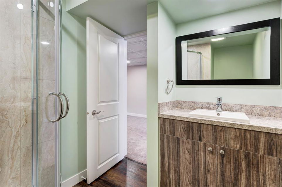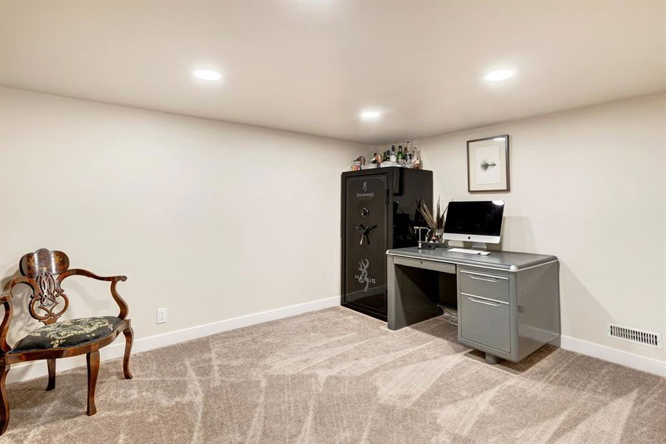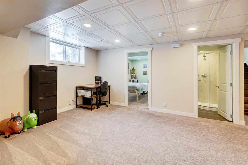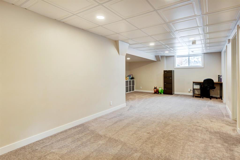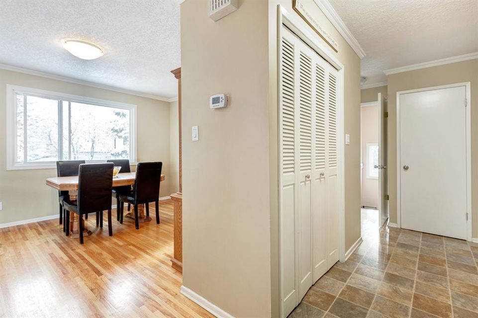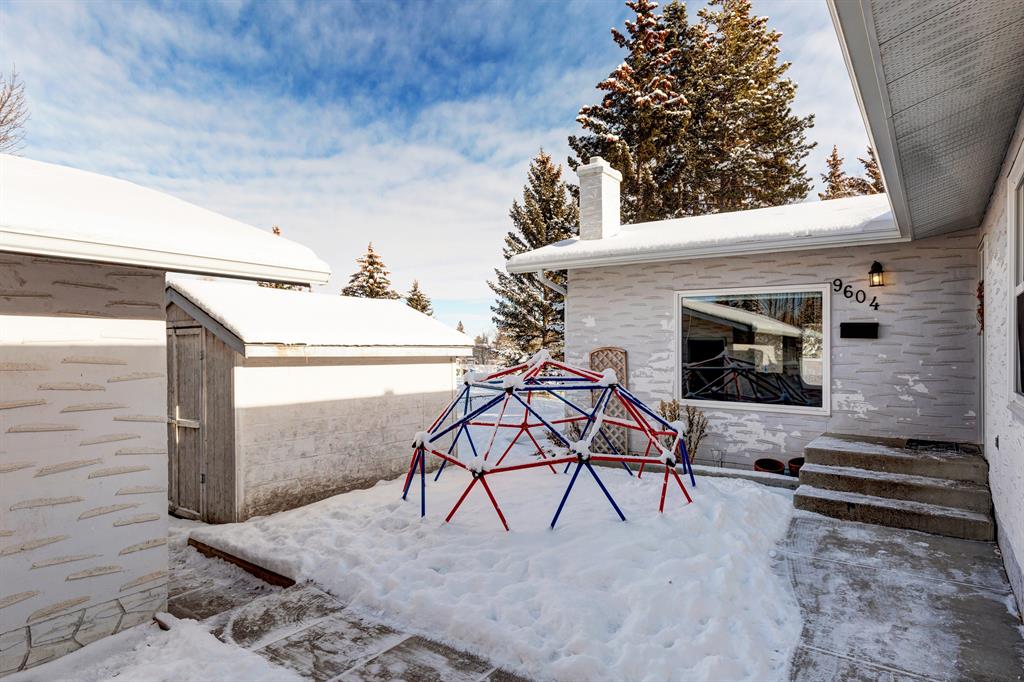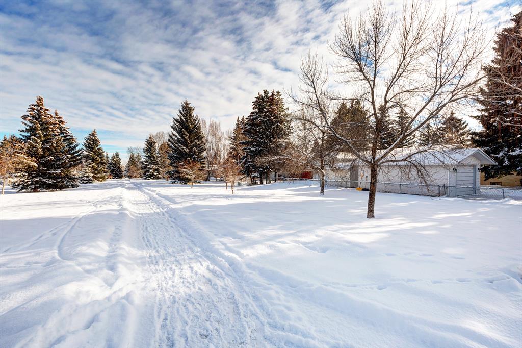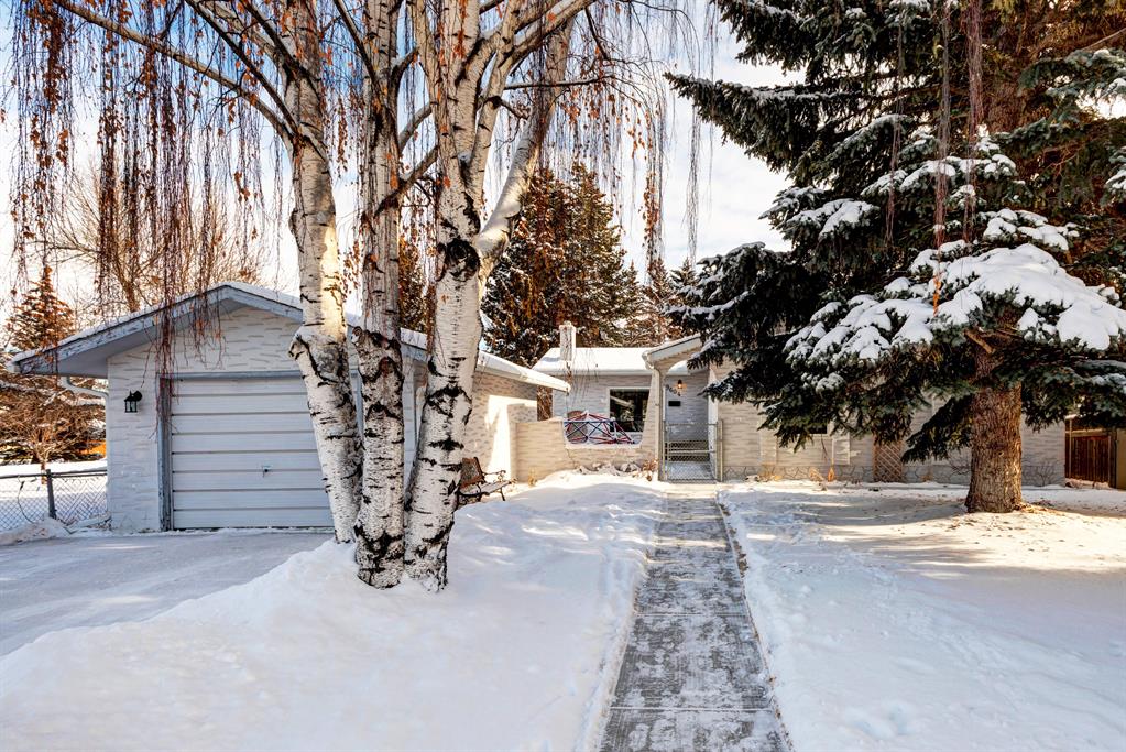 Bright and very well kept family home located right beside a greenspace and across the street from a park. This 4 bedroom bungalow offers a professionally developed basement (2016), new furnace and AC (2015), soffits, fascia and eaves (2014), new sidewalks and regrading (2014), new carpet in the primary bedroom (2022), and many newer windows throughout. The spacious and well laid out main floor features hardwood flooring throughout many of the rooms, knock down ceilings, and neutral paint. The bright living room has a wood burning fireplace with gas assist, large front window and double doors that lead you to the back deck and yard. The living room opens onto the dining room that can accommodate a large table and additional furniture. The kitchen offers white cabinetry, a moveable island and large window looking out to the yard. 3 bedrooms on the main floor, 2 piece ensuite in the primary bedroom and 4 piece full bathroom. The professionally finished fully finished basement has been modernized with plush carpet, white trim and doors, and pot lights throughout. The basement offers a bedroom, den, family room, 3 piece bathroom and utility/storage room. The fully fenced oversized yard features several mature trees, a large deck with gas line for your BBQ, fire pit, and storage shed. Single front detached garage. The location can not be beat, right across the street from a park, siding on to a greenspace, and just steps to Louis Riel School, Oakridge Community Centre, public transit, and parks.